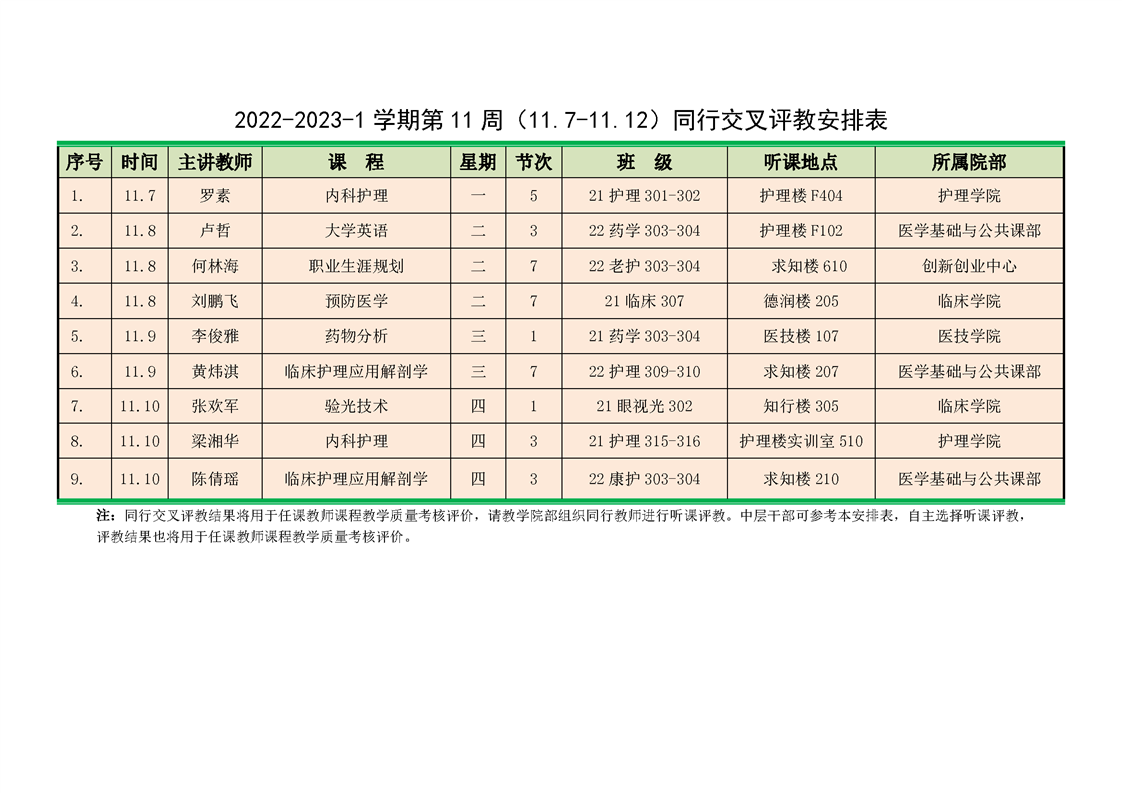 2022-2023-1学期第11周同行交叉评教安排表