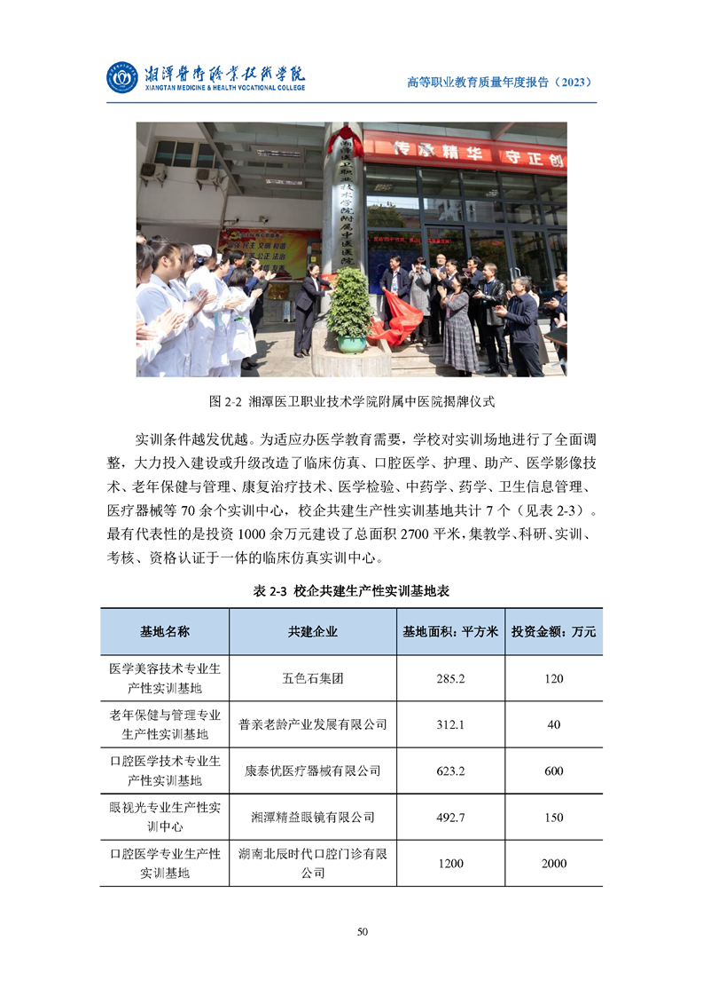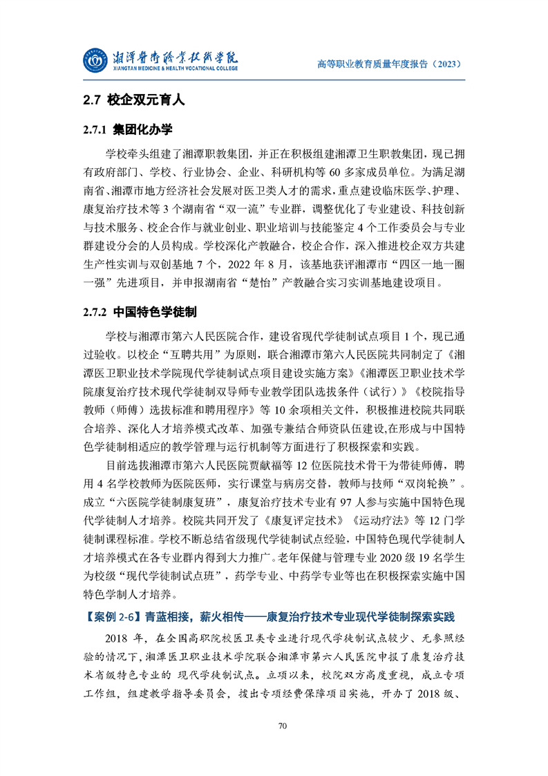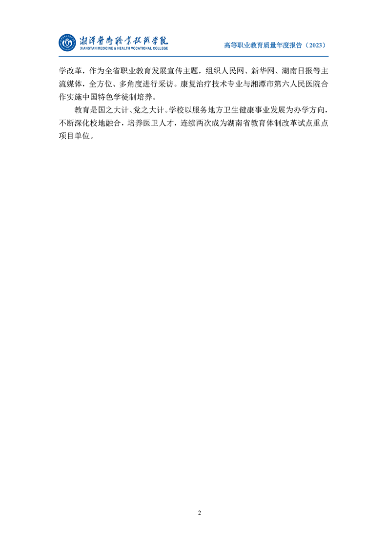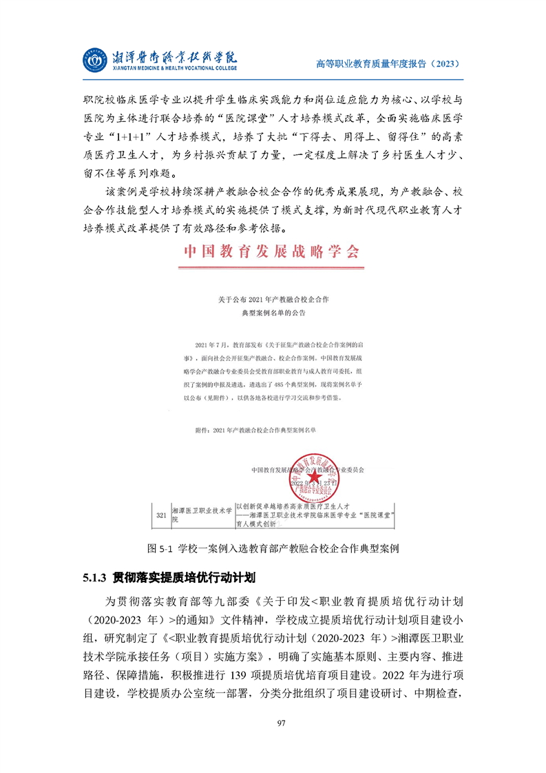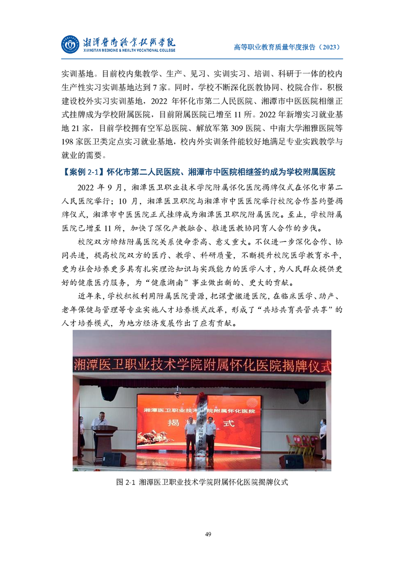 湘潭医卫职院附属医院参与半岛(中国)高等职业教育人才培养报告(2