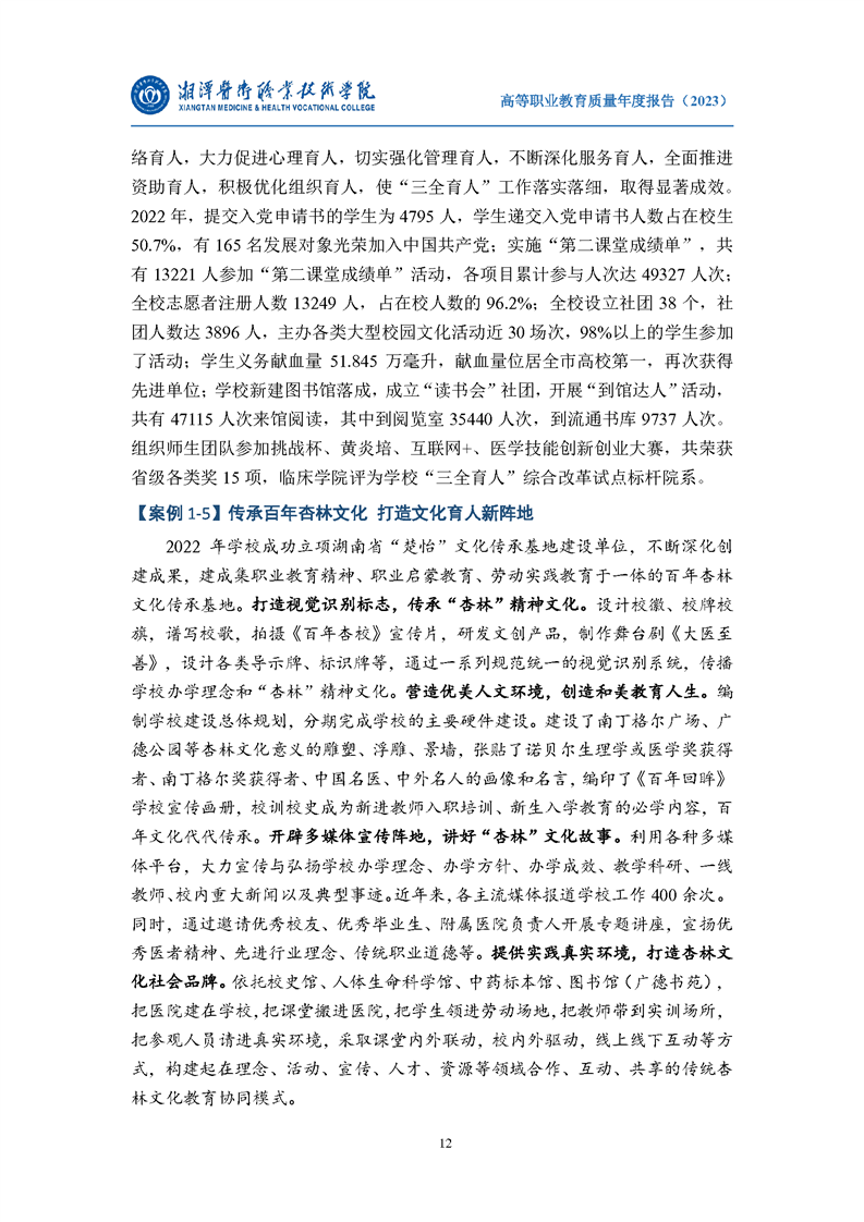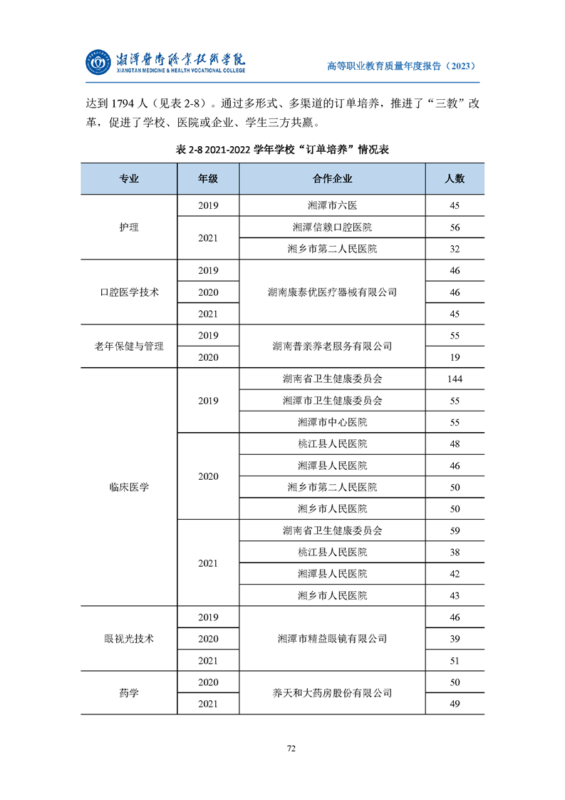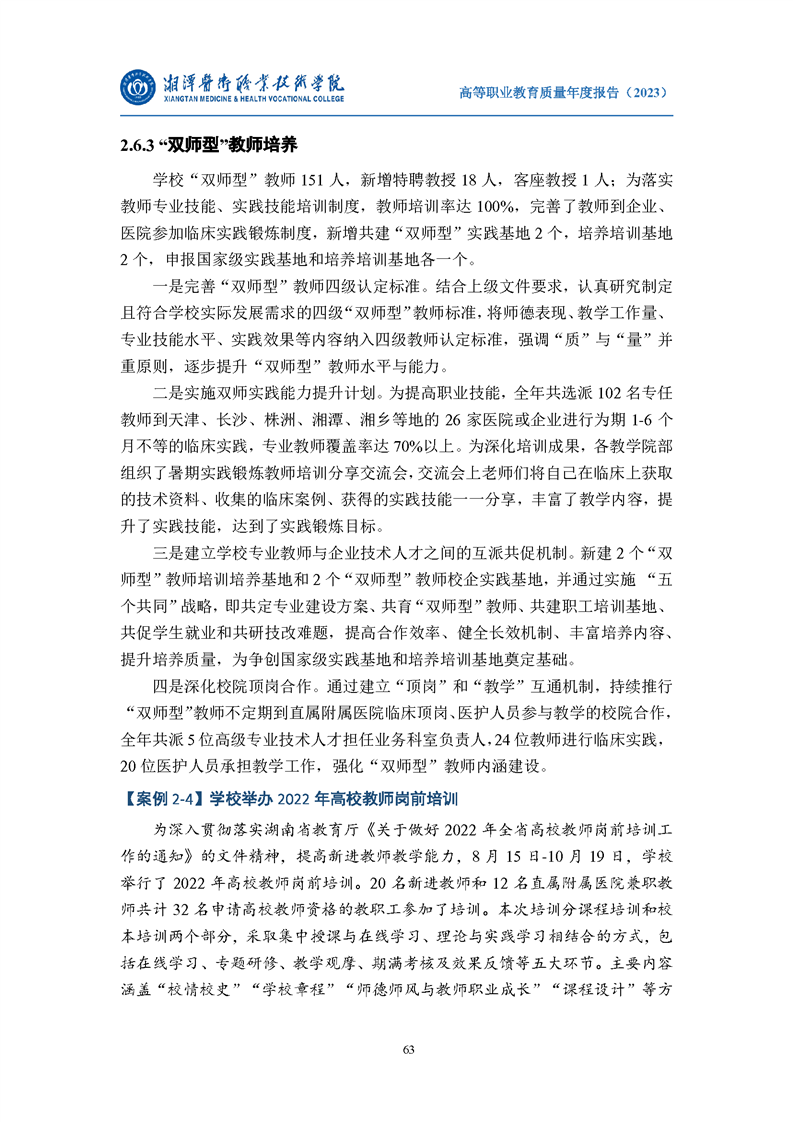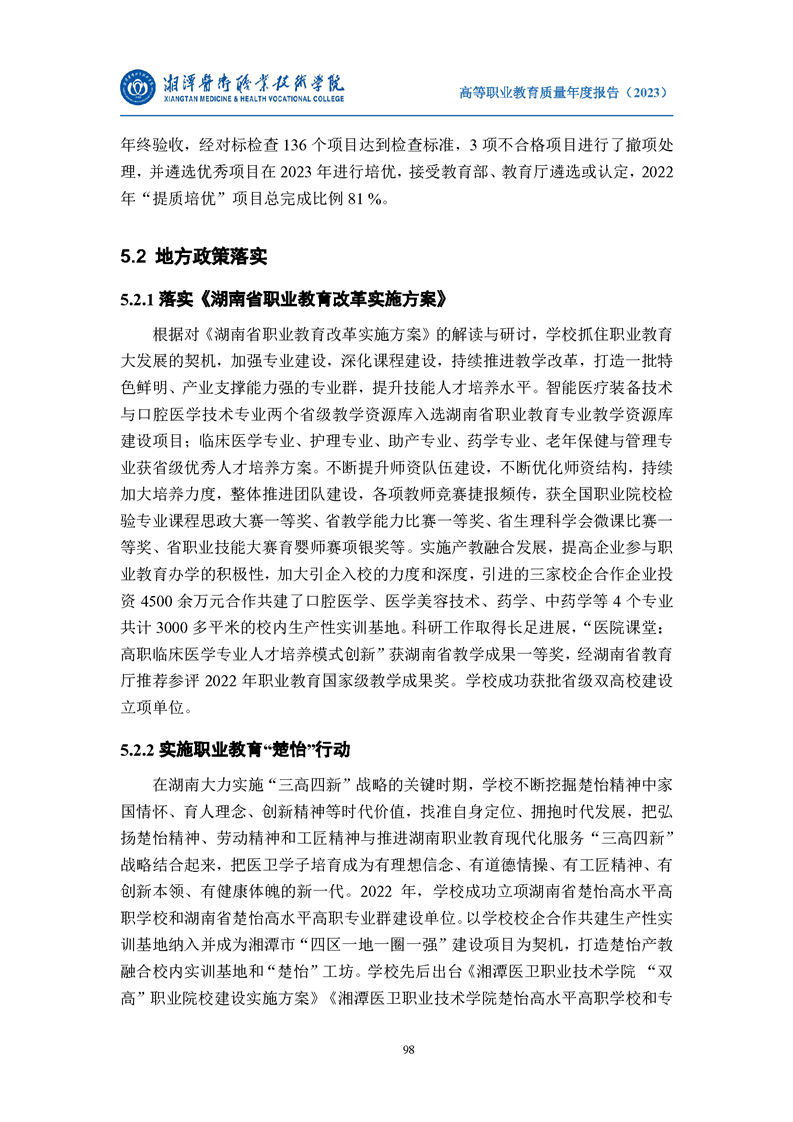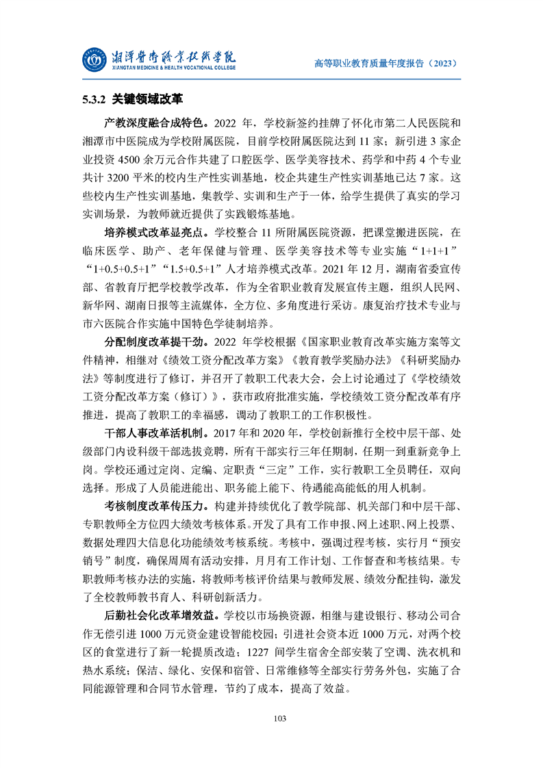 湘潭医卫职院附属医院参与半岛(中国)高等职业教育人才培养报告(2