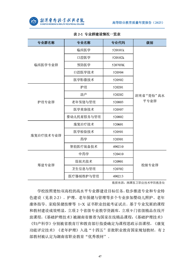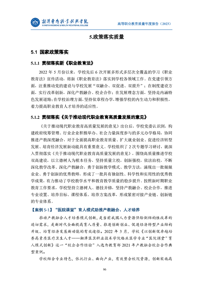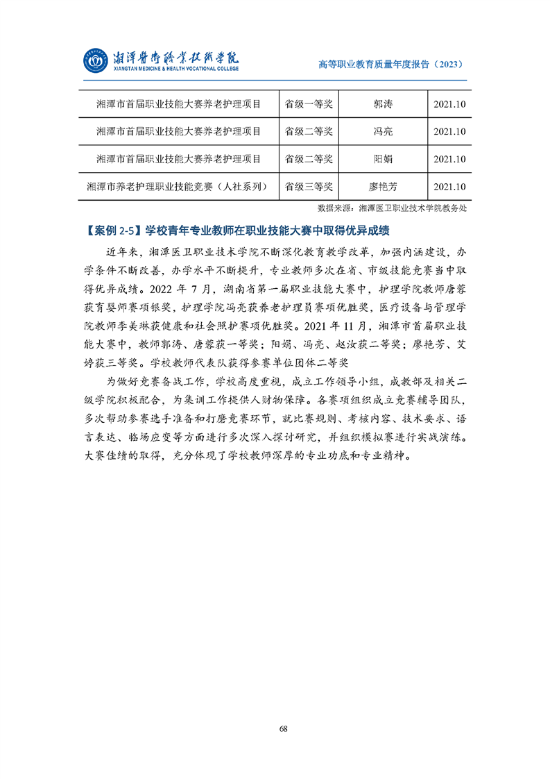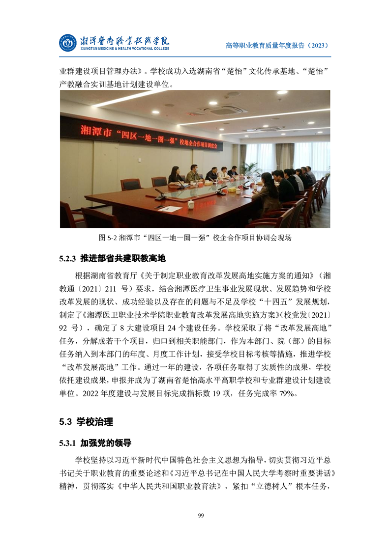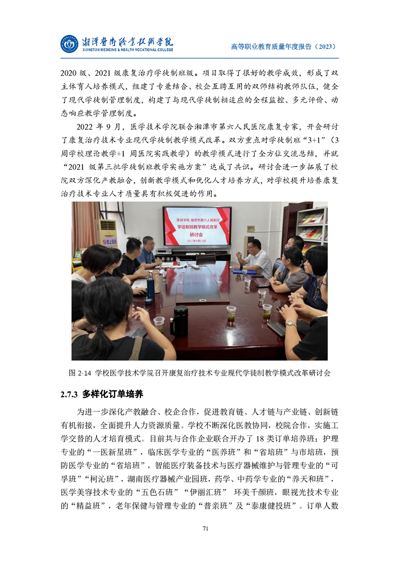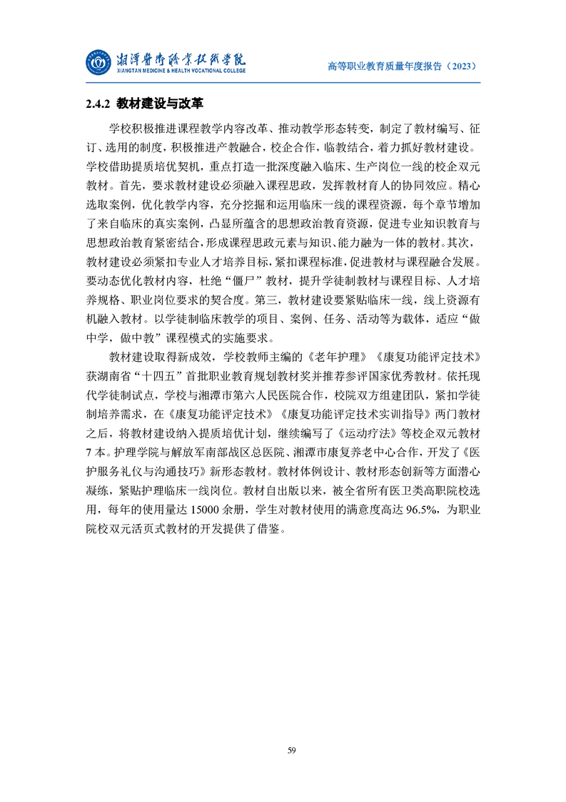 湘潭医卫职院附属医院参与半岛(中国)高等职业教育人才培养报告(2