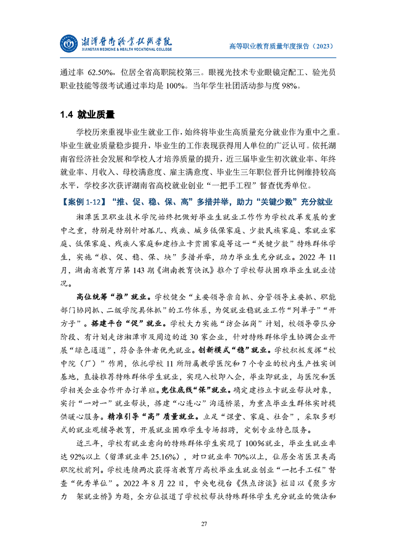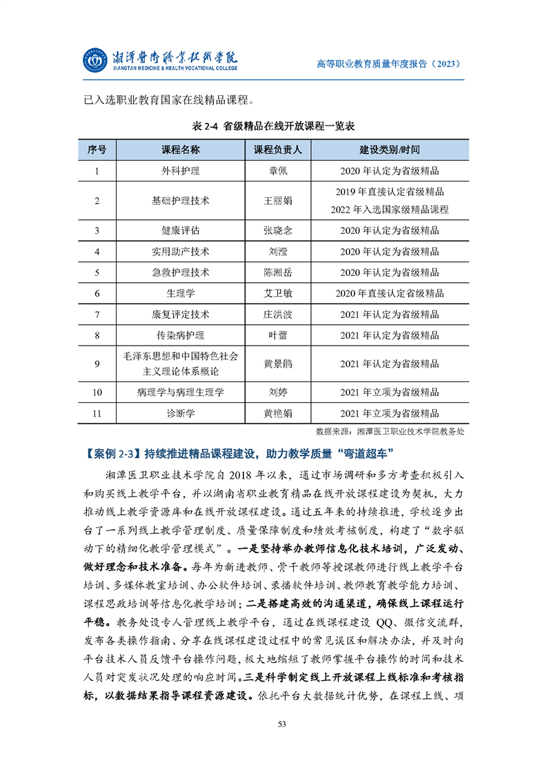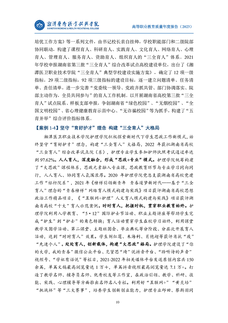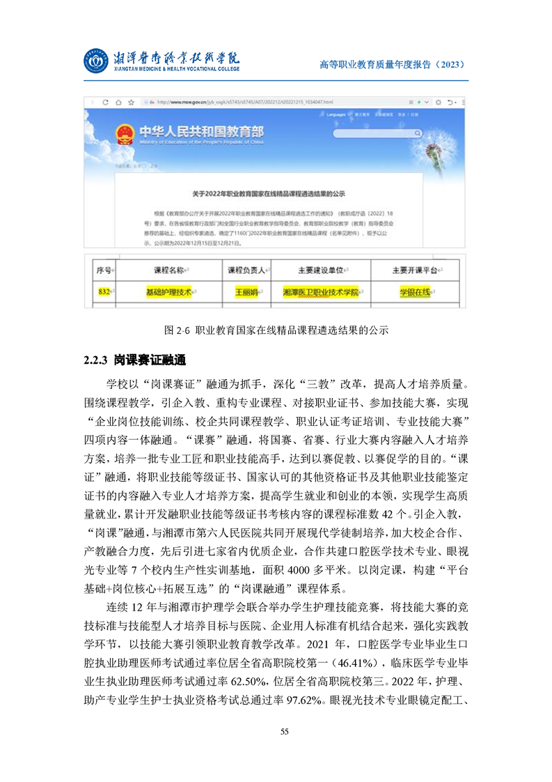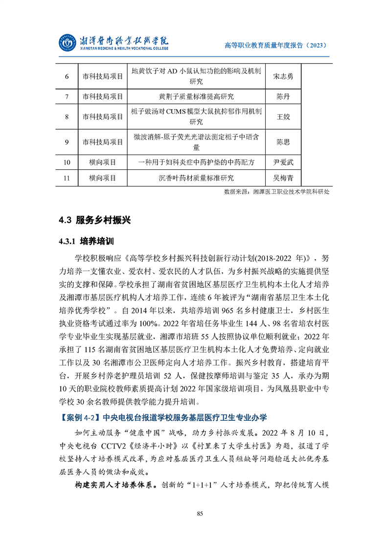 湘潭医卫职院附属医院参与半岛(中国)高等职业教育人才培养报告(2