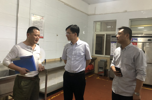 成强一行首先对河西校区食堂售卖间、操作间和仓库进行检查,并就看到的一些情况与食堂管理人员进行了交流,对餐饮公司食品安全管理工作表示肯定,提出了改进意见。