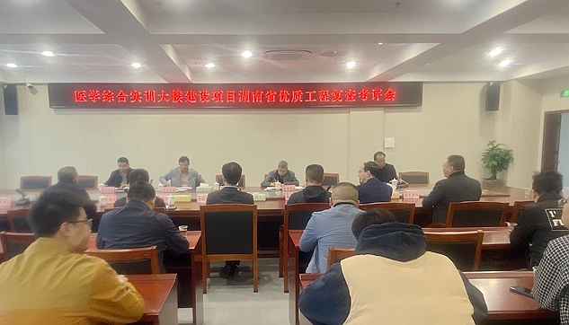 4月25日上午,湖南省建筑行业协会复查小组对我校医学综合实训大楼建设项目进行了湖南省优质工程复查并召开了考评会。省建筑协会专家、省内大型建筑企业总工以及我校副校长成强出席考评会。基建后勤处负责人、总承包单位相关负责人参加。