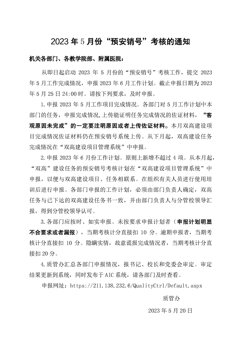 2023年5月份“预安销号”考核的通知