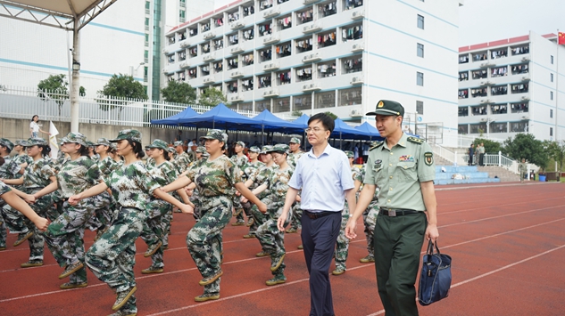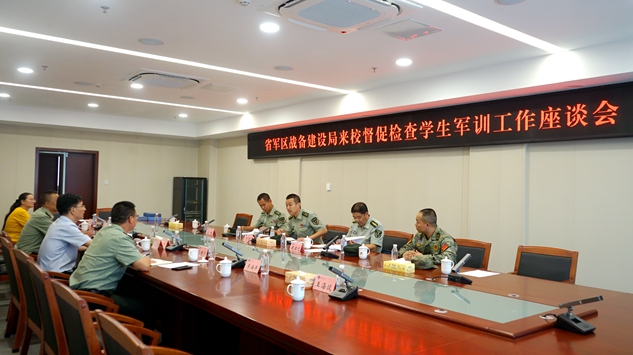 9月20日,省军区战备建设局中校参谋丁行行一行来我校督查2023年新生军训情况。校党委委员、副校长成强以及武装部相关同志陪同。