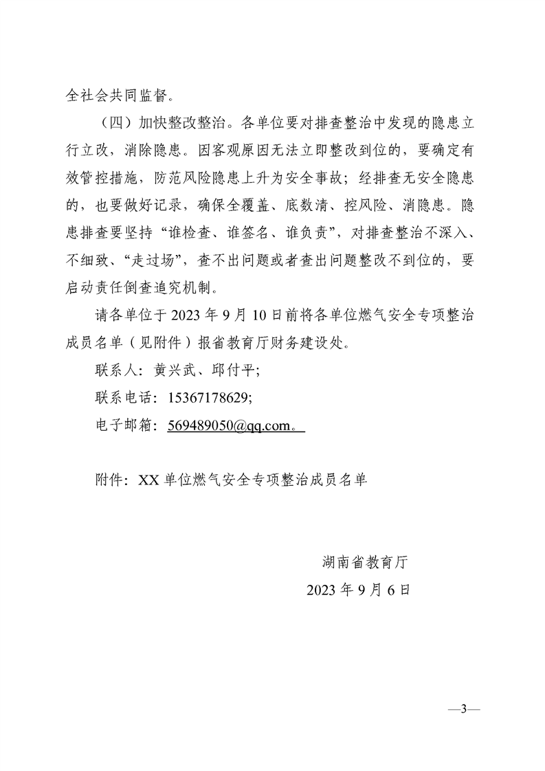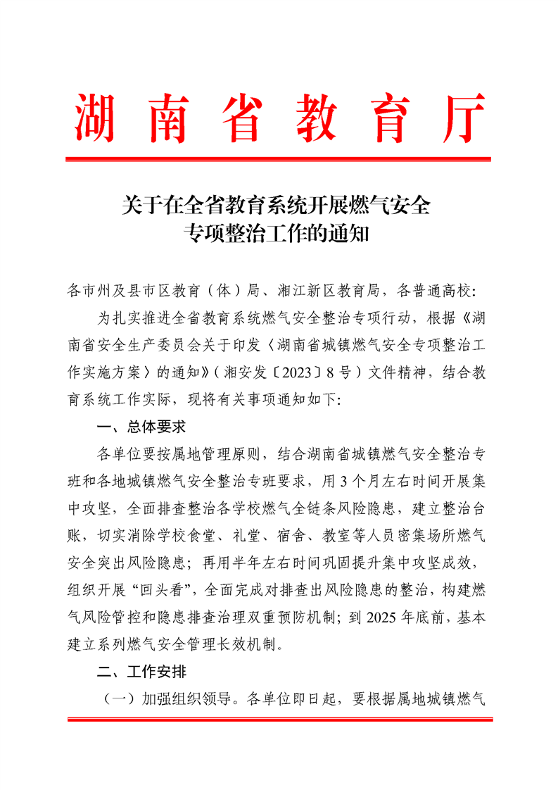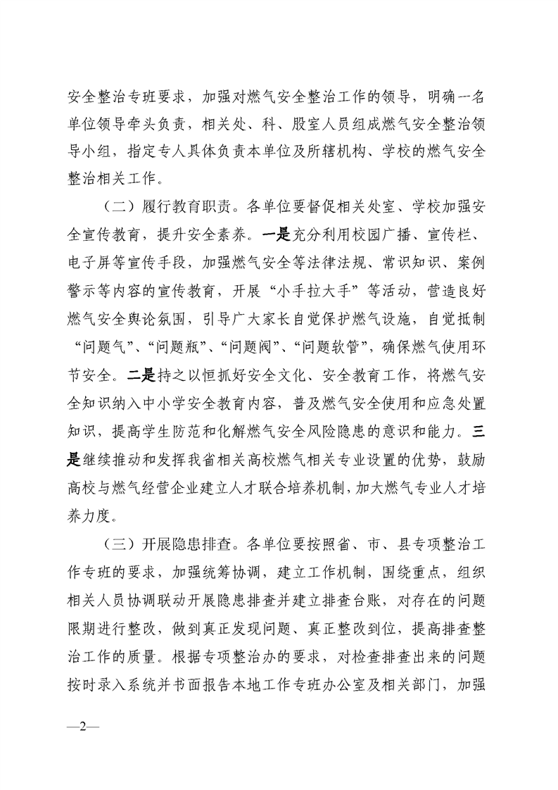 关于在全省教育系统开展燃气安全专项整治工作通知