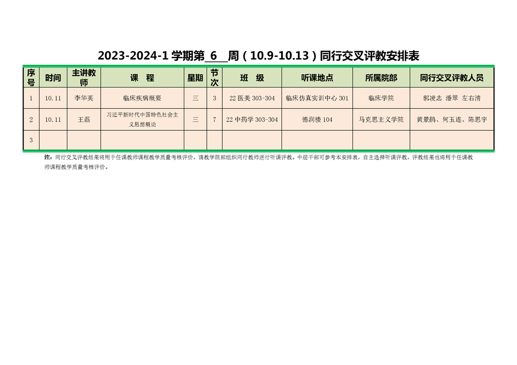 2023-2024-1学期第6周同行交叉评教安排表
