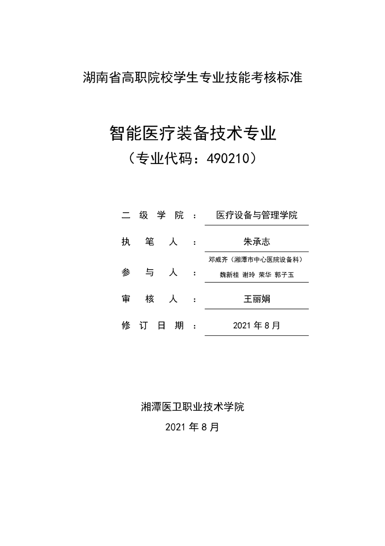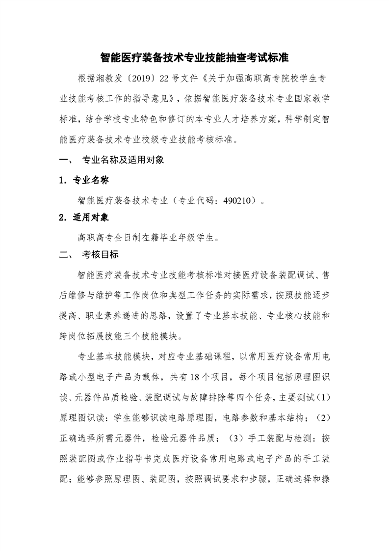 半岛(中国)智能医疗装备技术专业技能考核标准