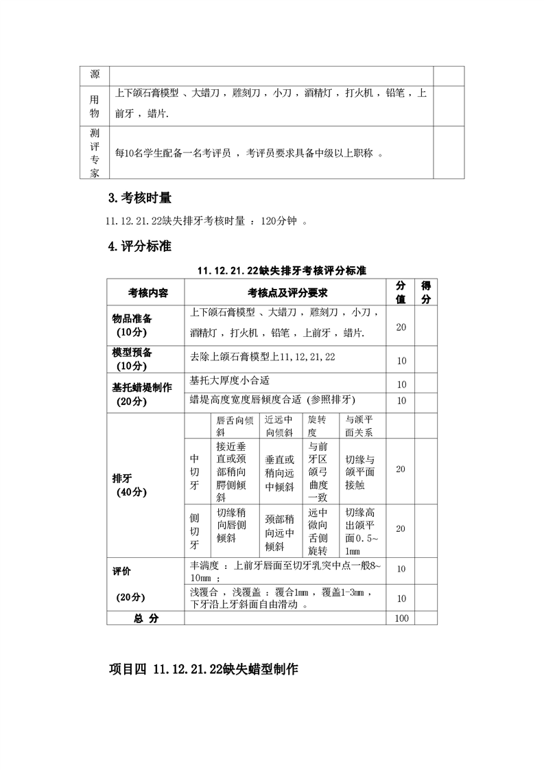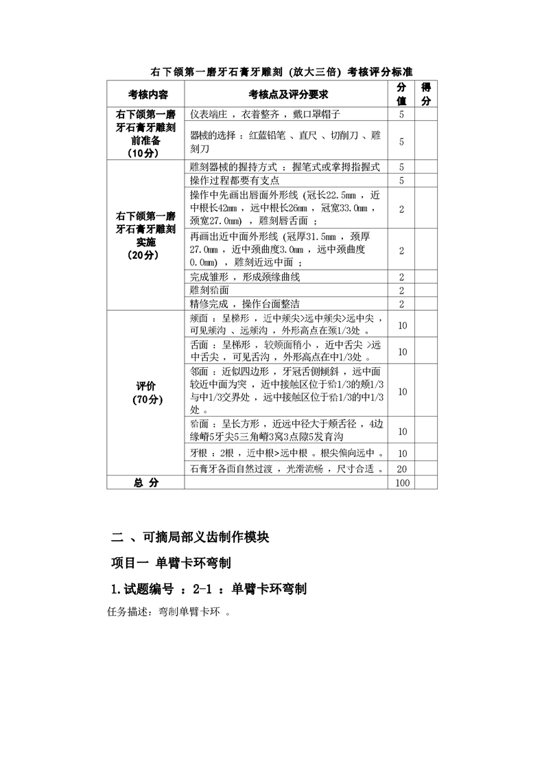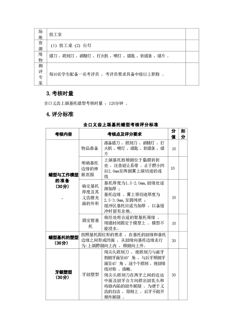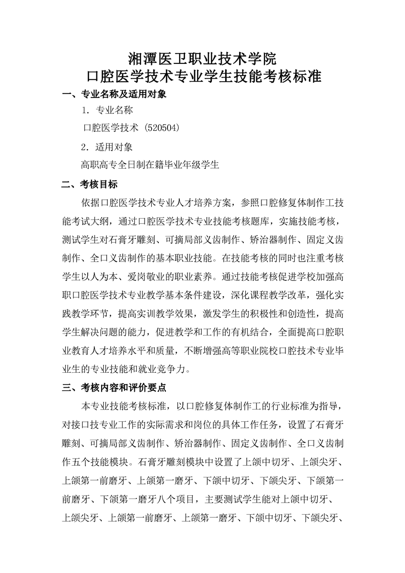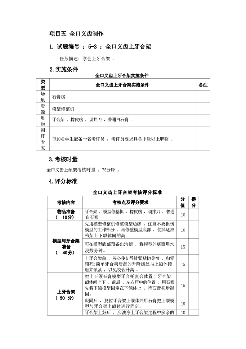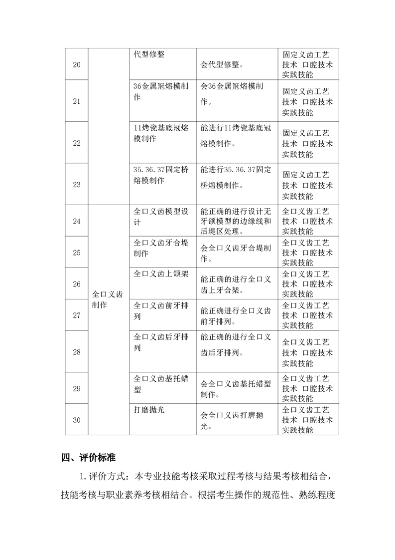 2021级口腔医学技术专业技能考核标准和题库