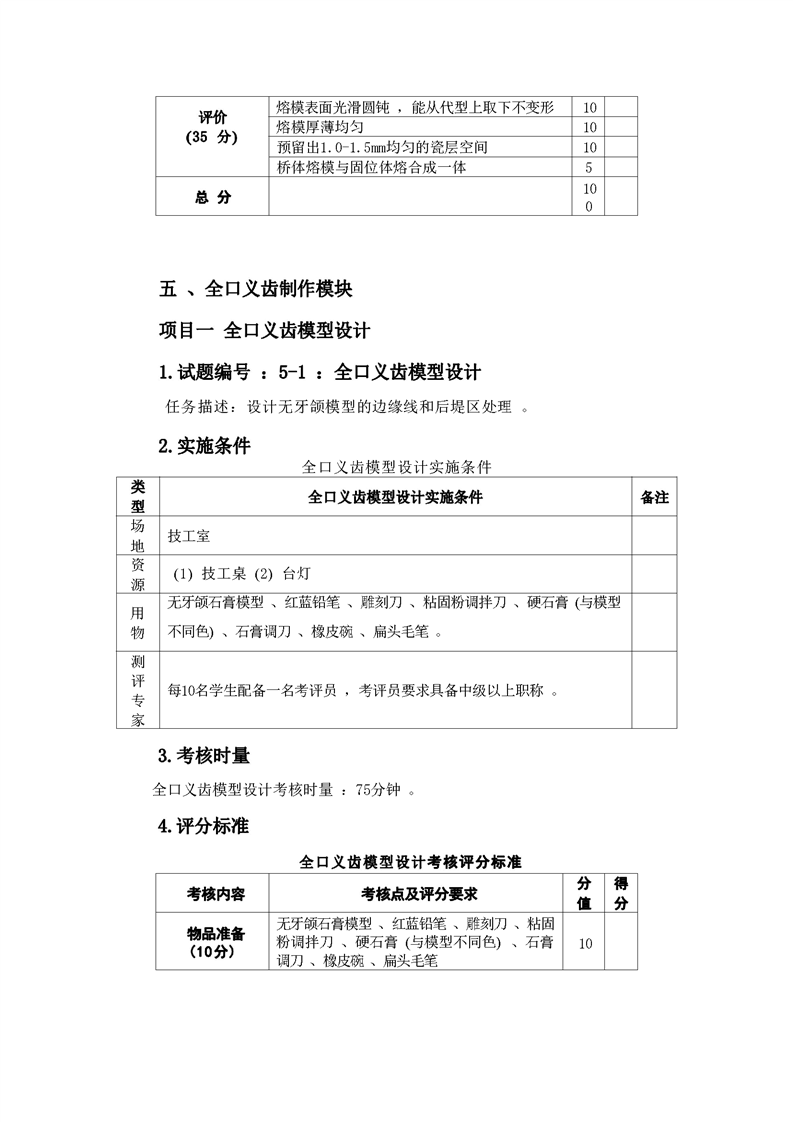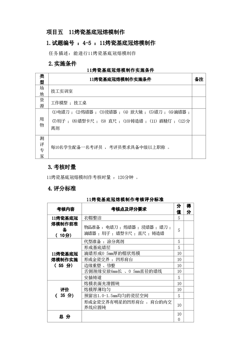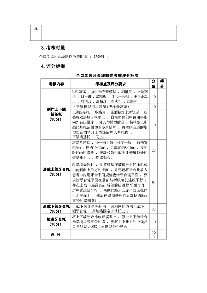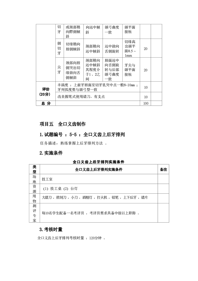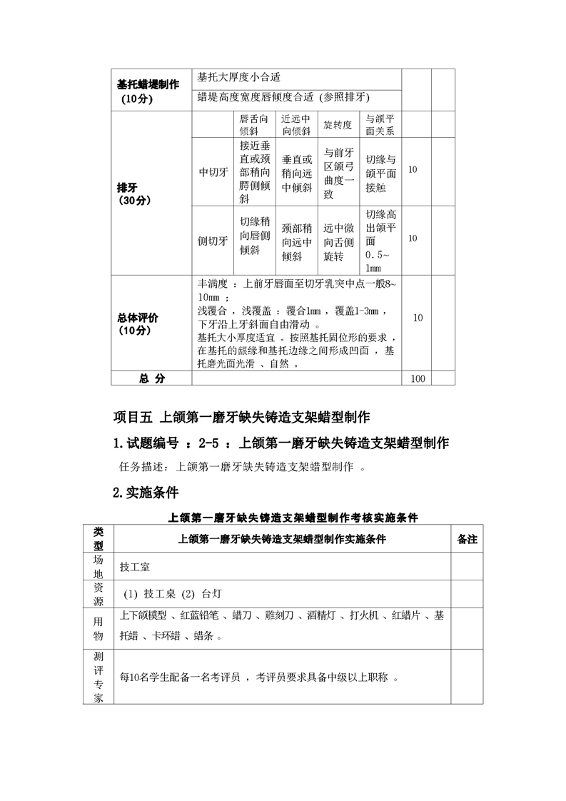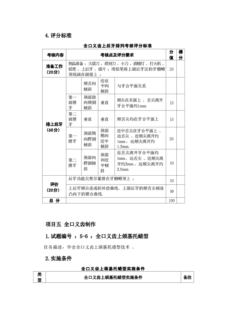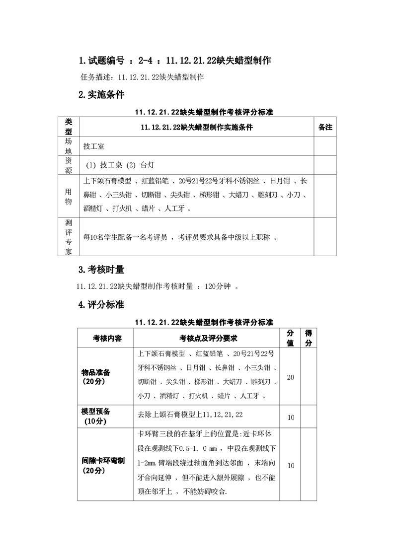2021级口腔医学技术专业技能考核标准和题库