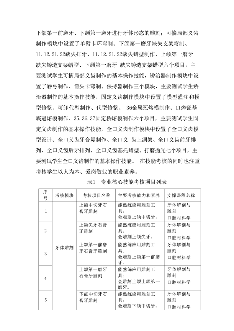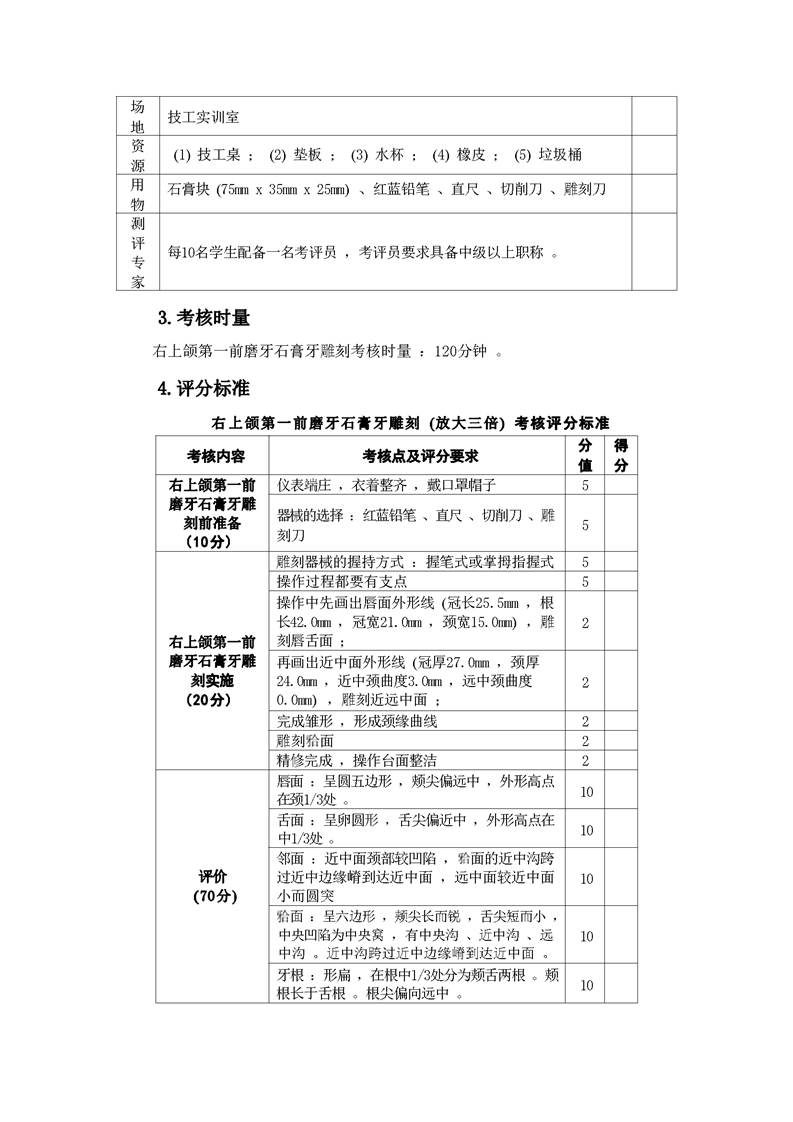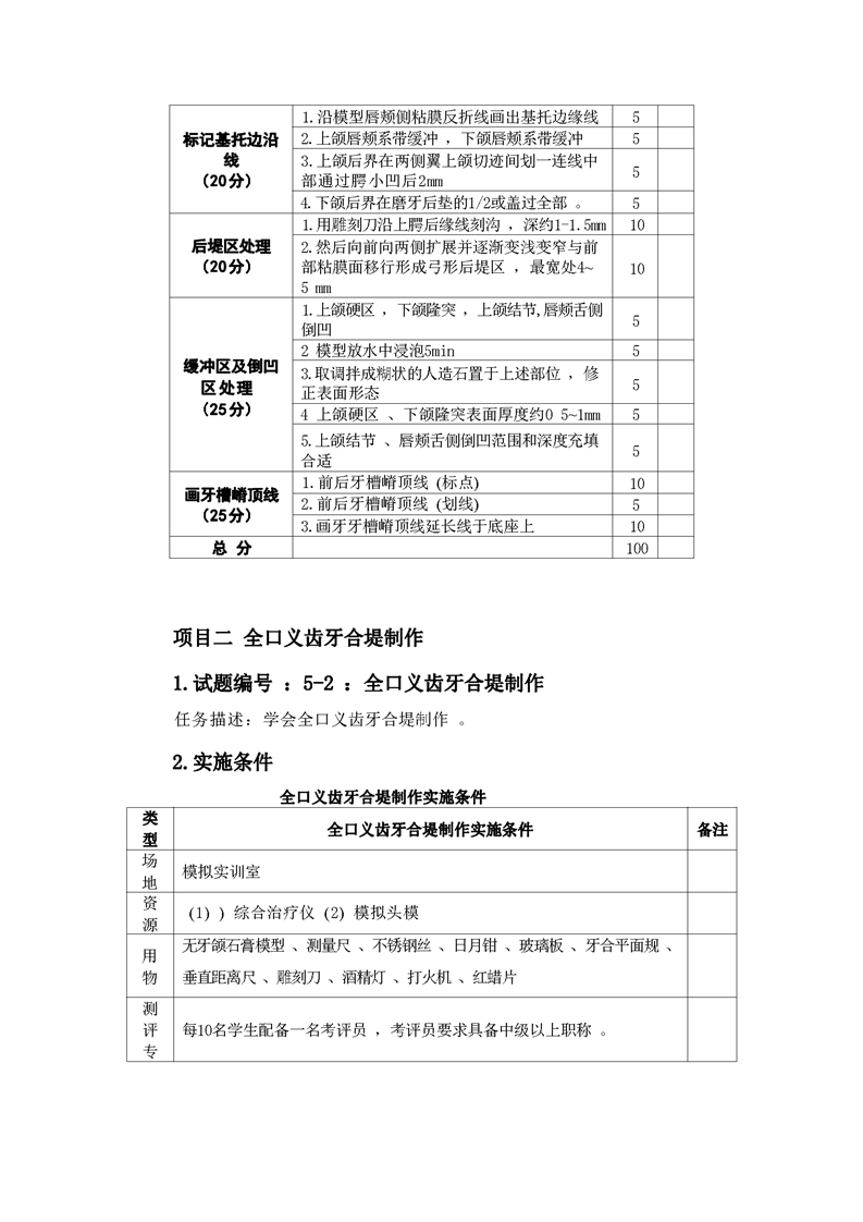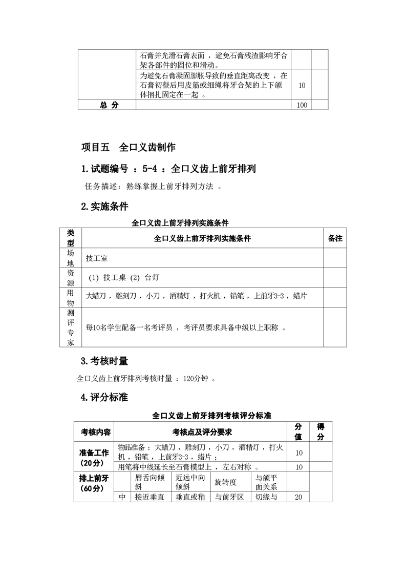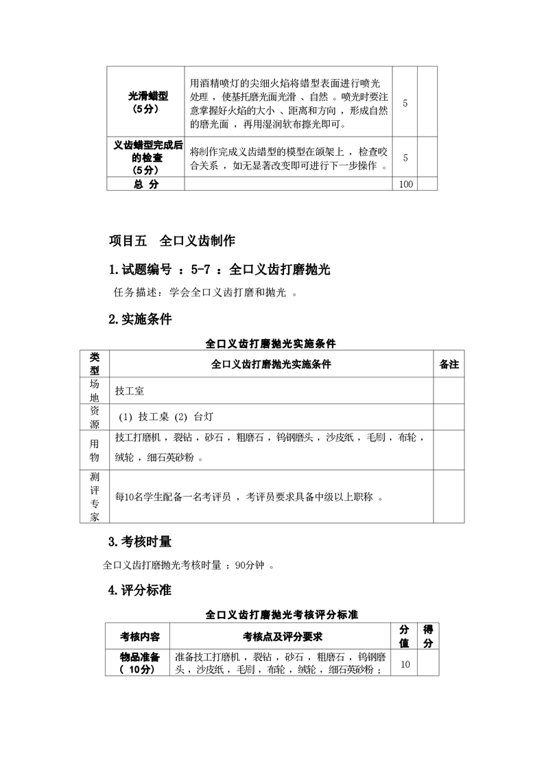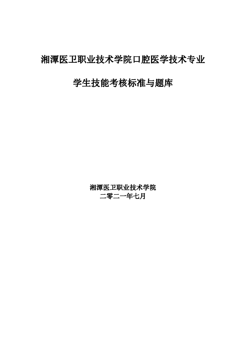2021级口腔医学技术专业技能考核标准和题库