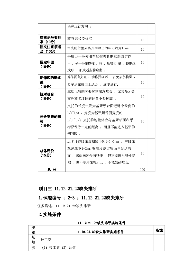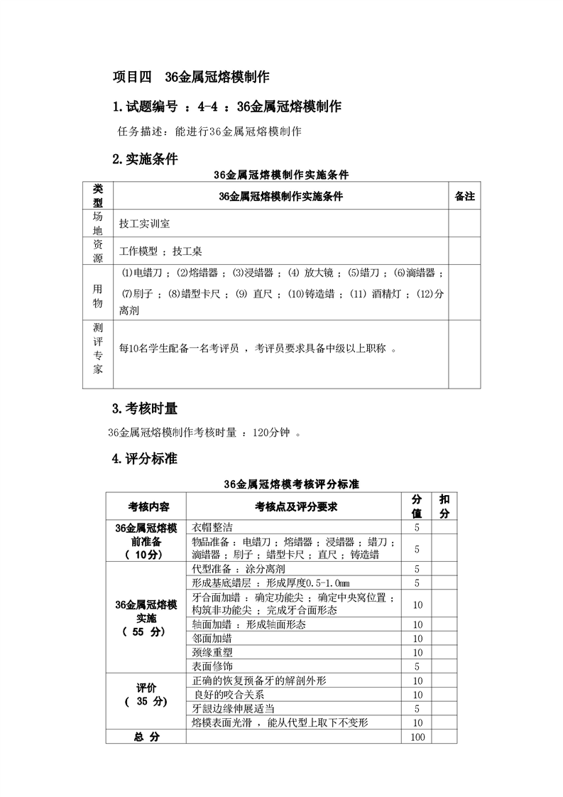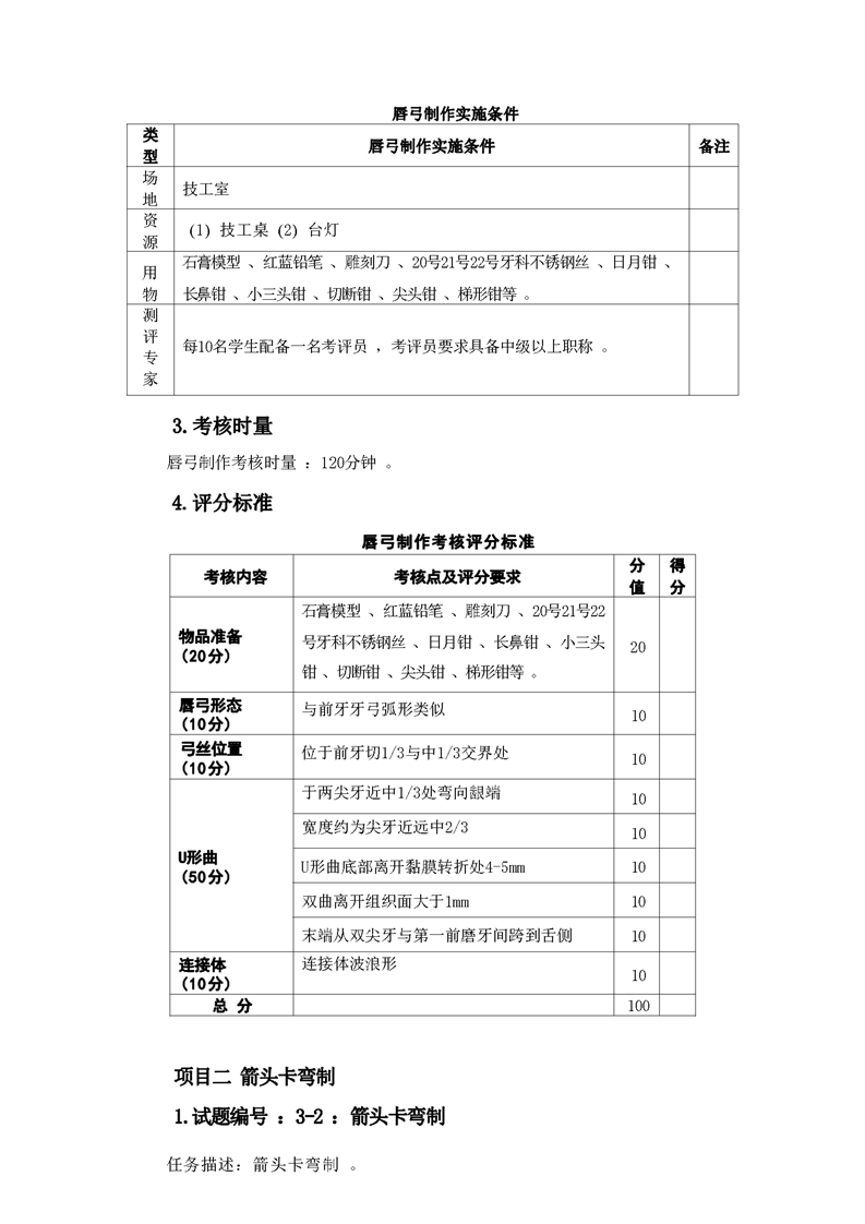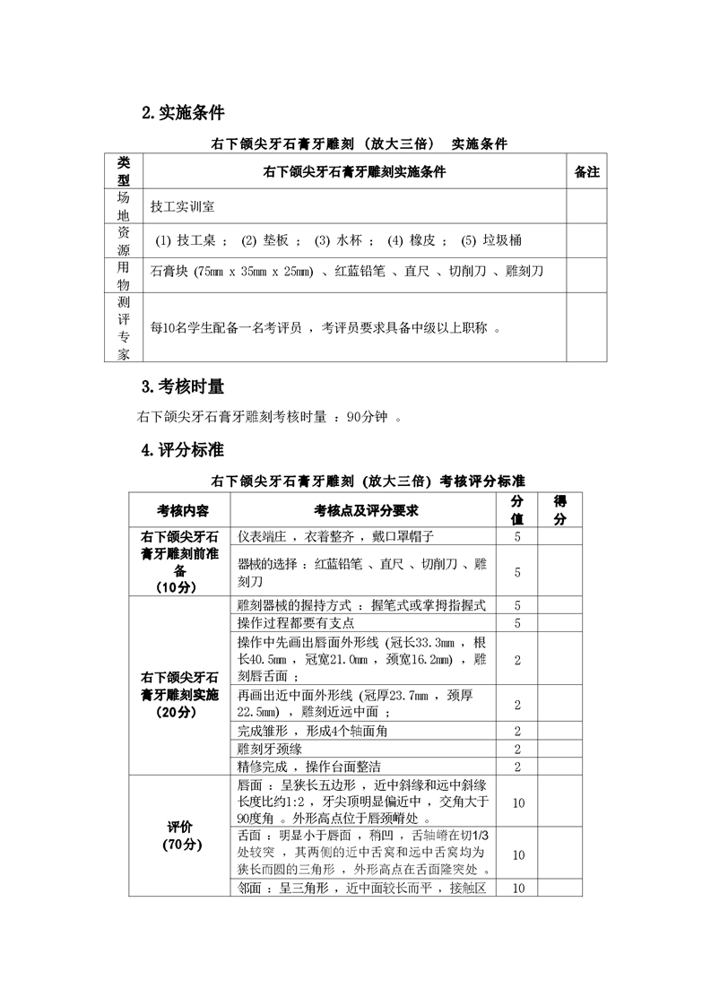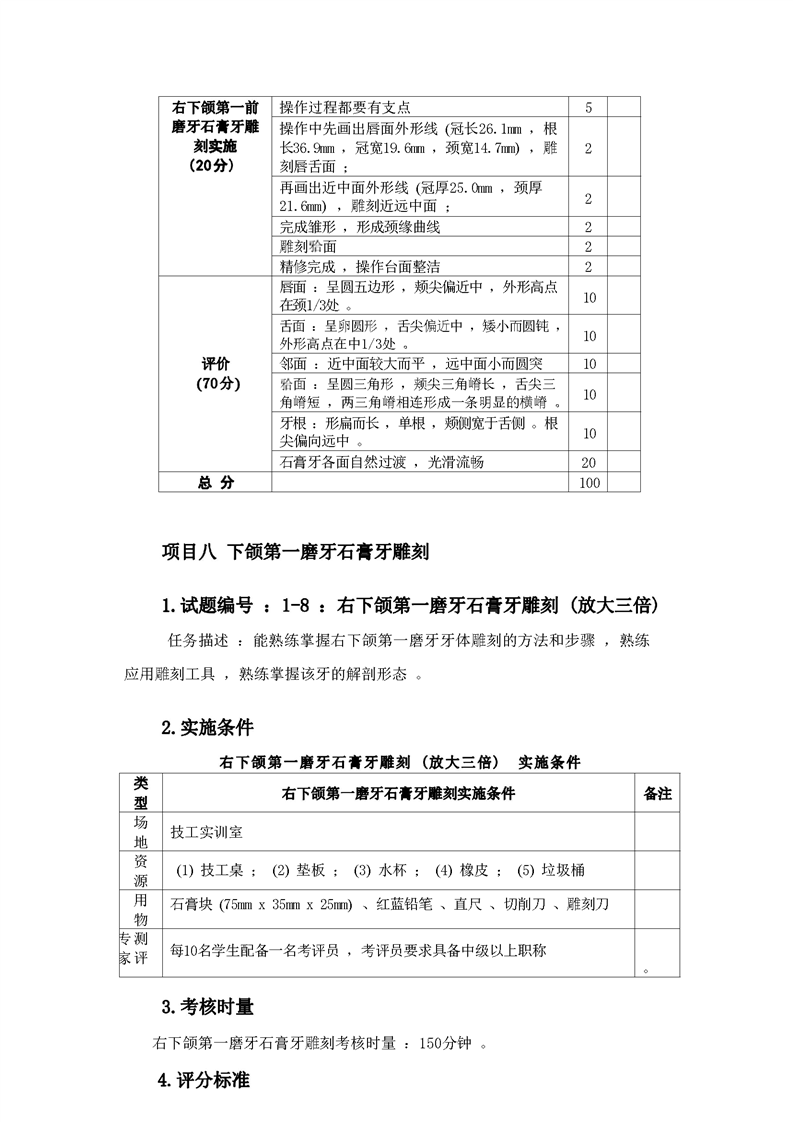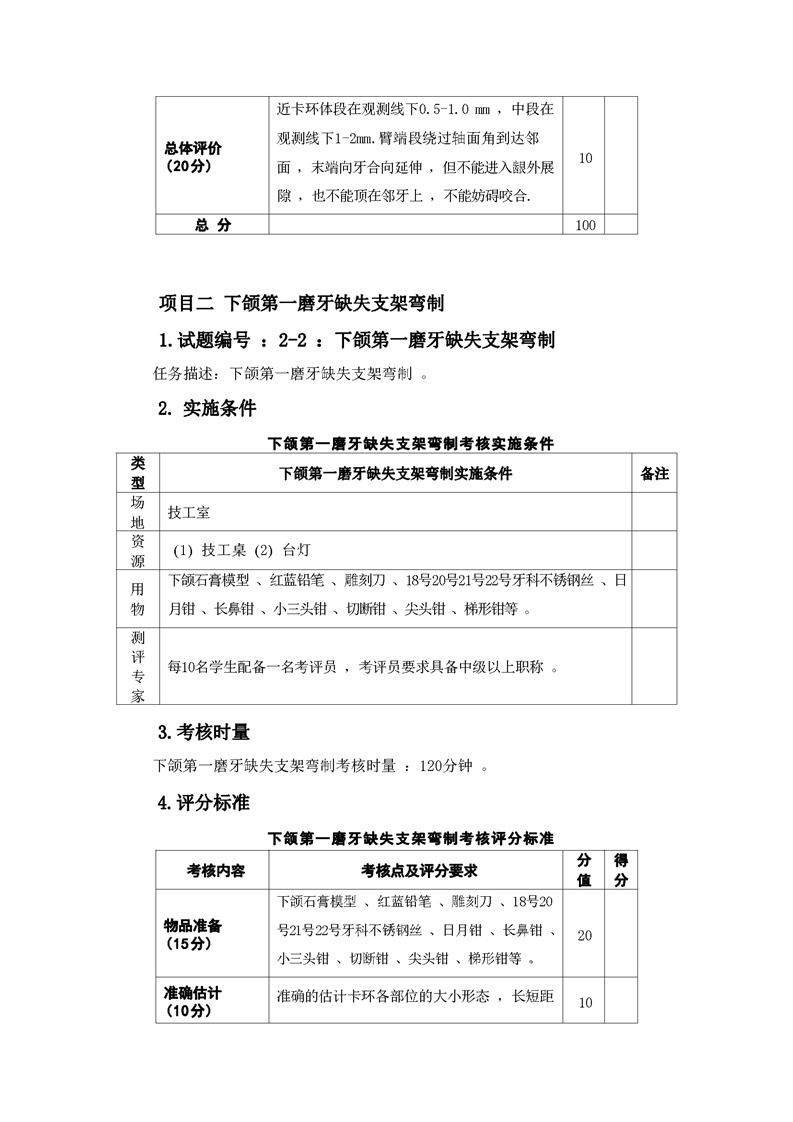 2021级口腔医学技术专业技能考核标准和题库