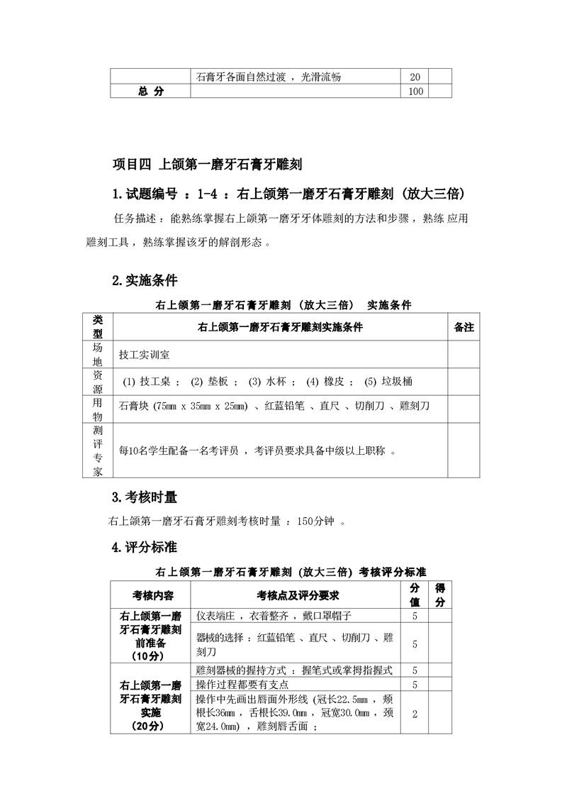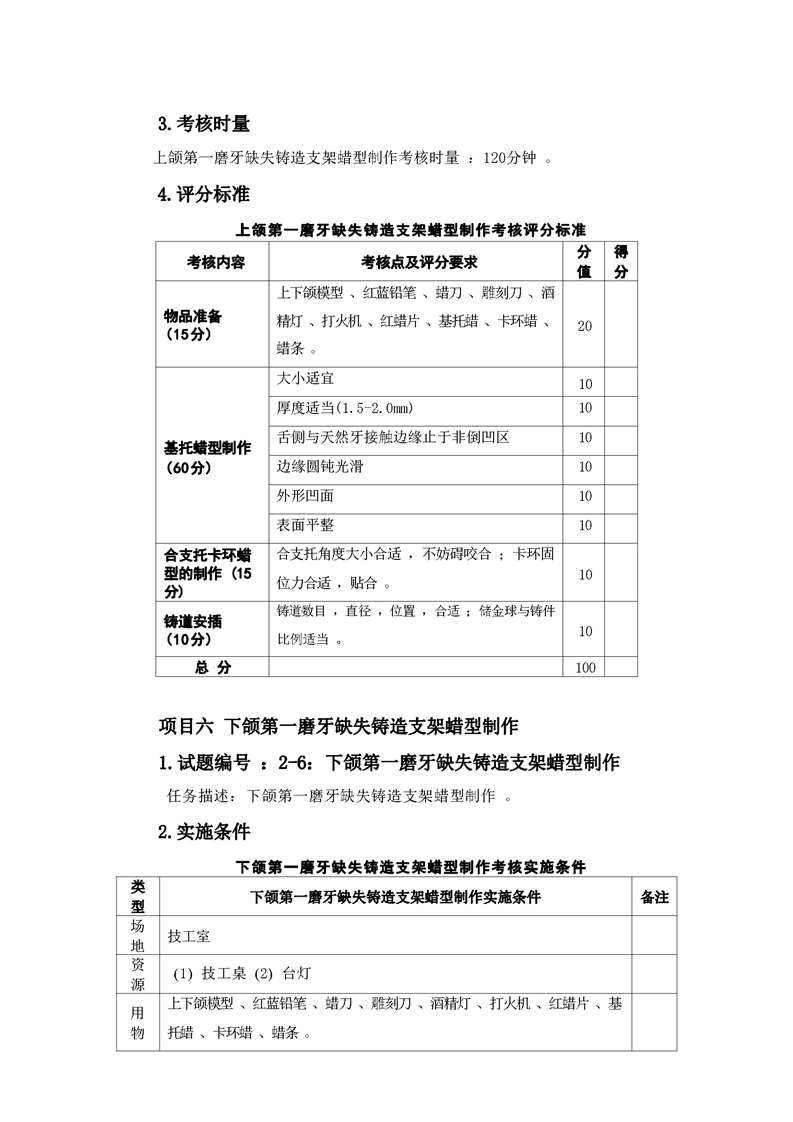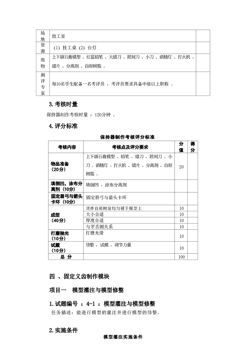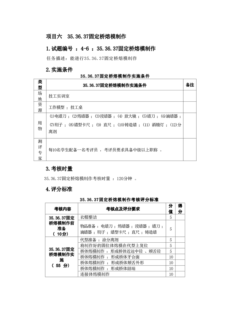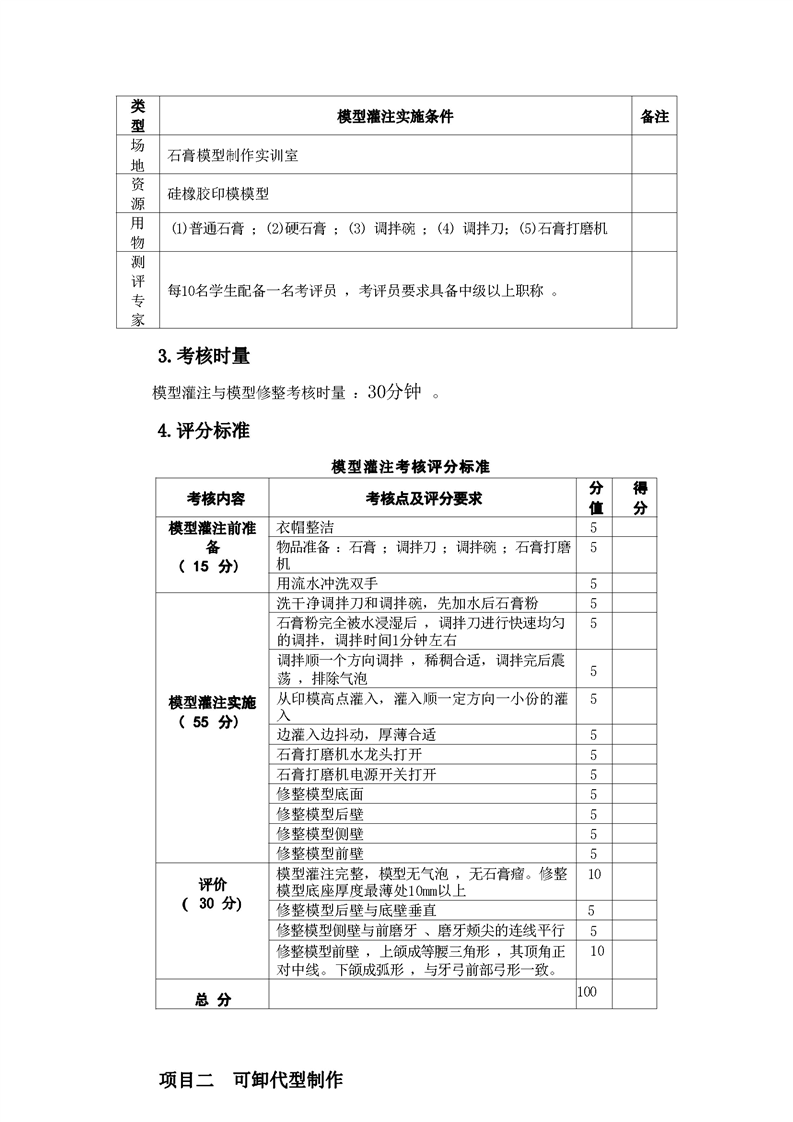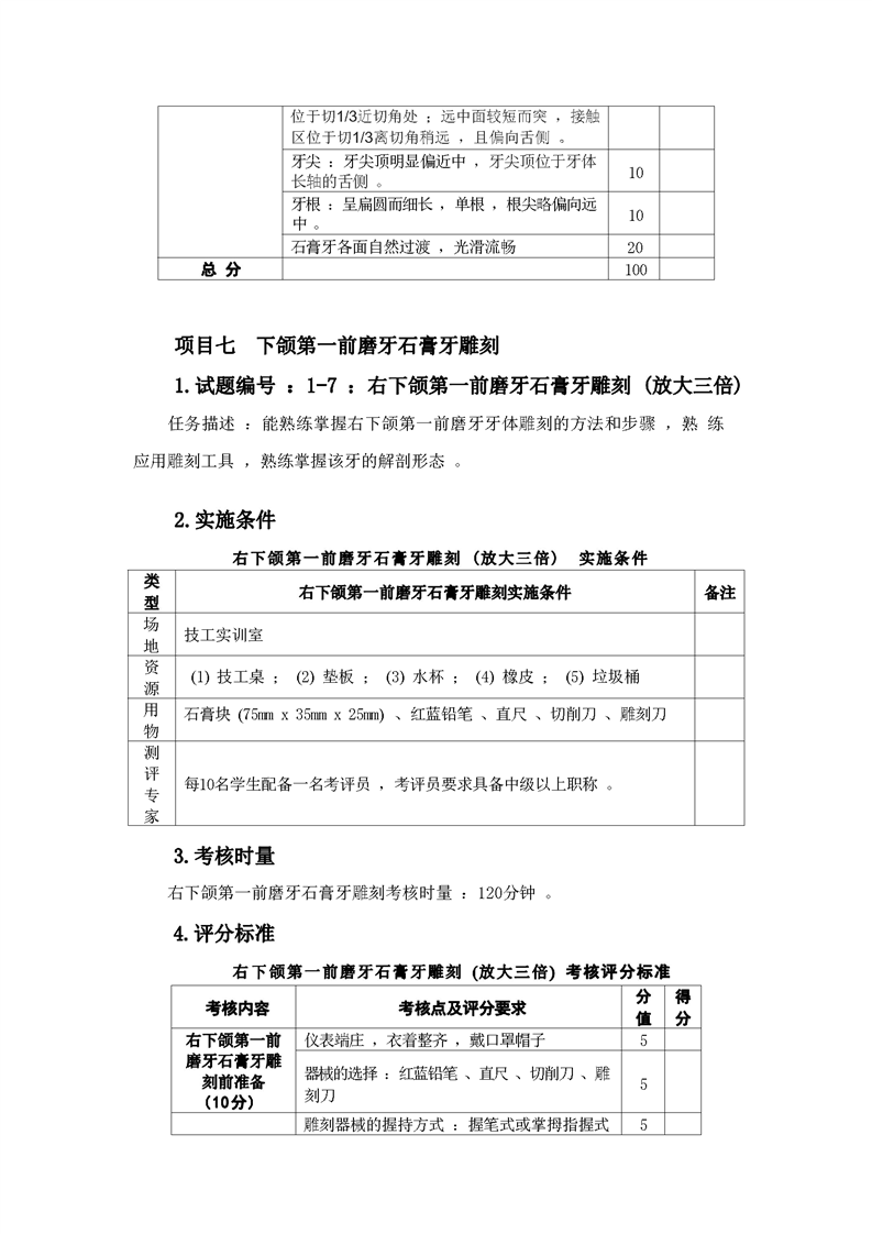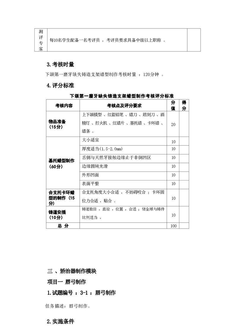 2021级口腔医学技术专业技能考核标准和题库