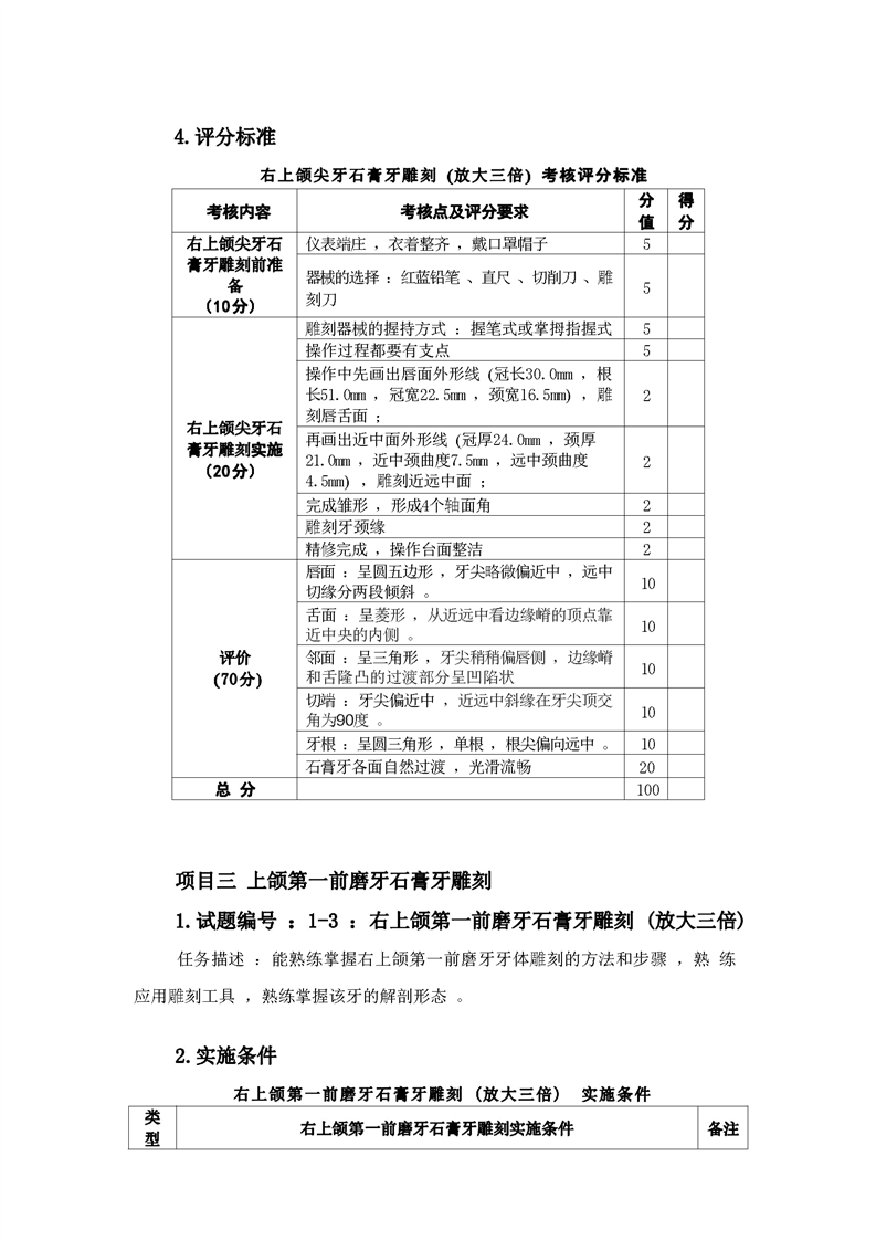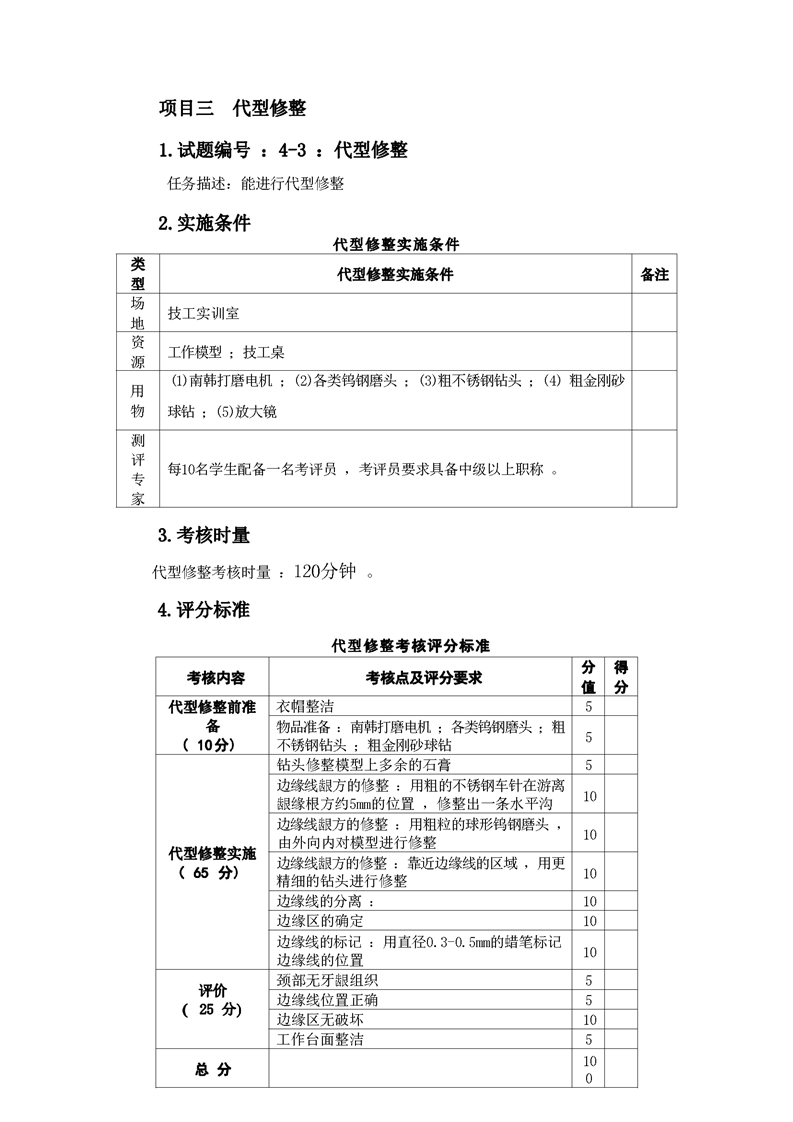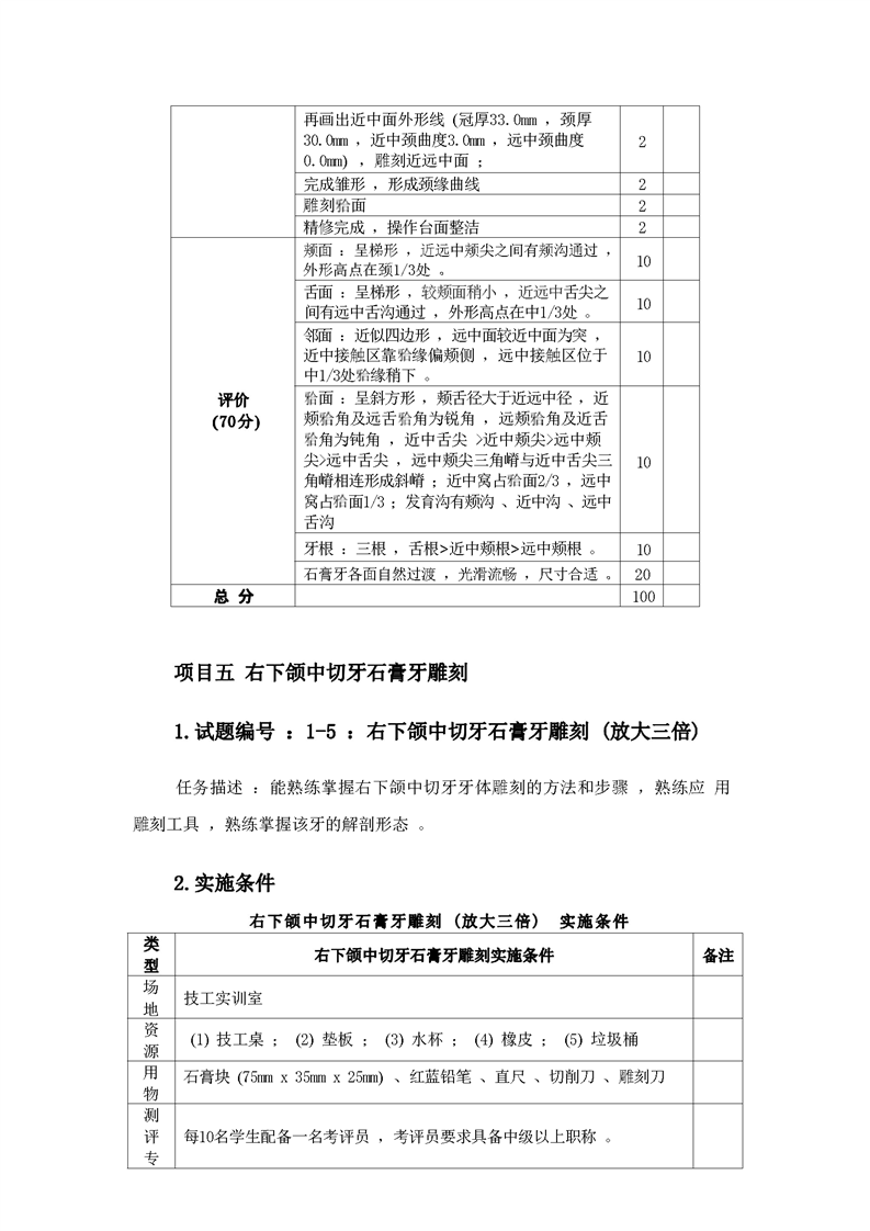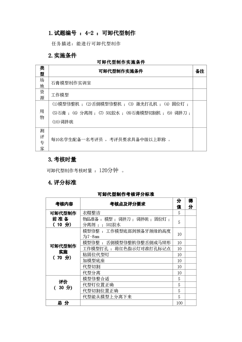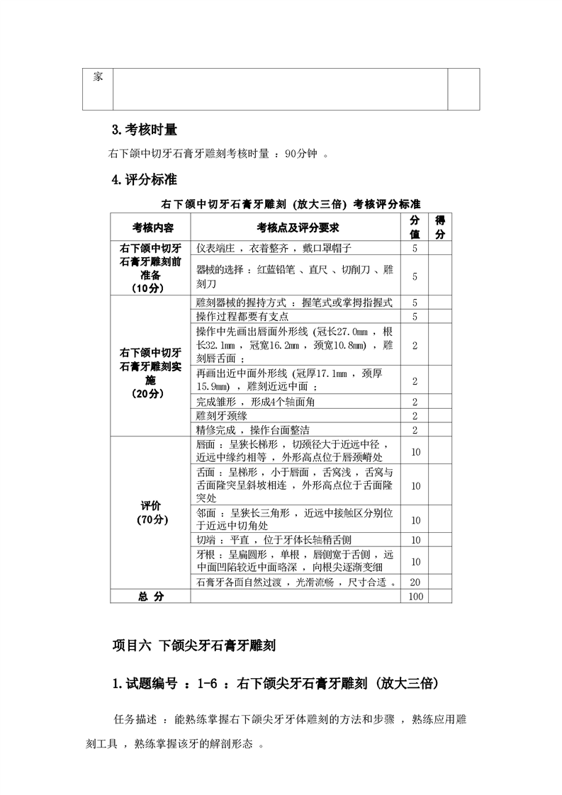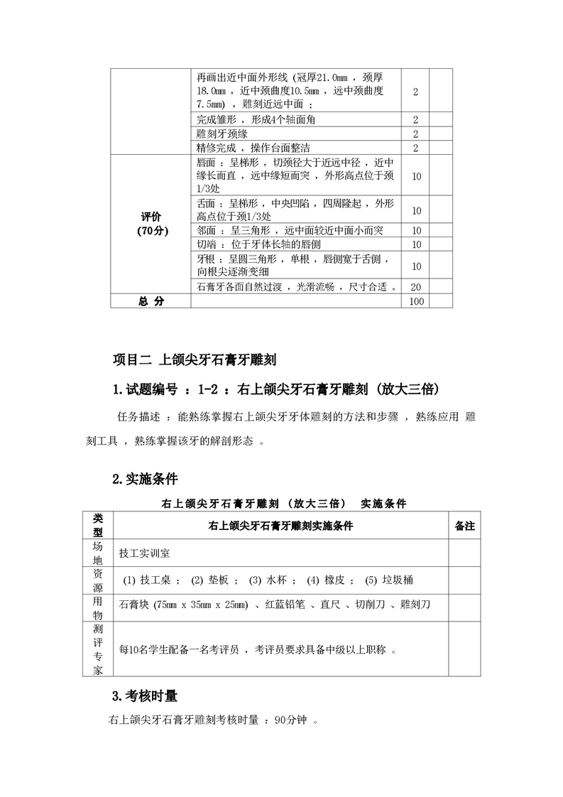 2021级口腔医学技术专业技能考核标准和题库