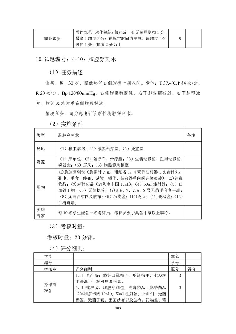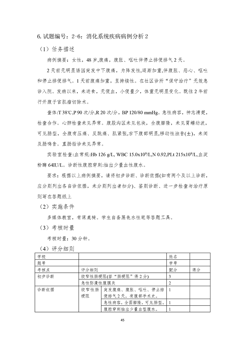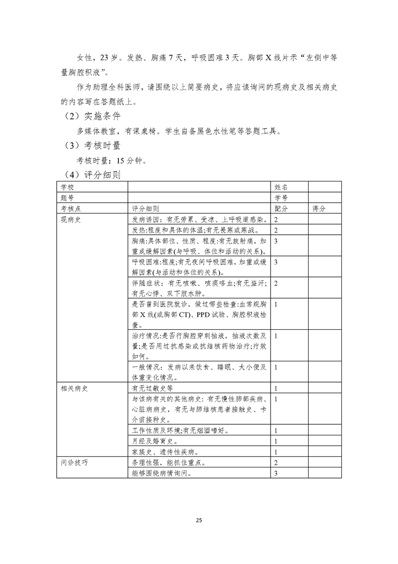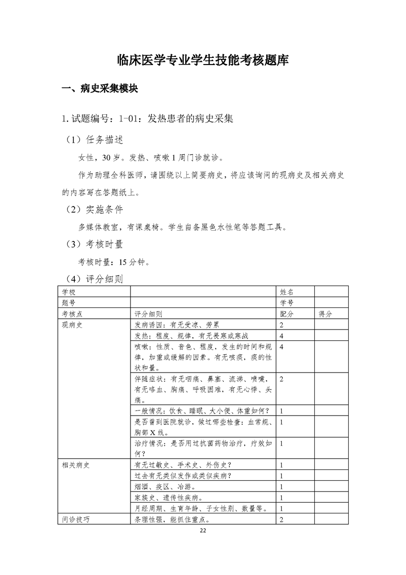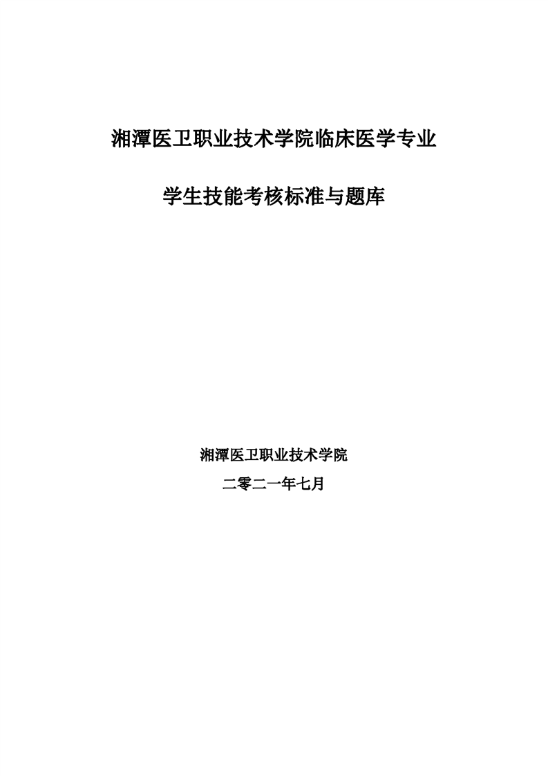 2021级临床医学专业学生技能考核标准和题库