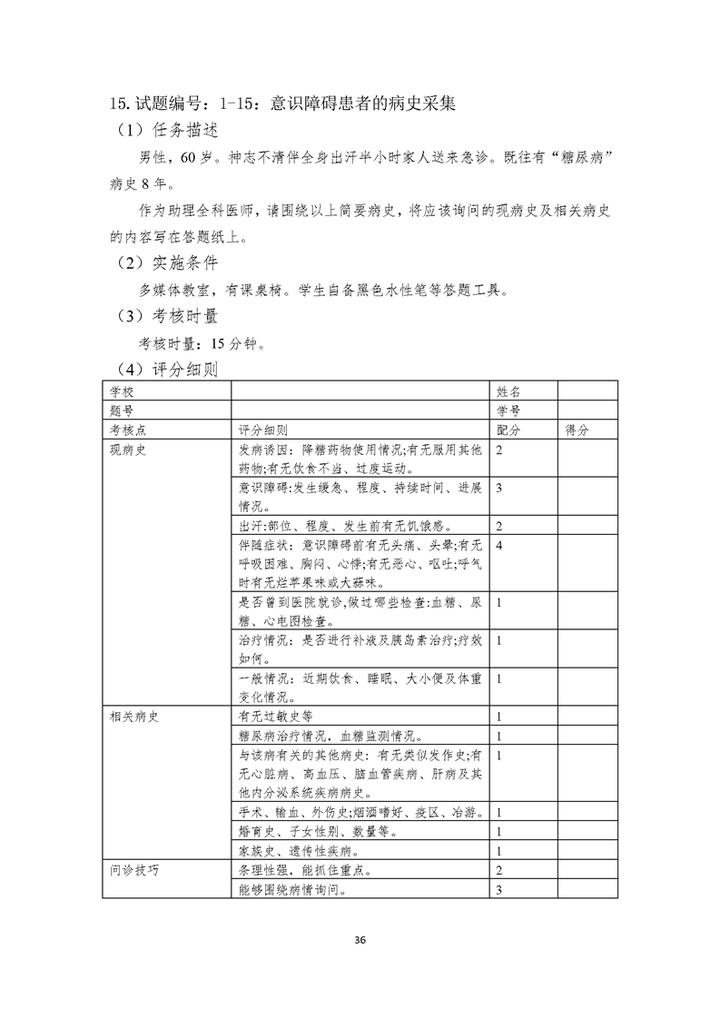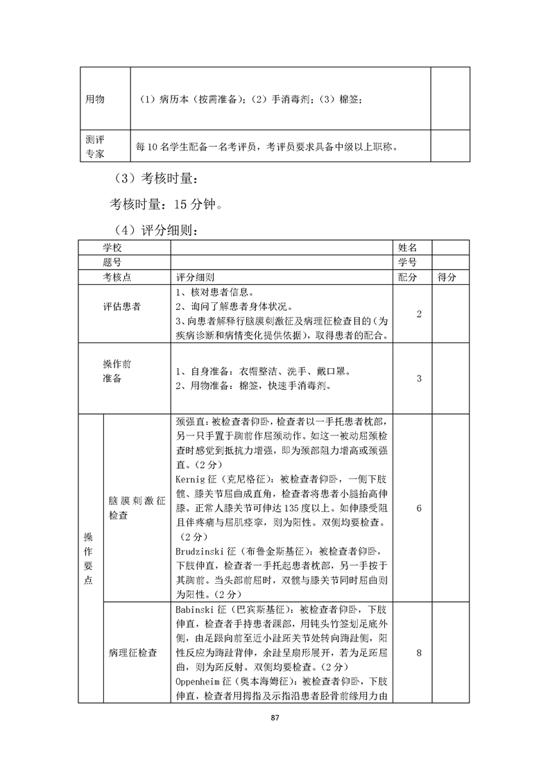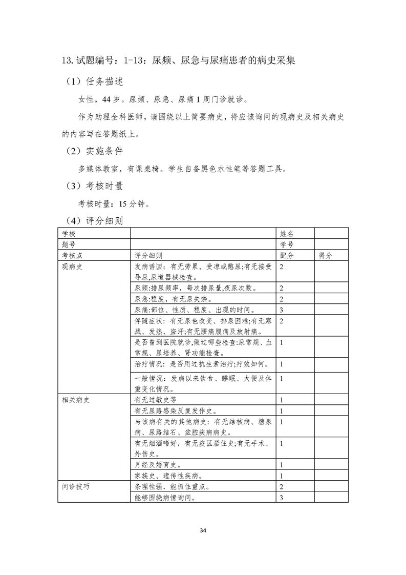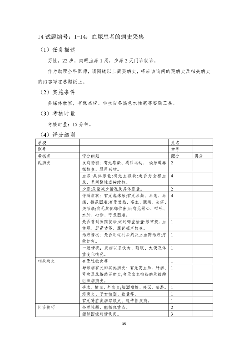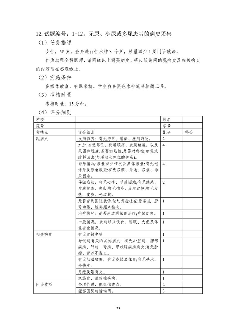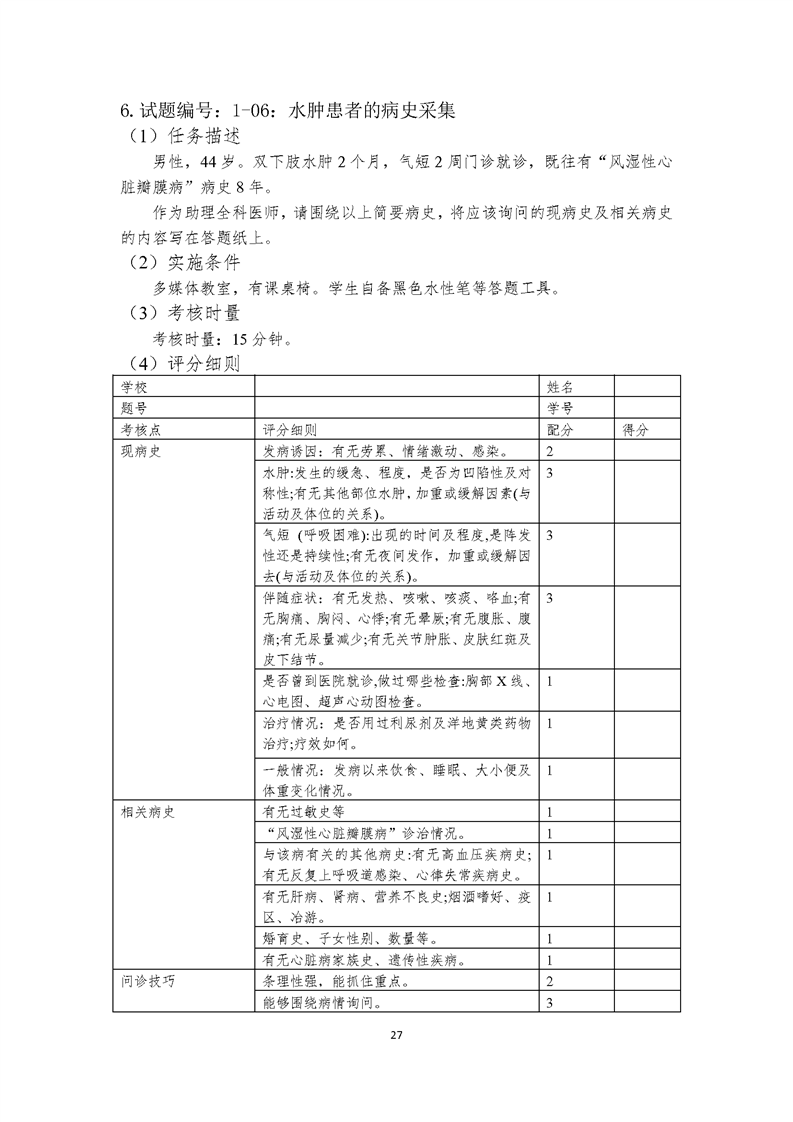 2021级临床医学专业学生技能考核标准和题库