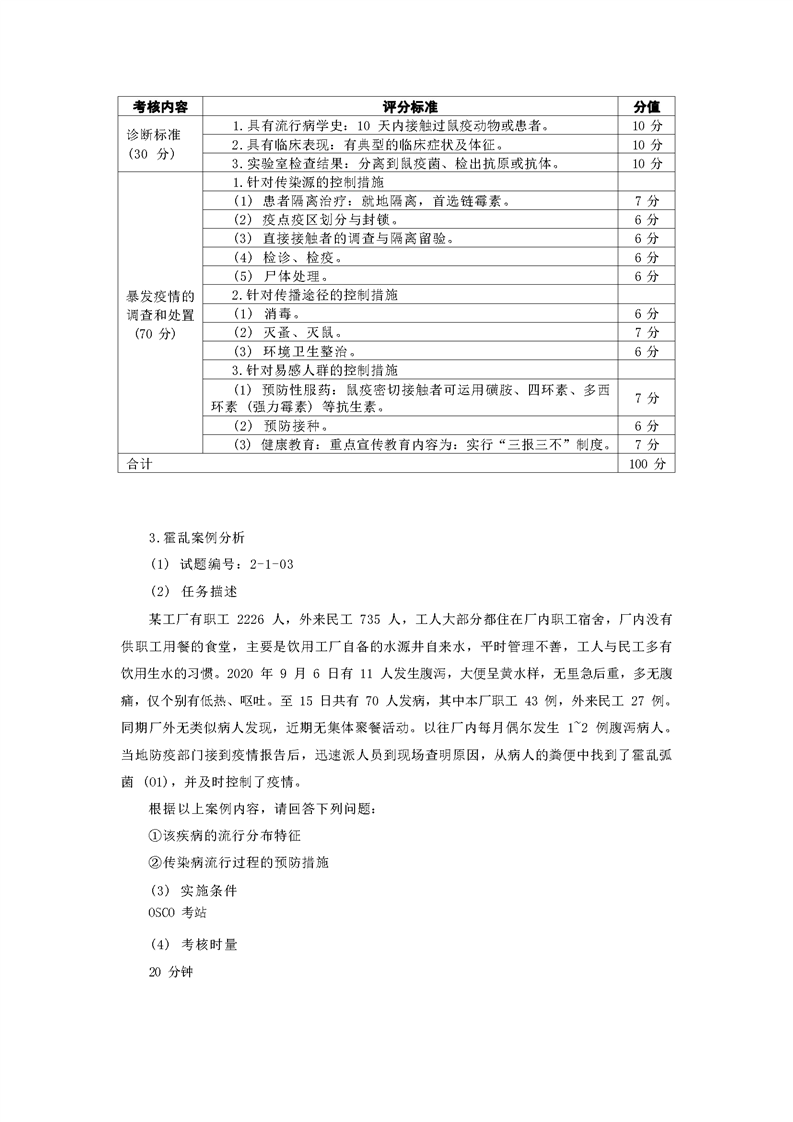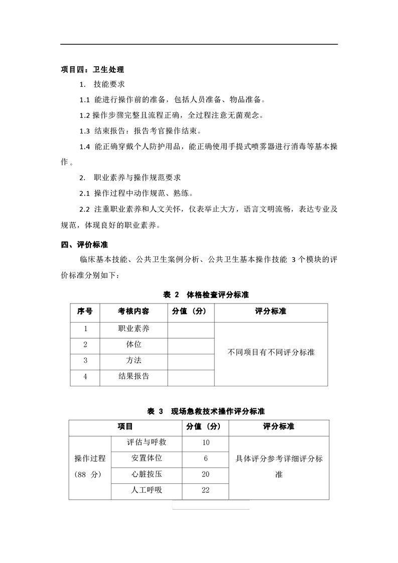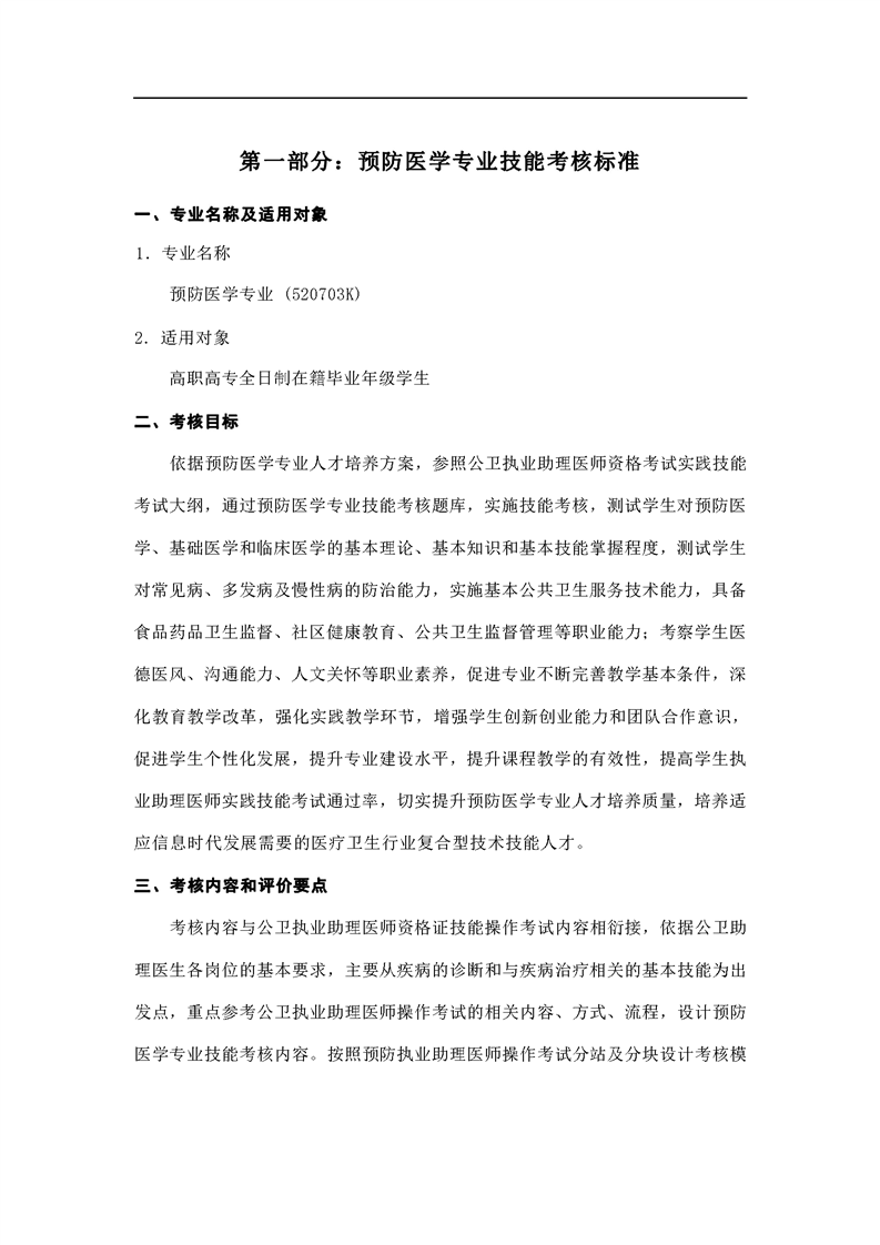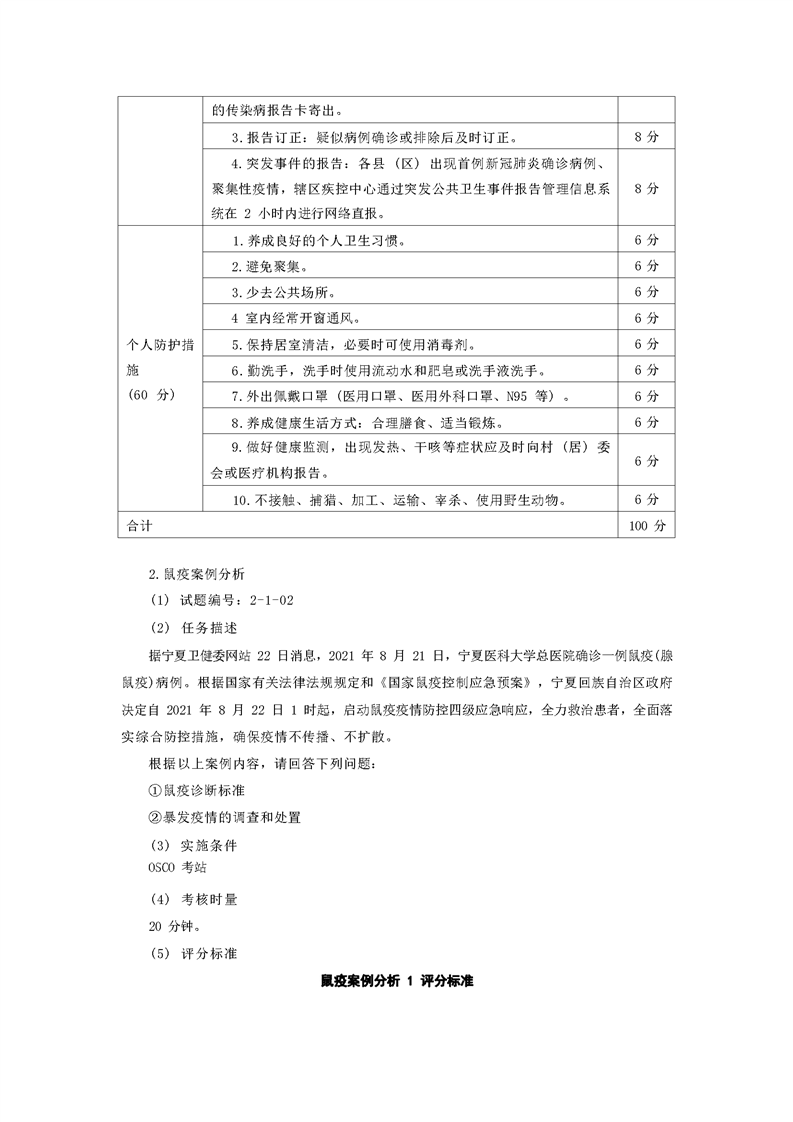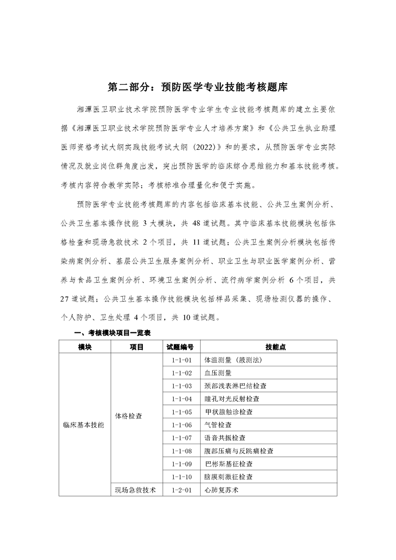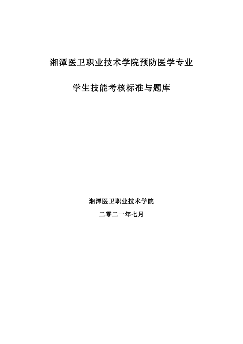 2021级预防医学专业技能考核标准和题库