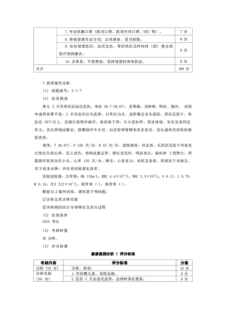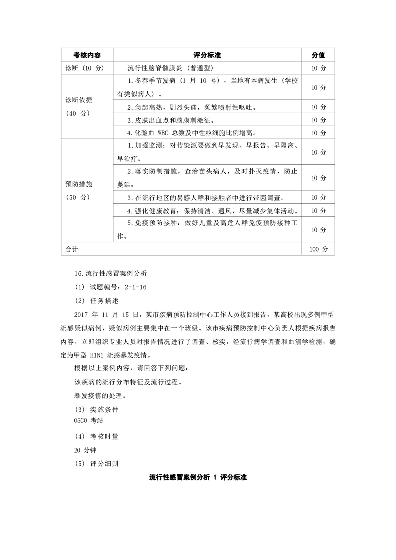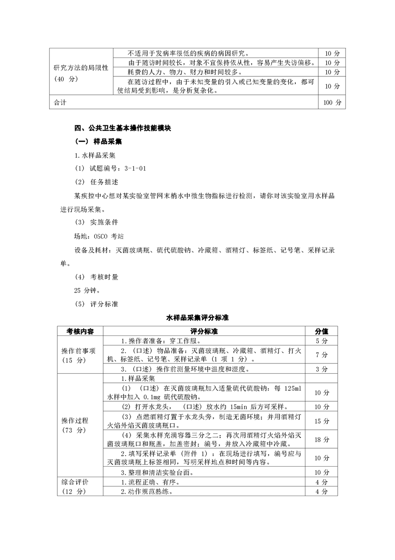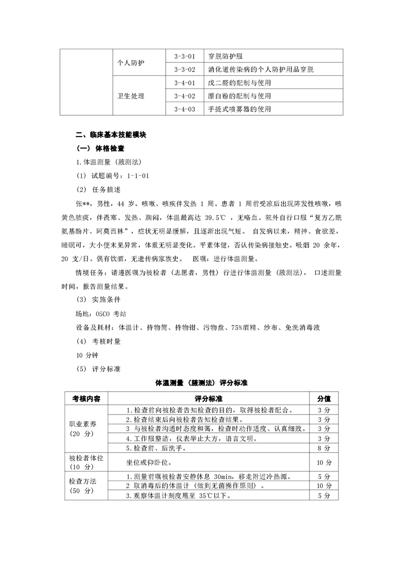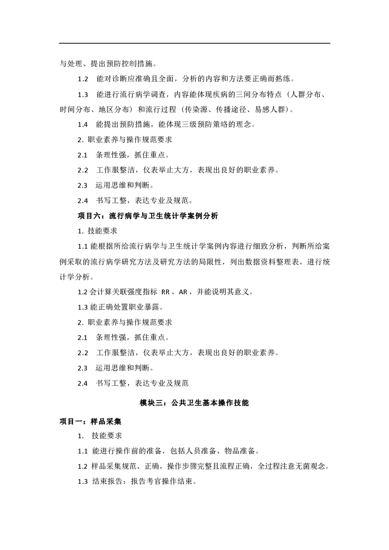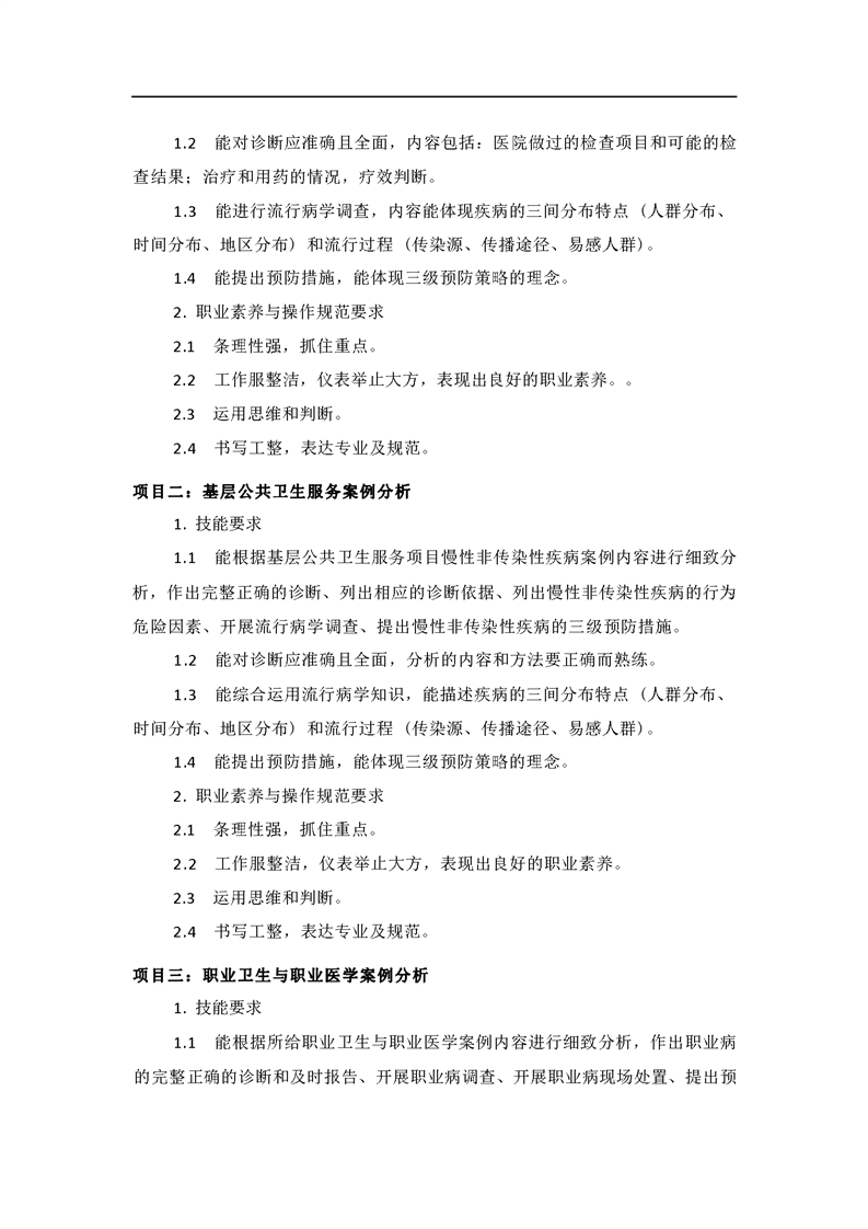 2021级预防医学专业技能考核标准和题库