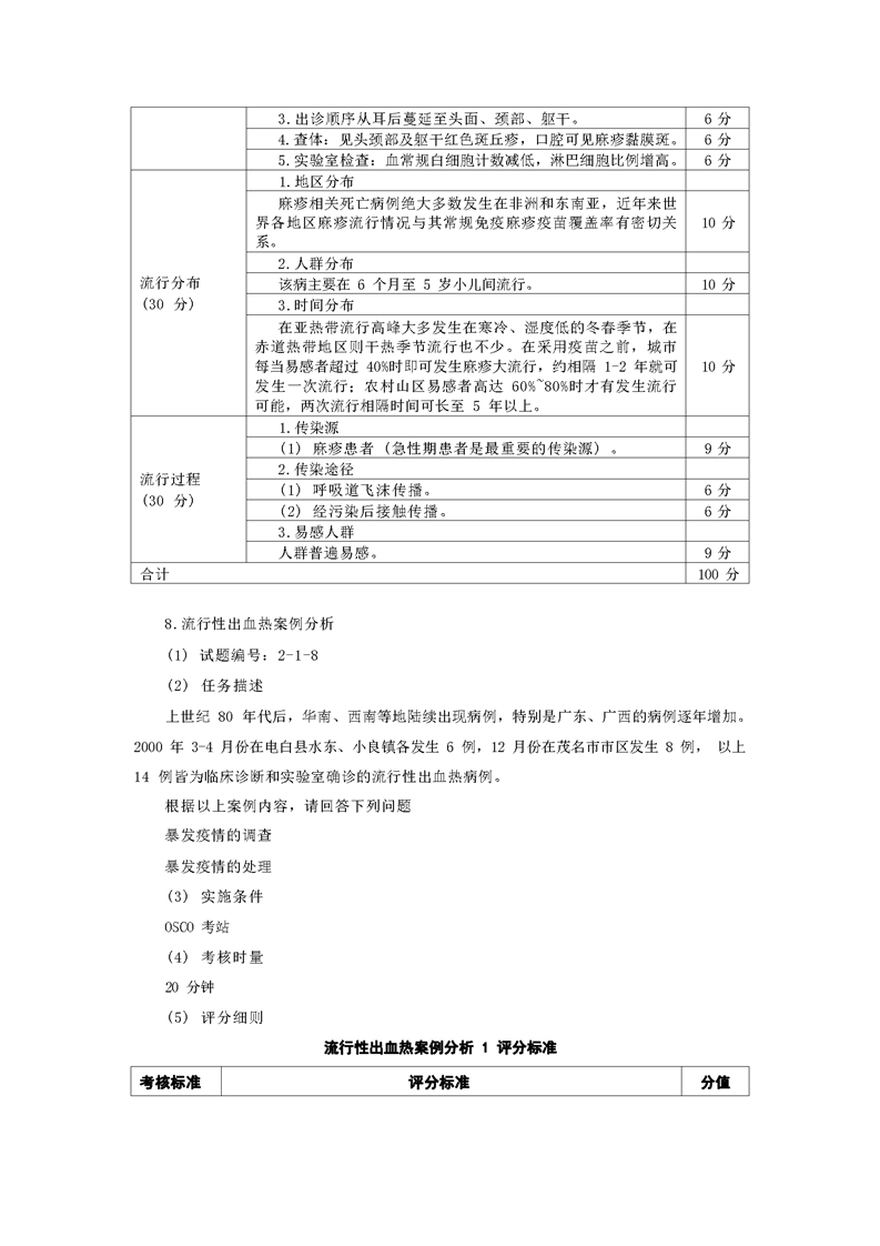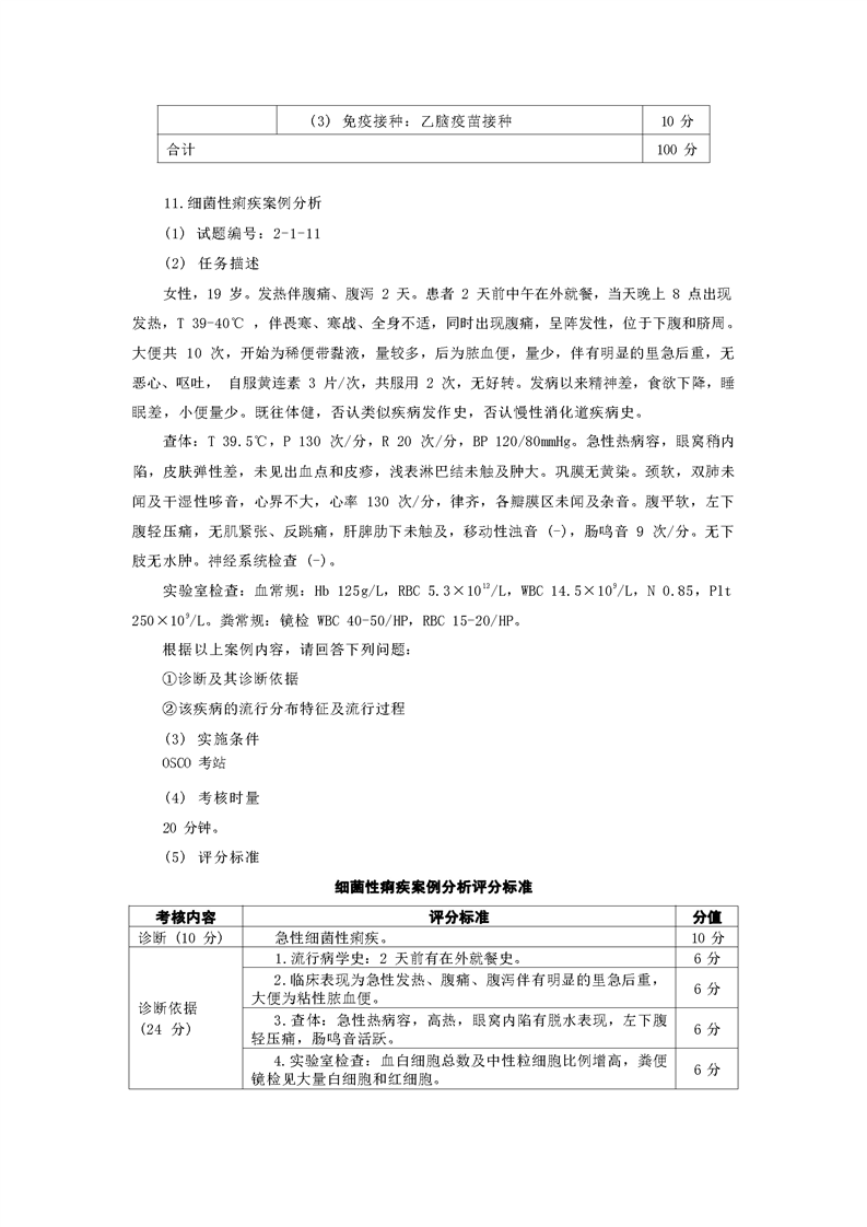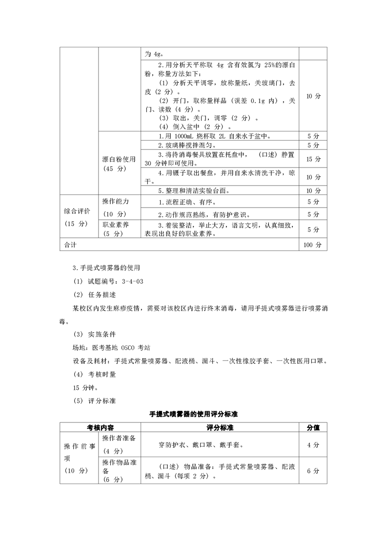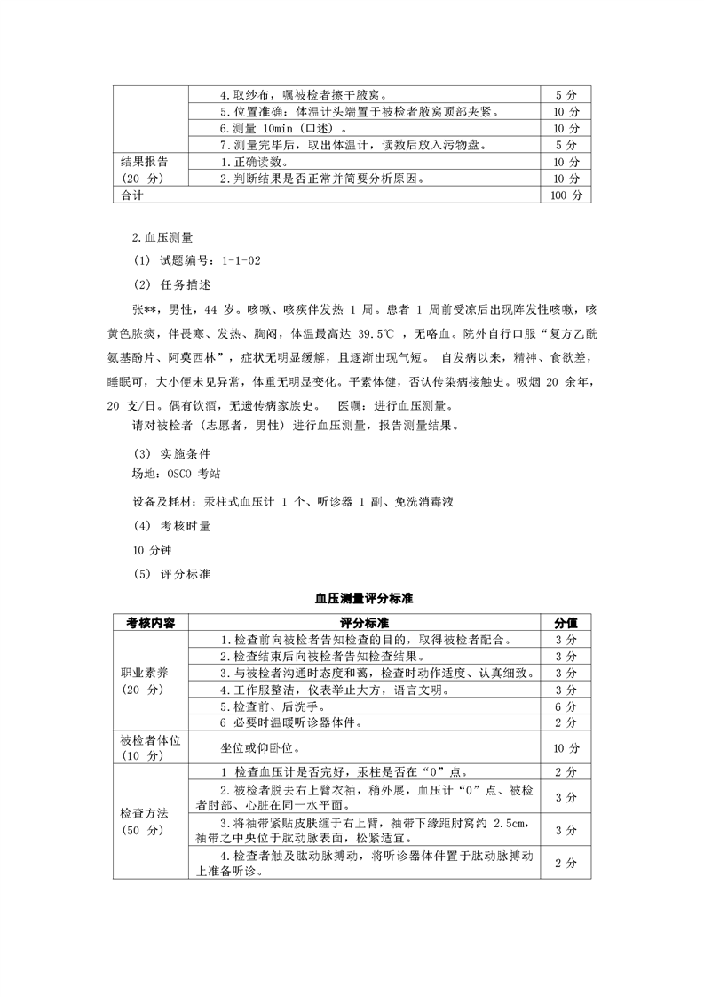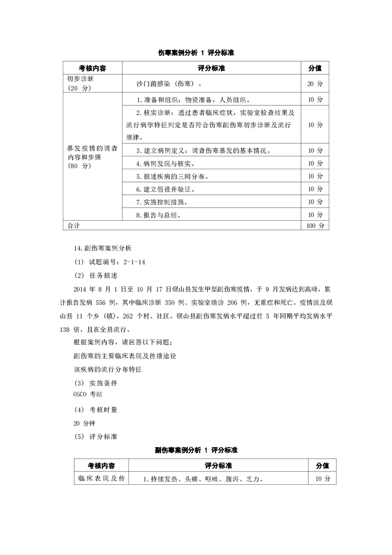 2021级预防医学专业技能考核标准和题库
