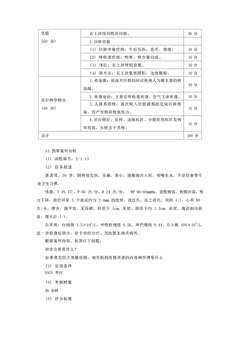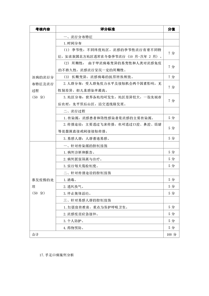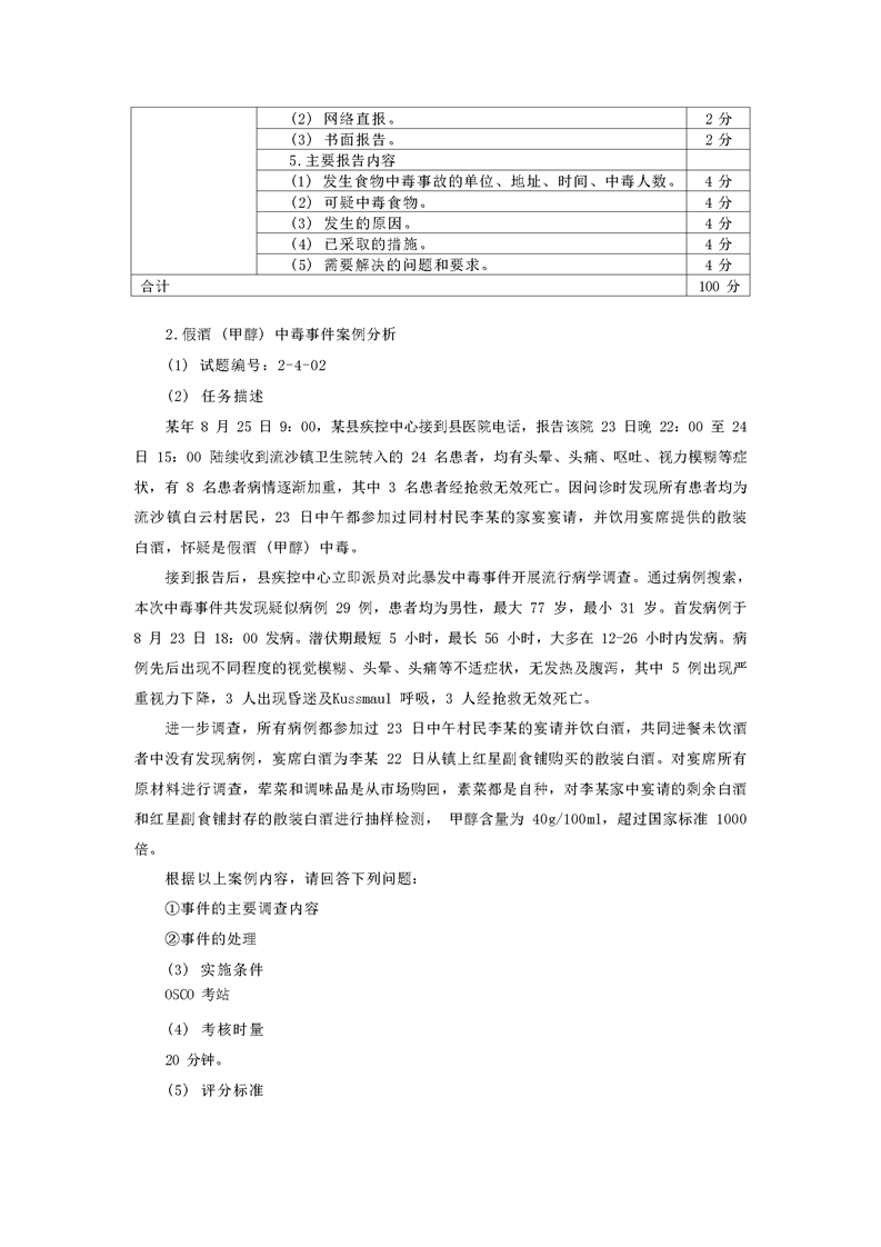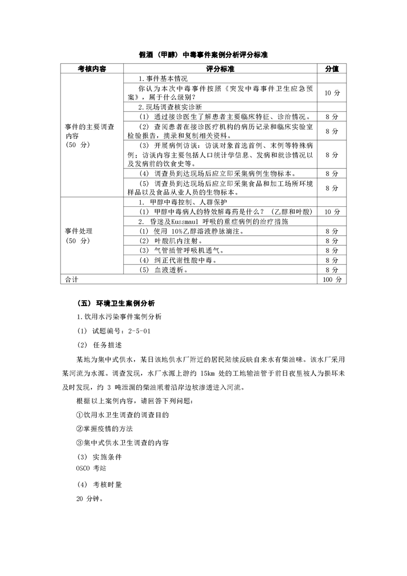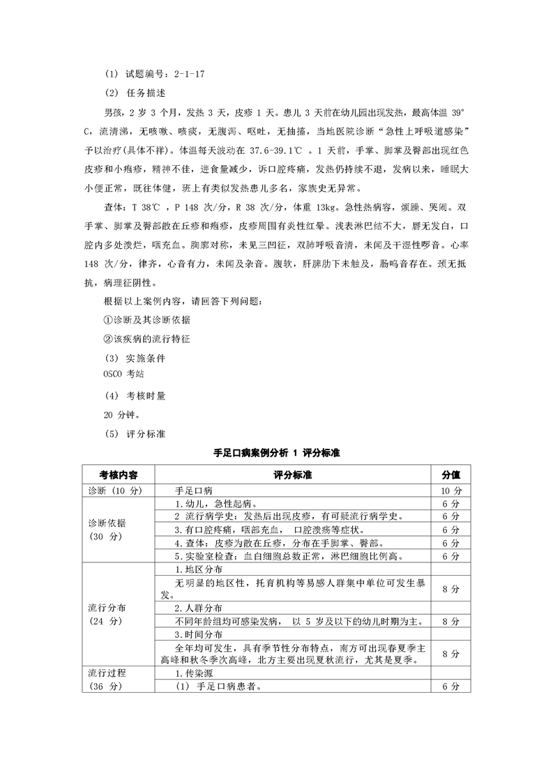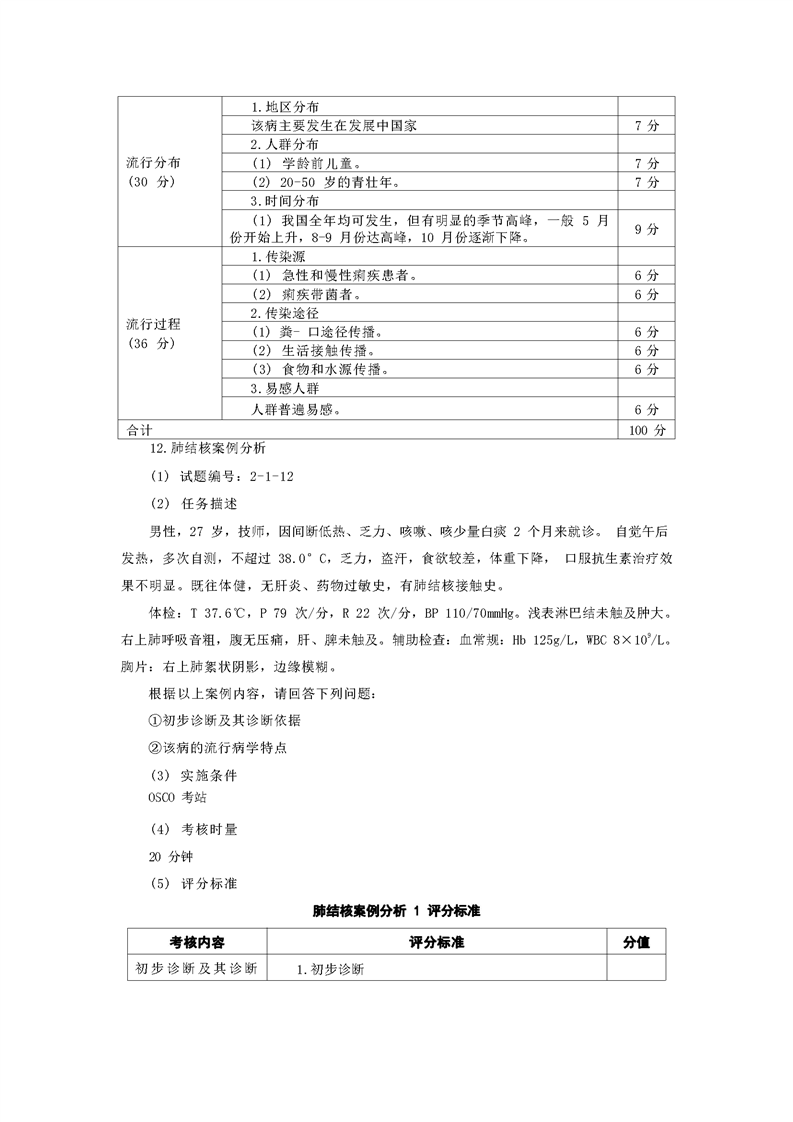 2021级预防医学专业技能考核标准和题库