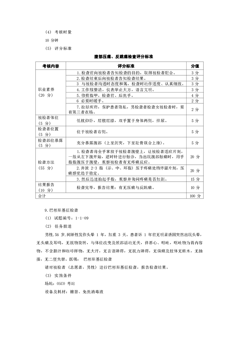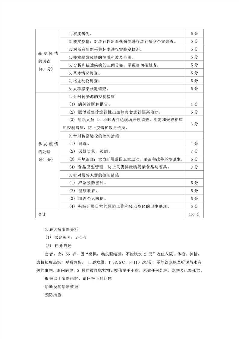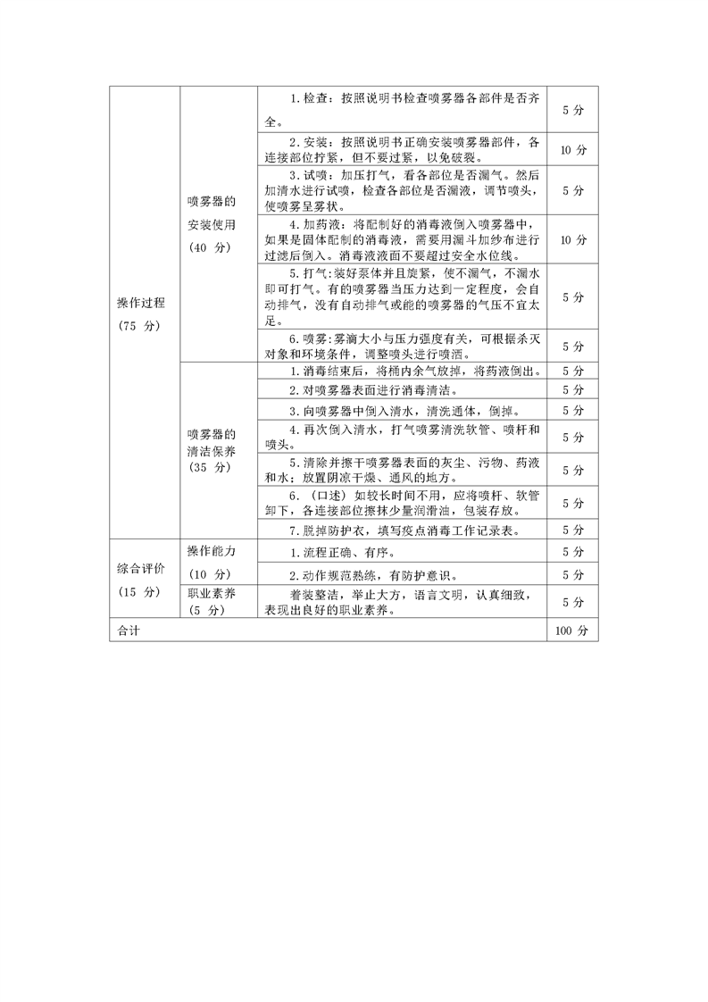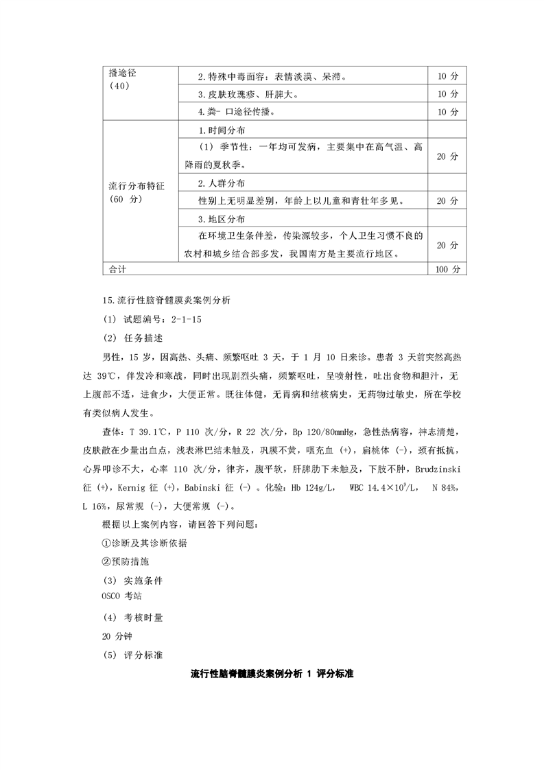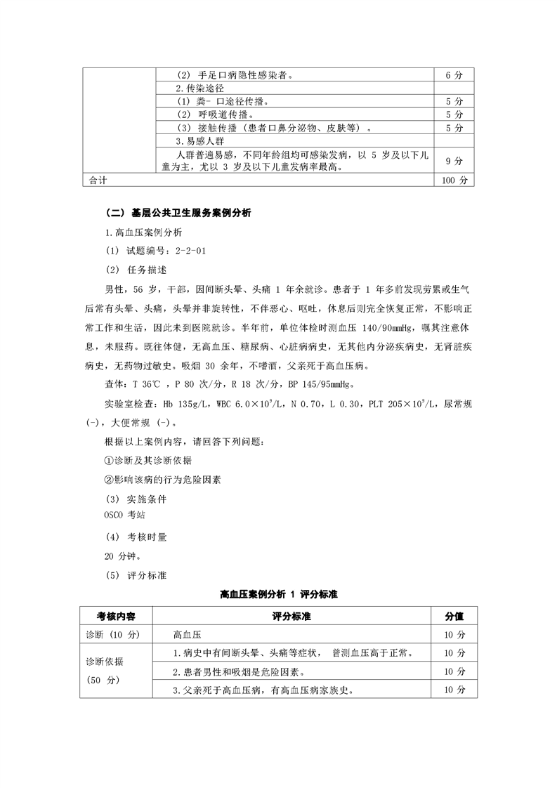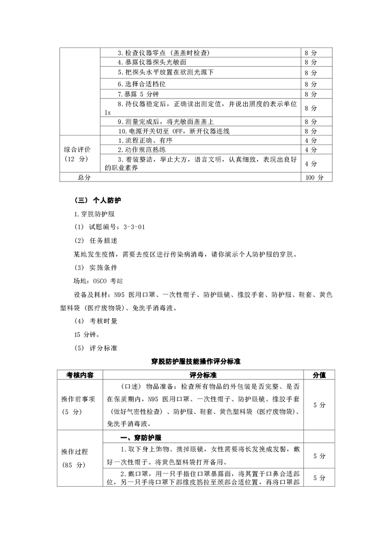 2021级预防医学专业技能考核标准和题库