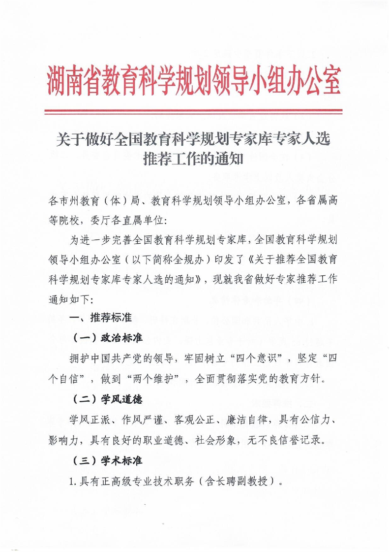 转发关于做好全国教育科学规划专家库专家人选推荐工作的通知