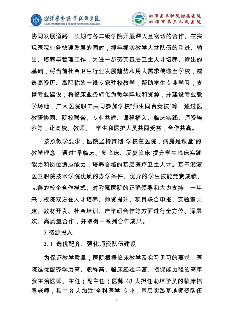 湘乡市第二人民医院参与半岛(中国)高等职业教育人才培养年度报(2