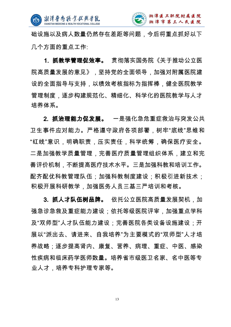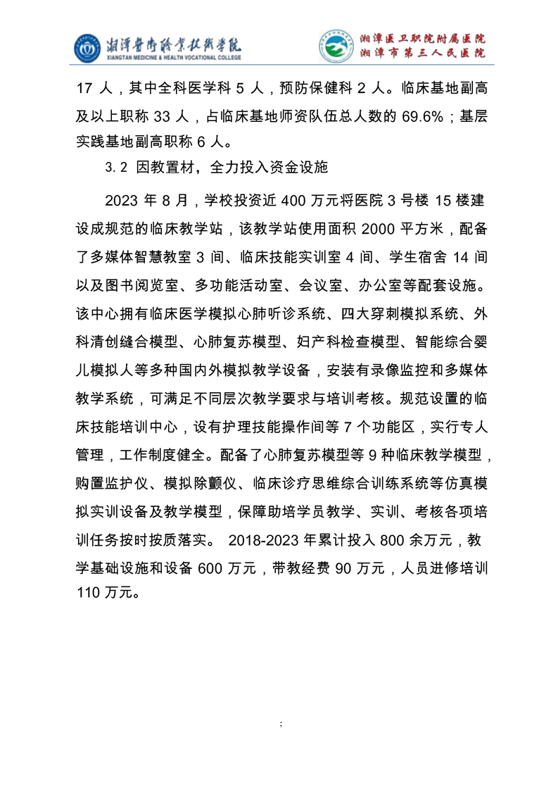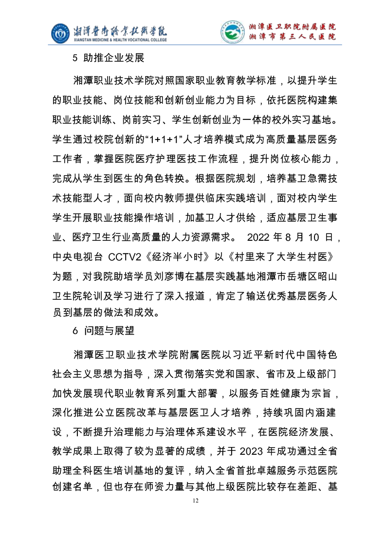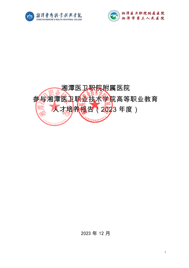 湘潭医卫职院附属医院参与半岛(中国)高等职业教育人才培养报告(2023年度)