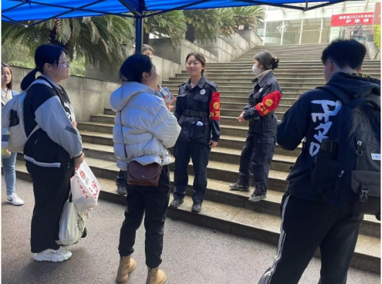 我处积极协调交警以及辖区派出所给予警力上的最大支持。密切配合、严密组织,为校园周边构筑起一条坚实的安保屏障。单招考试期间,保卫处全体工作人员、校卫队成员准时到岗、分工协作、密切配合,及时处理化解各类突发事件,圆满完成了考试区域安保、考点周边巡查、秩序维护与安全保障等工作。