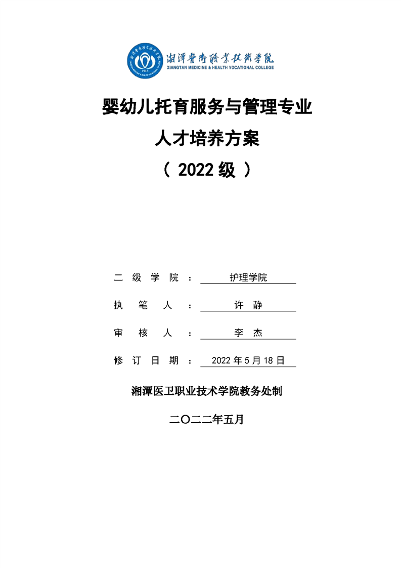 2022级婴幼儿托育服务与管理专业人才培养方案