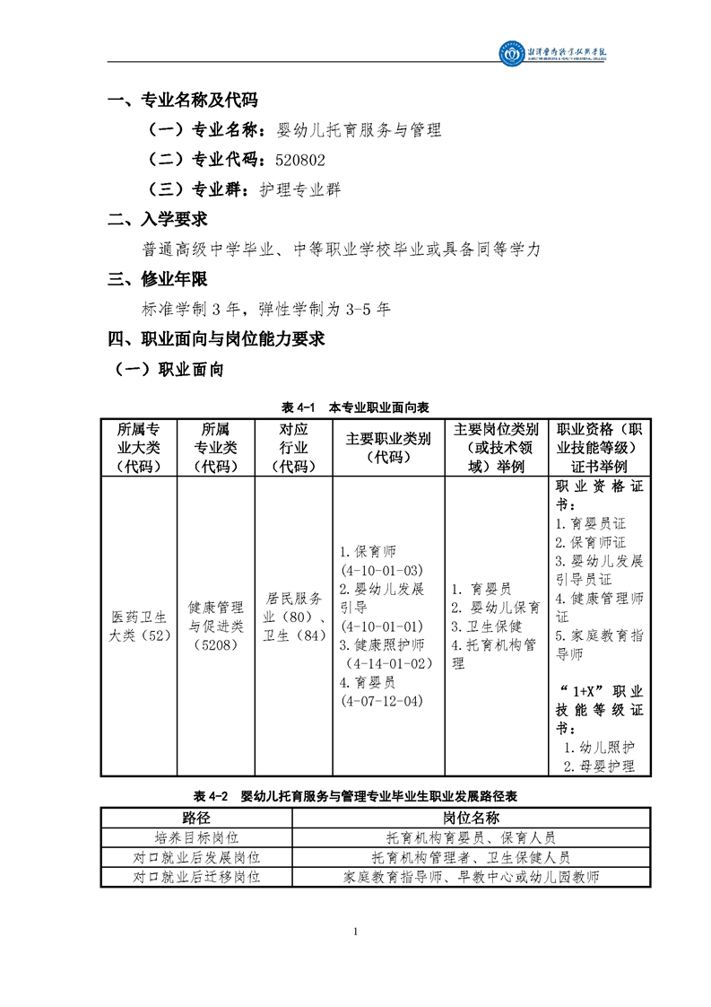 > 教务处 > 半岛(中国)专业人才培养方案 > 18婴幼儿托育服务与管理专业
