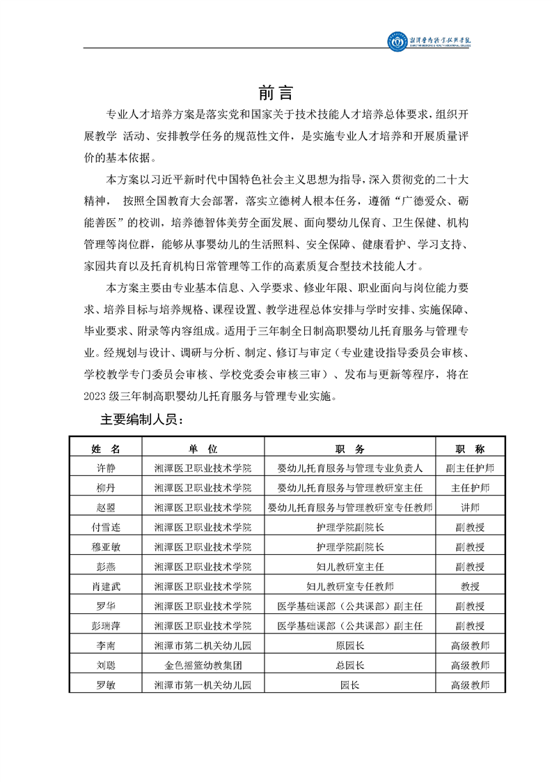 2023级婴幼儿托育服务与管理专业人才培养方案