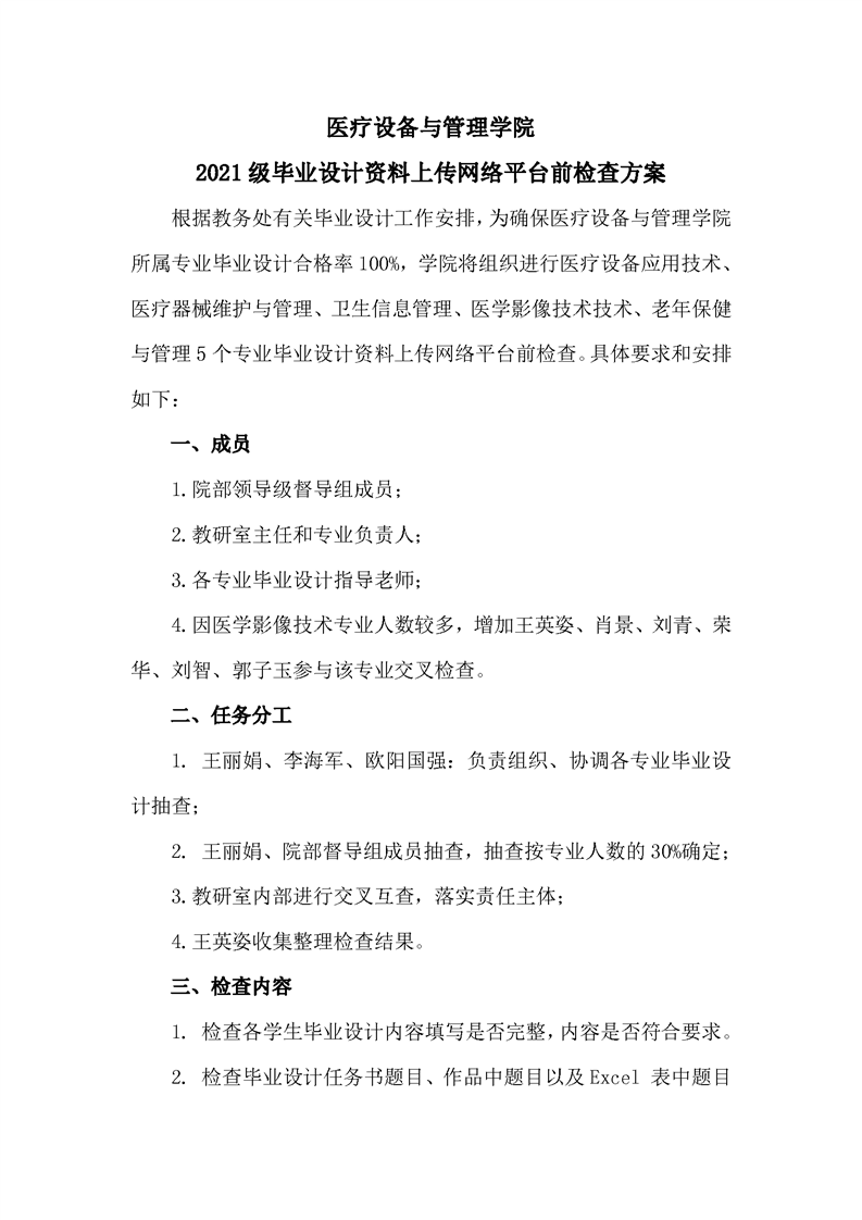 医管学院2021级学生毕业设计工作督导检查工作方案和督导检查情况总结