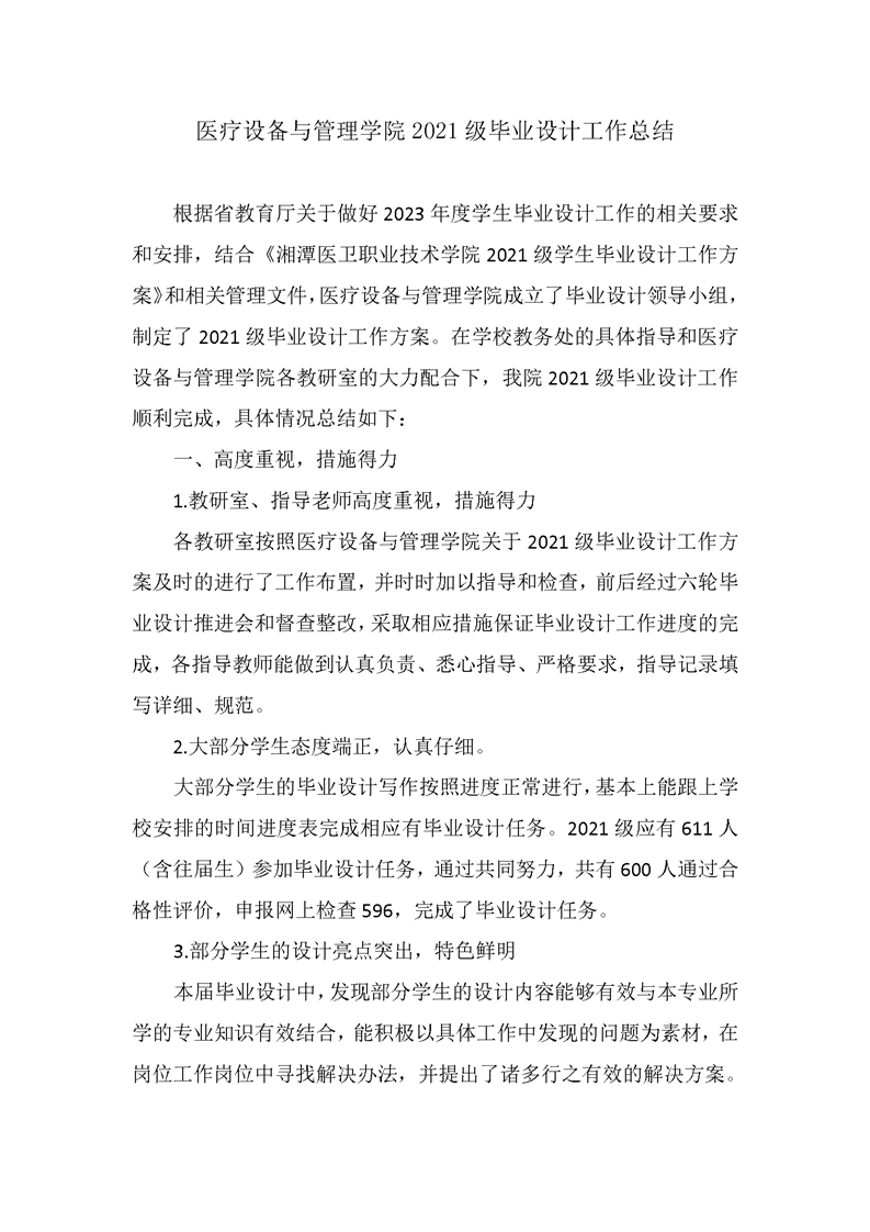 医管学院2021级毕业设计工作总结