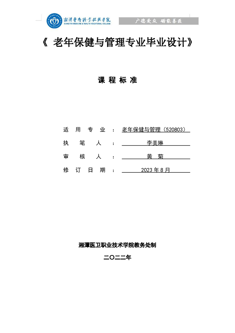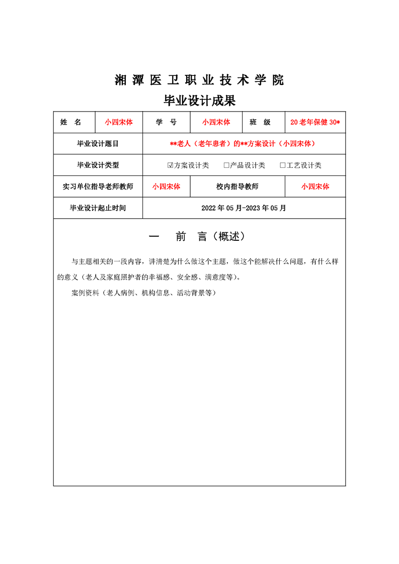医疗器械维护与管理专业2021级毕业设计学生手册