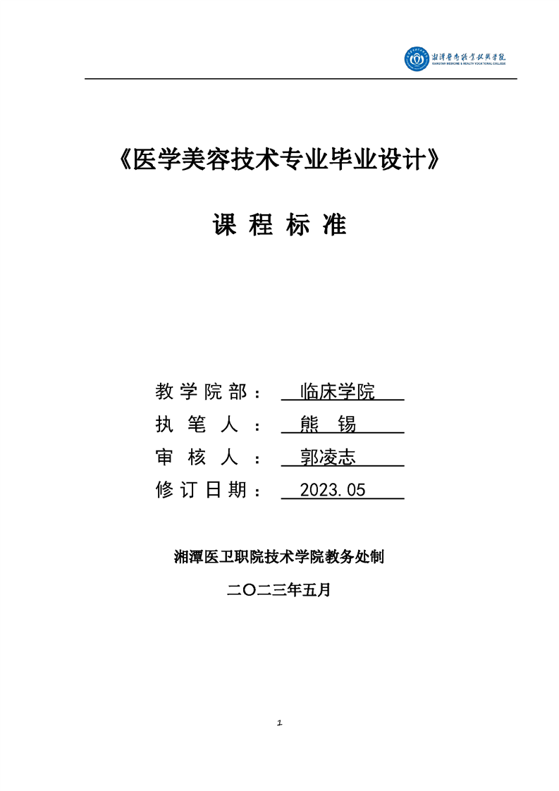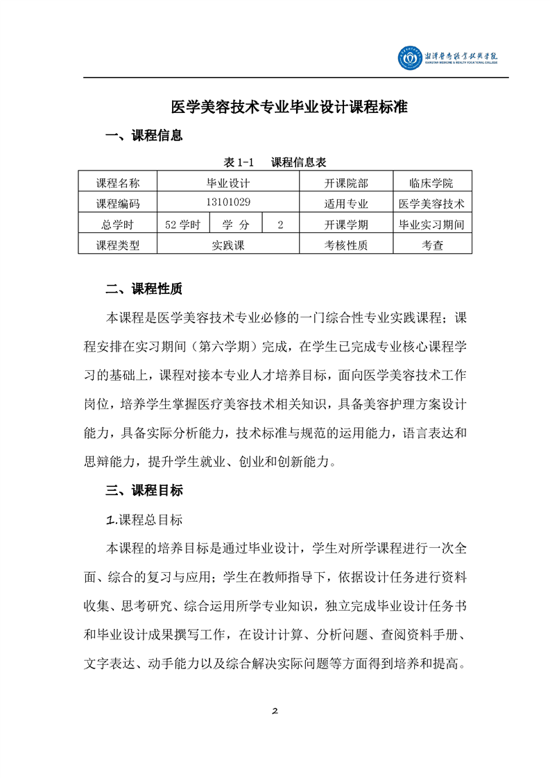 医学美容技术专业毕业设计课程标准