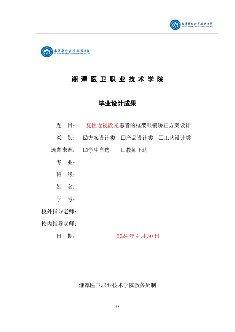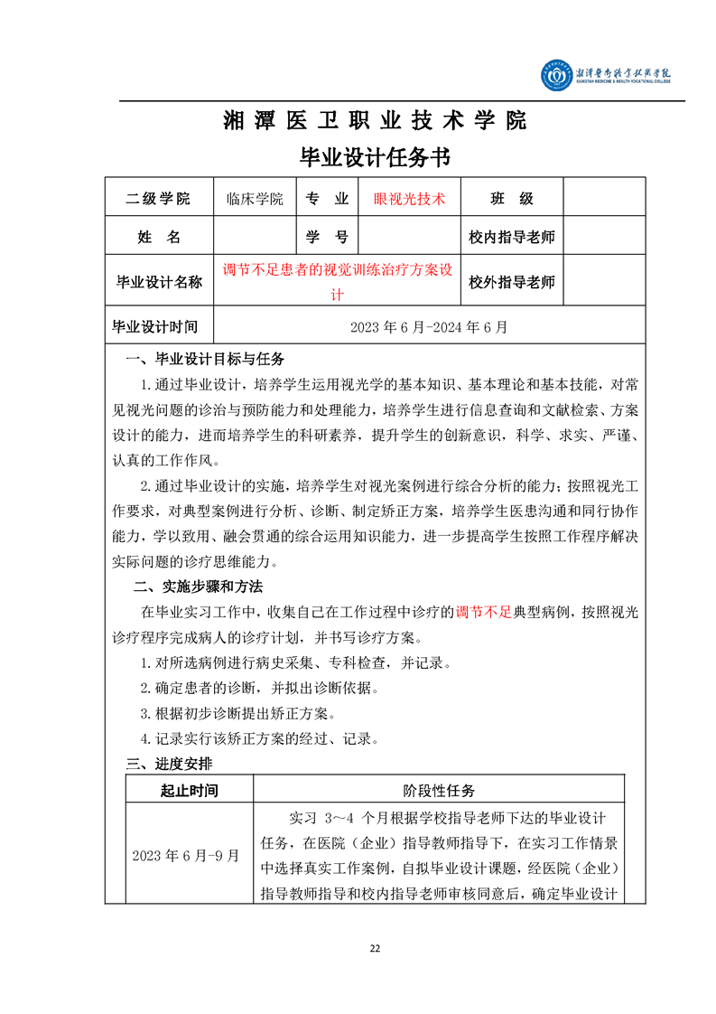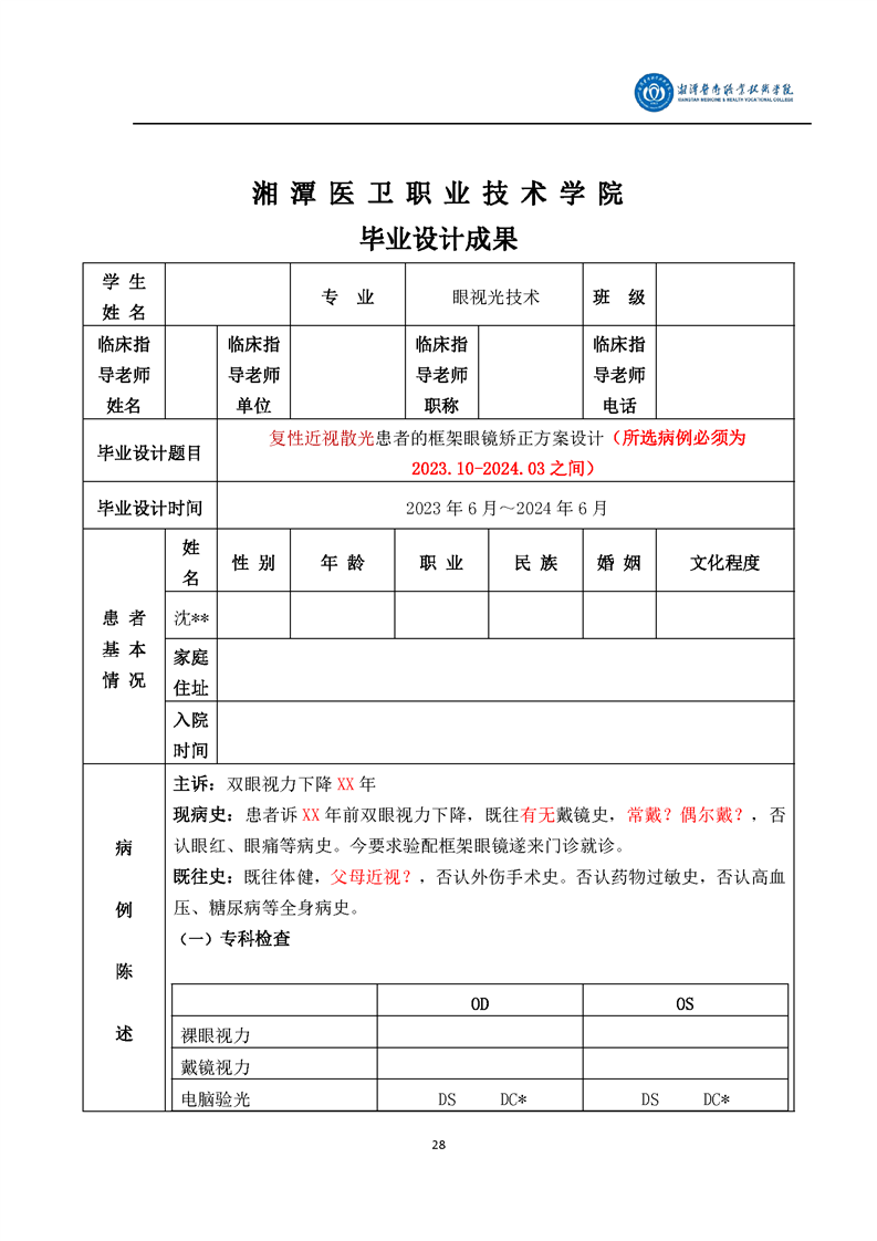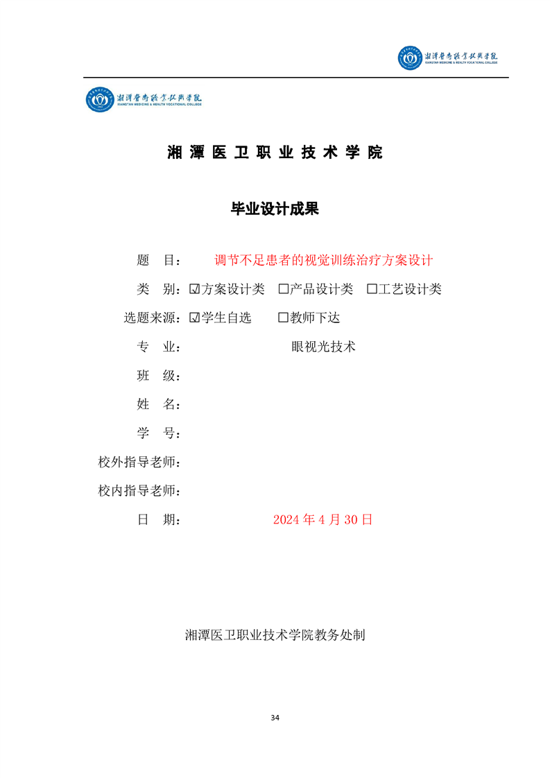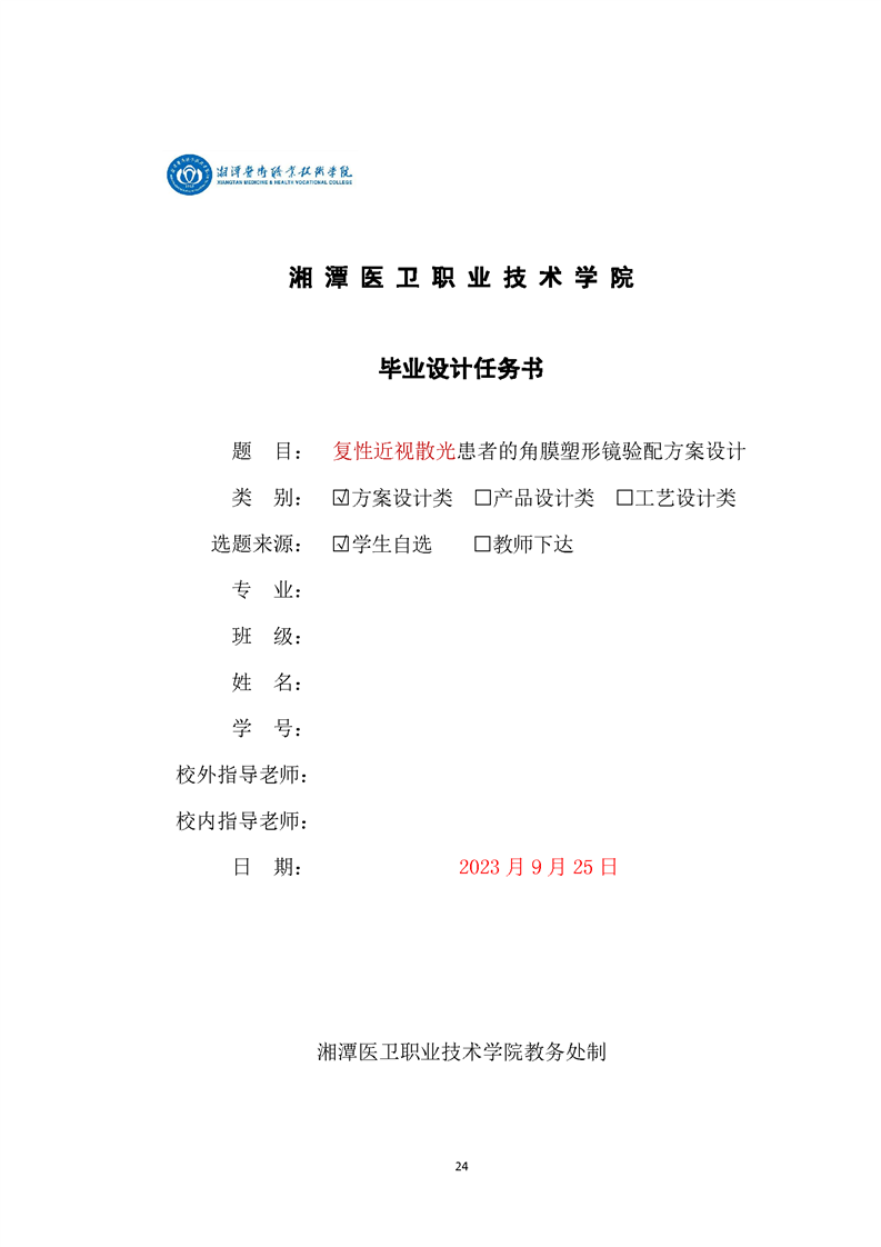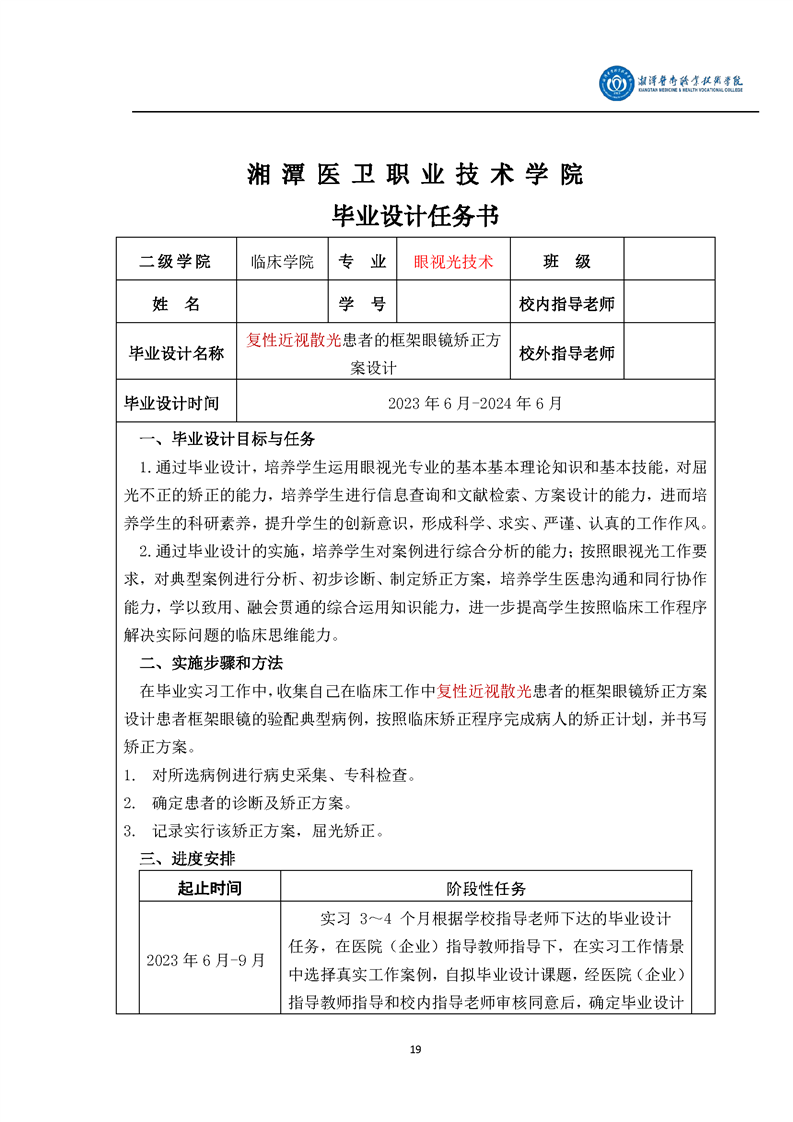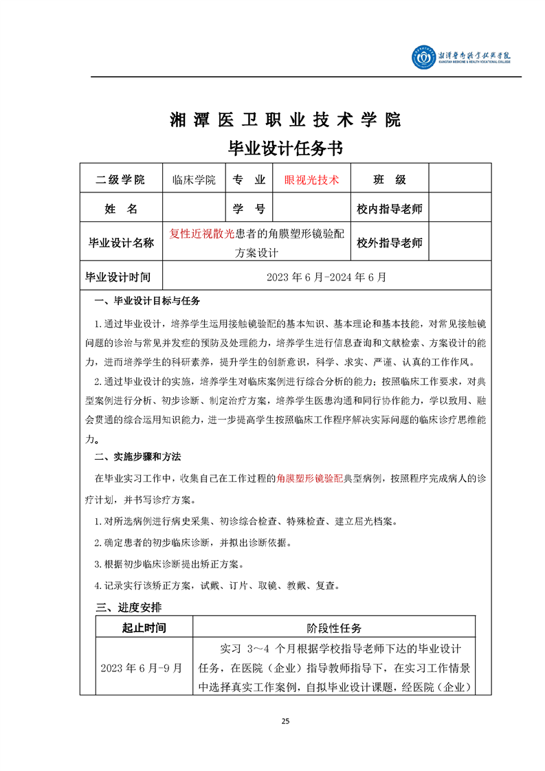 眼视光技术专业毕业设计学生手册