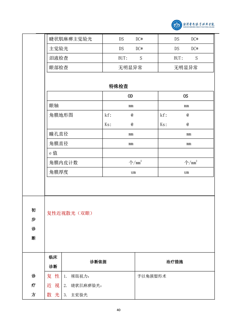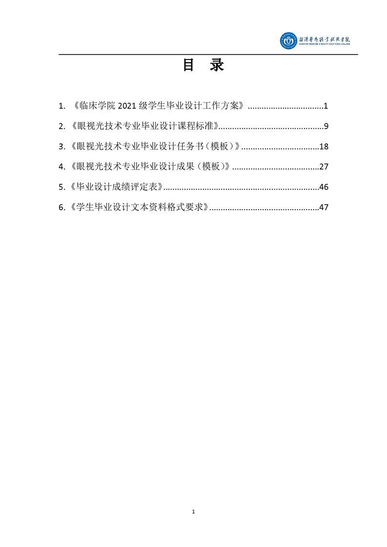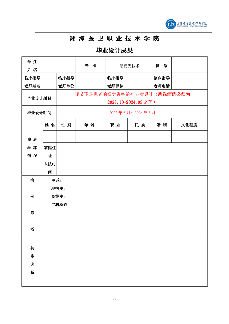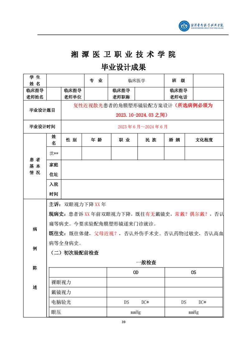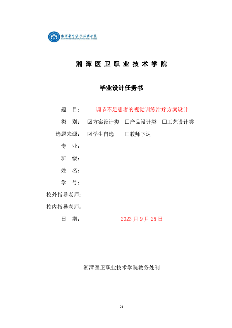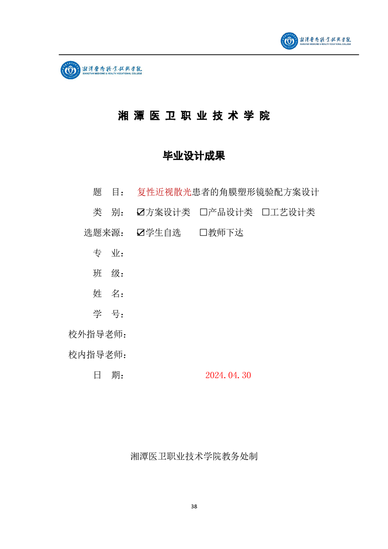 眼视光技术专业毕业设计学生手册