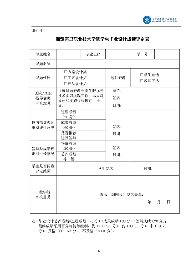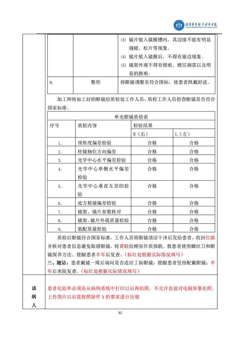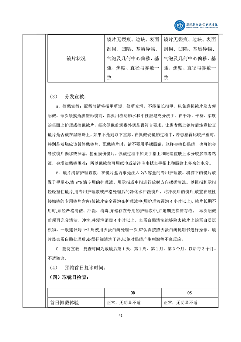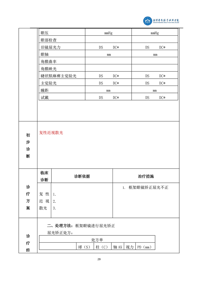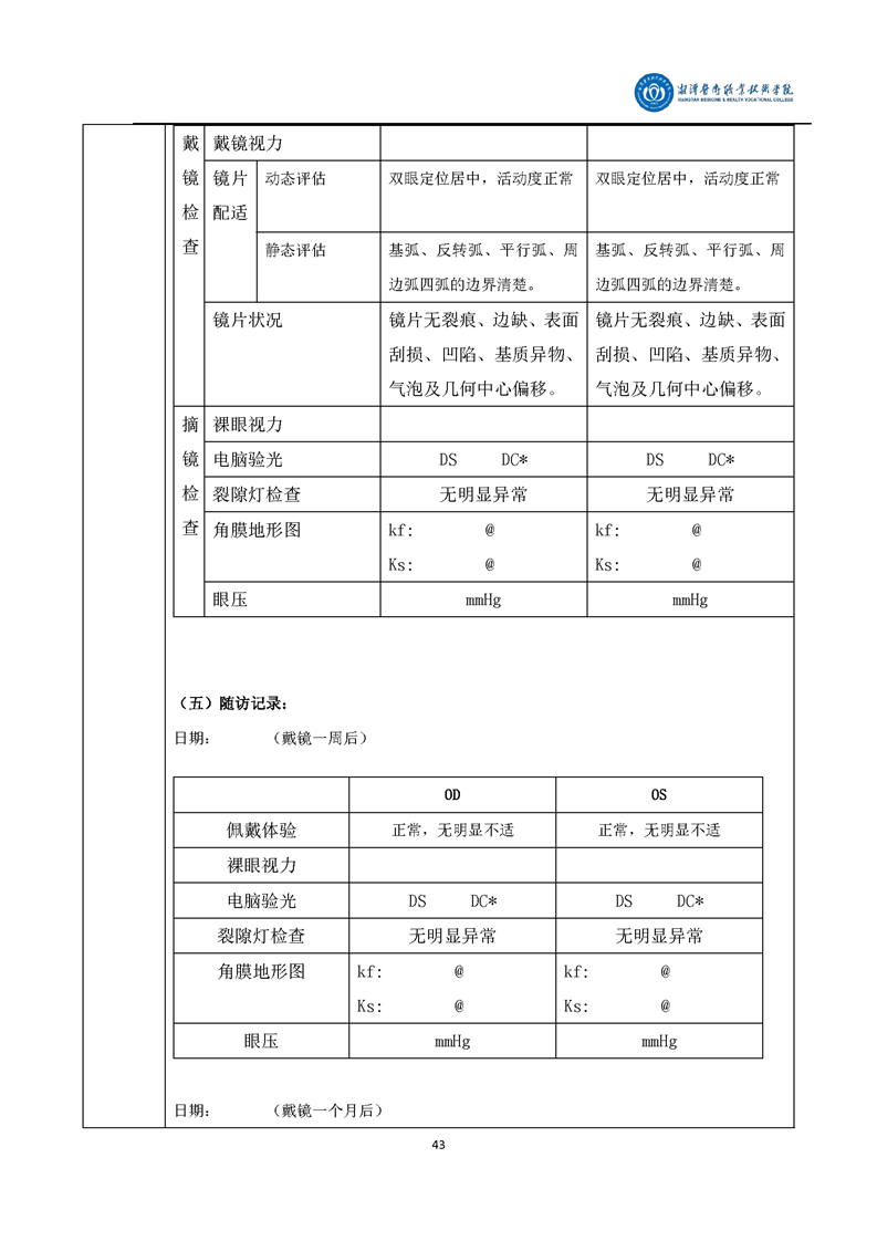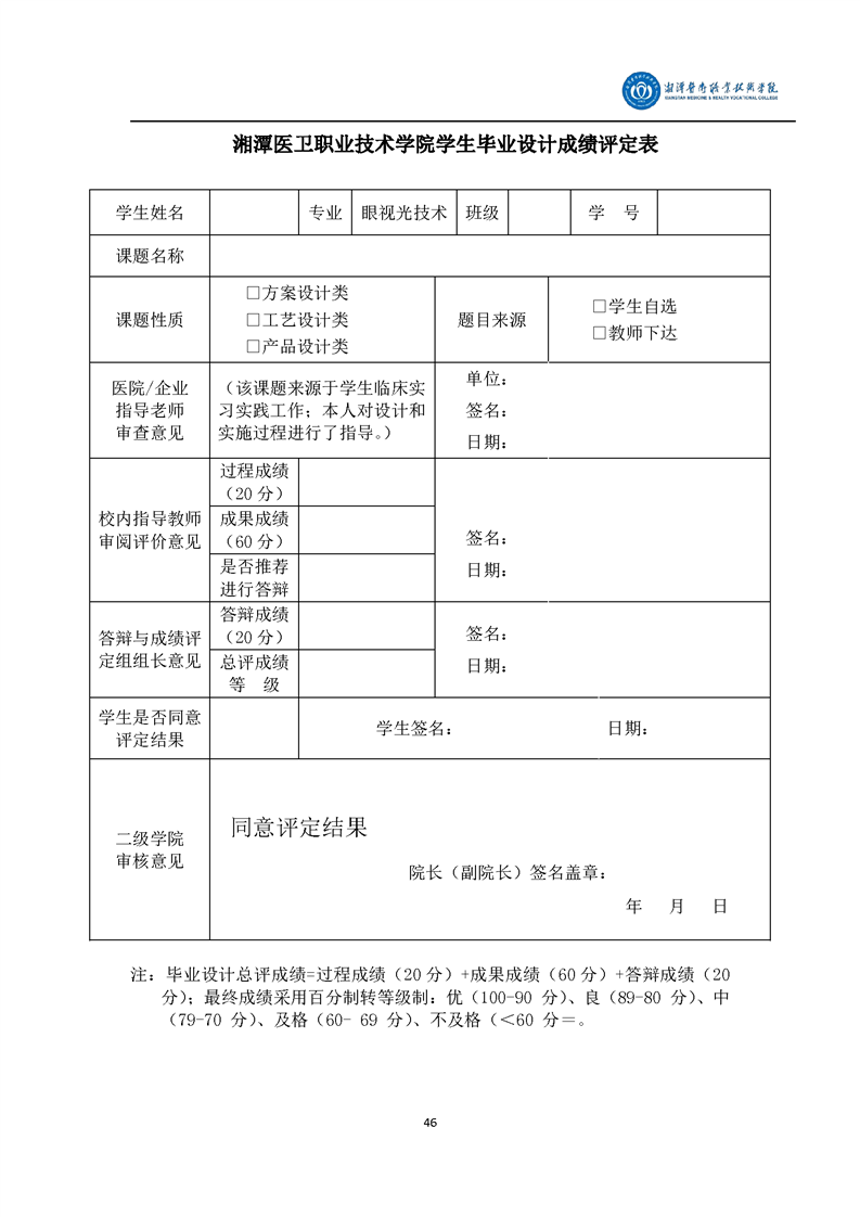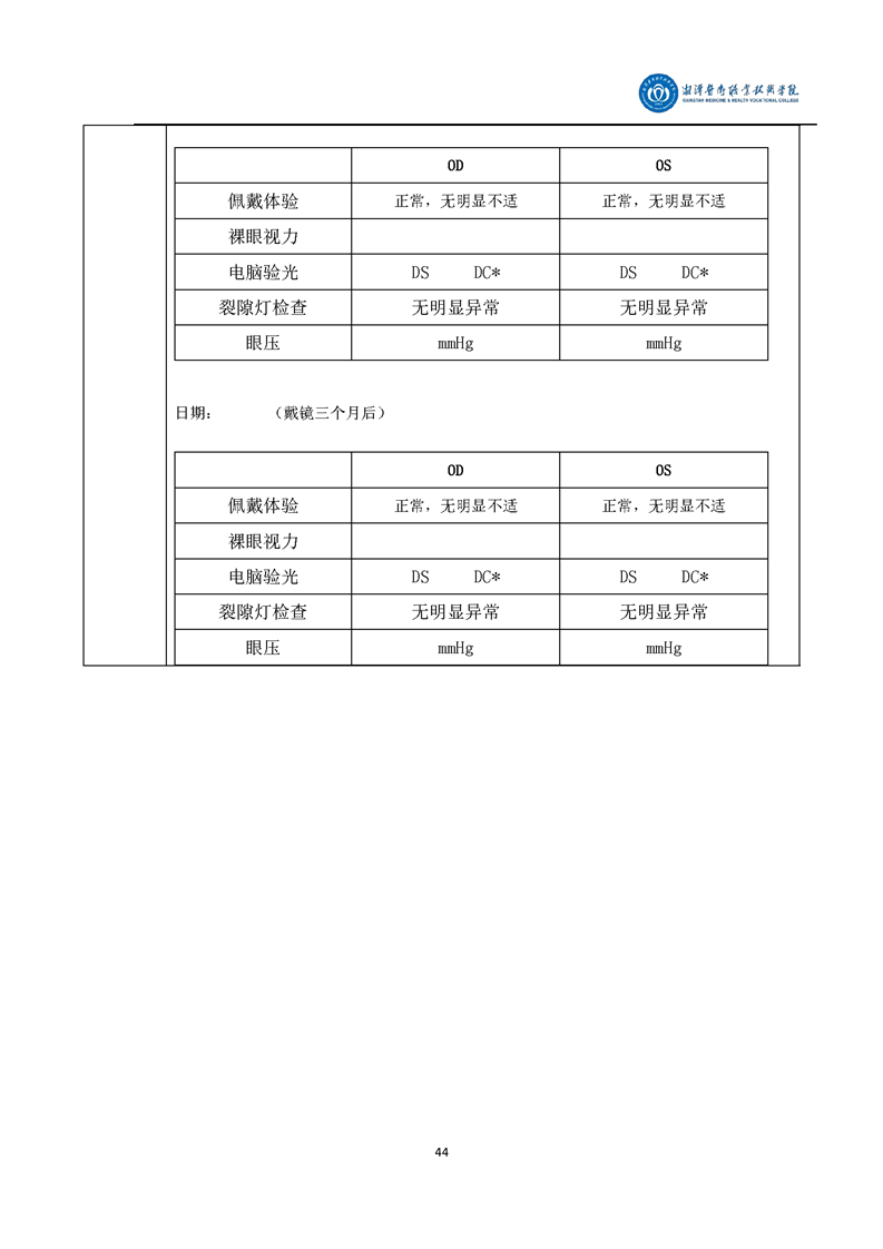 眼视光技术专业毕业设计学生手册