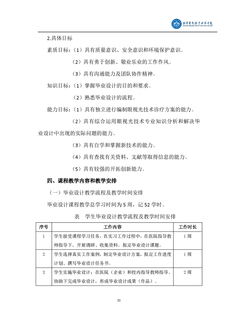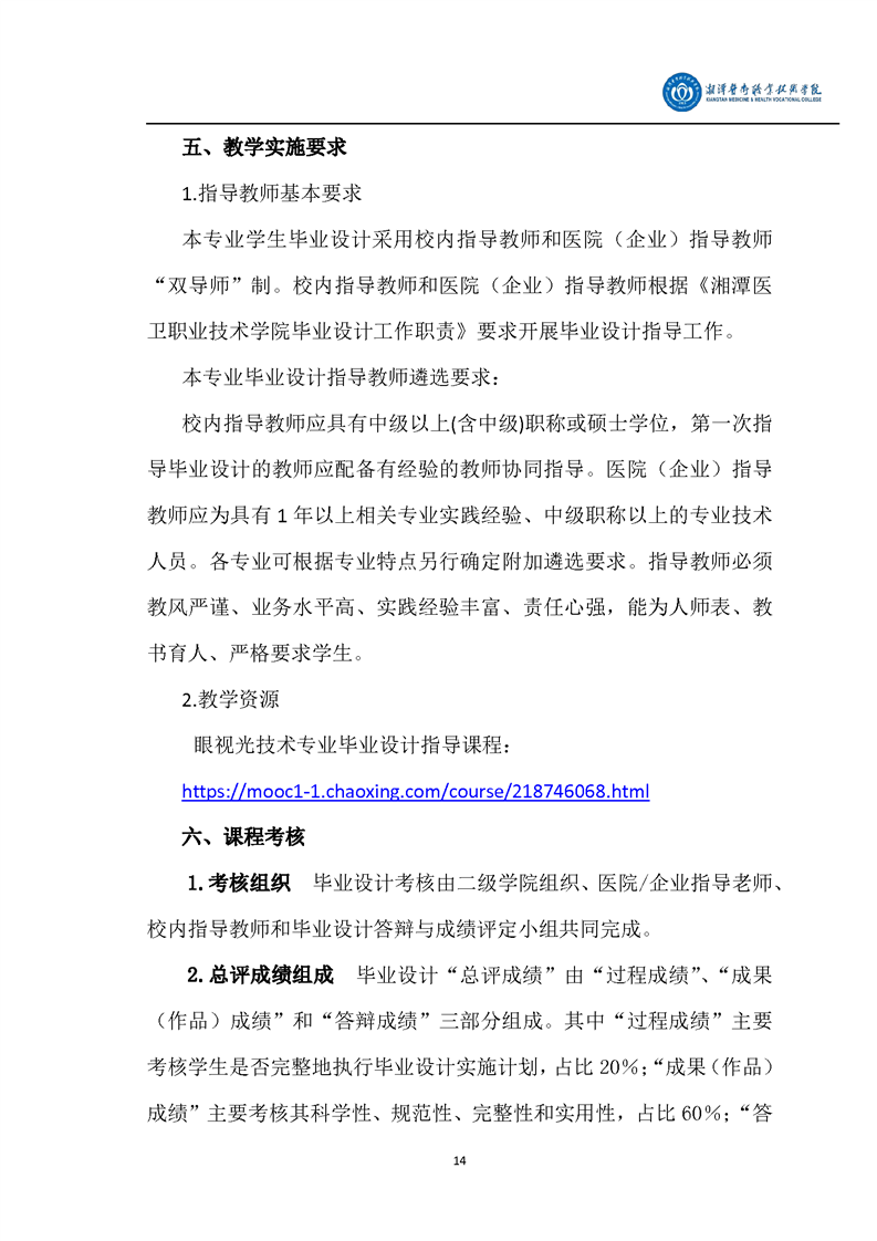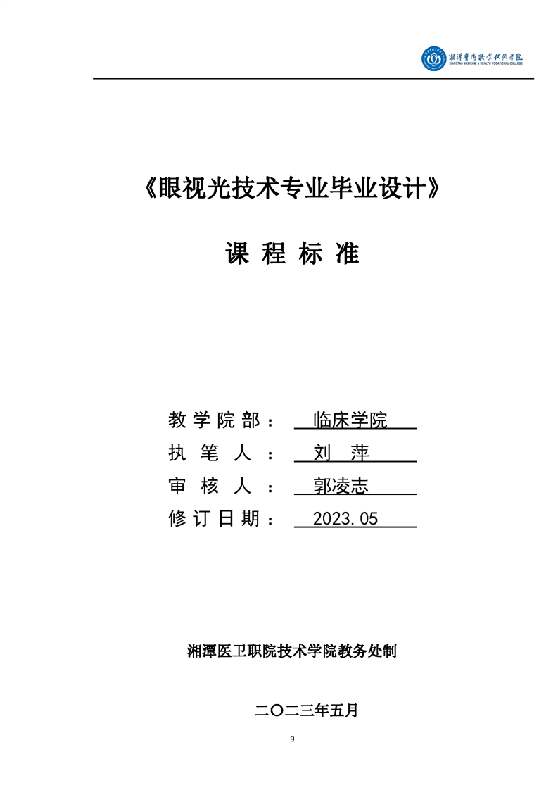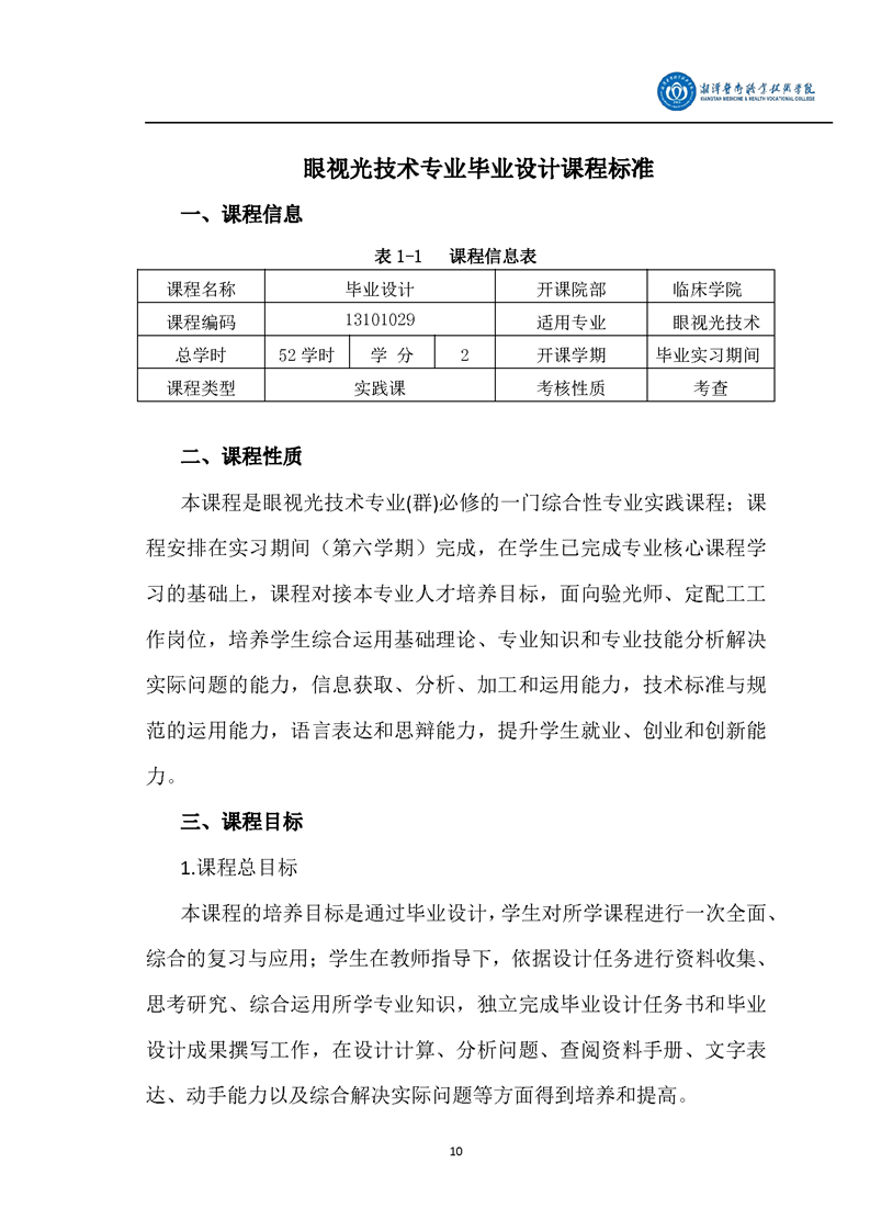 眼视光技术专业毕业设计课程标准