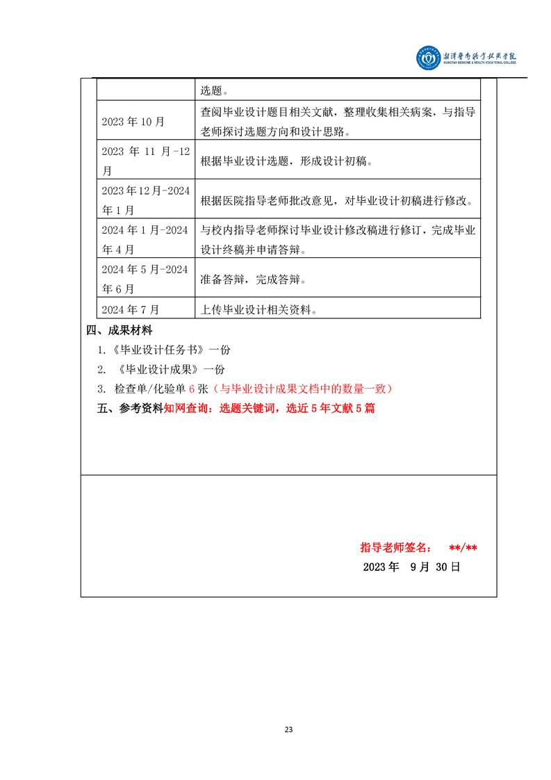 医学美容技术专业毕业设计学生手册