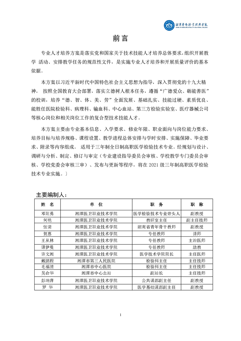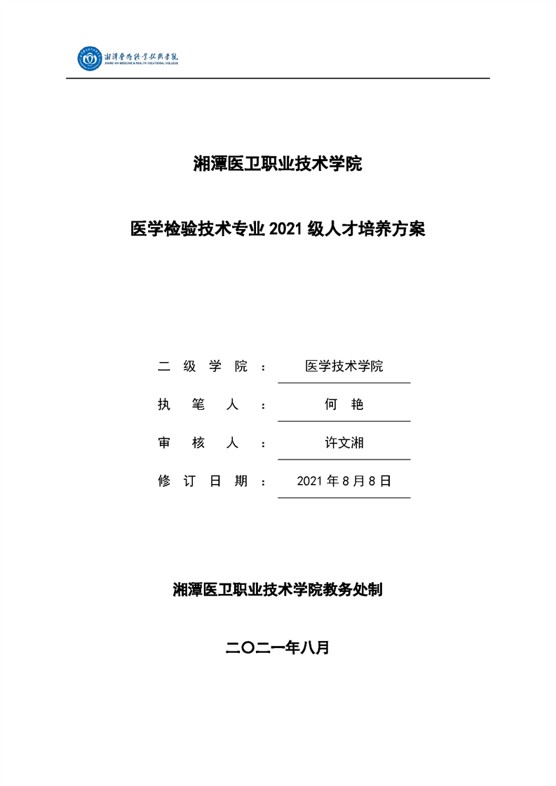 医学检验技术专业2021级人才培养方案