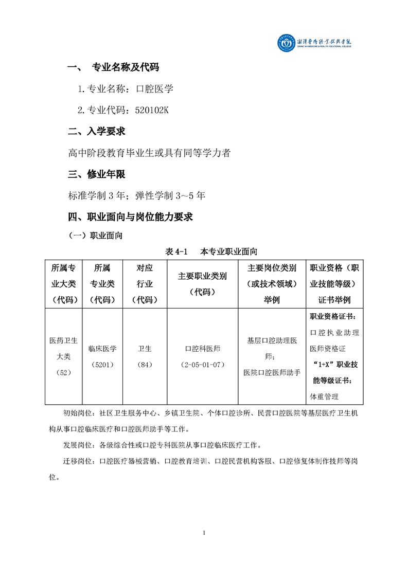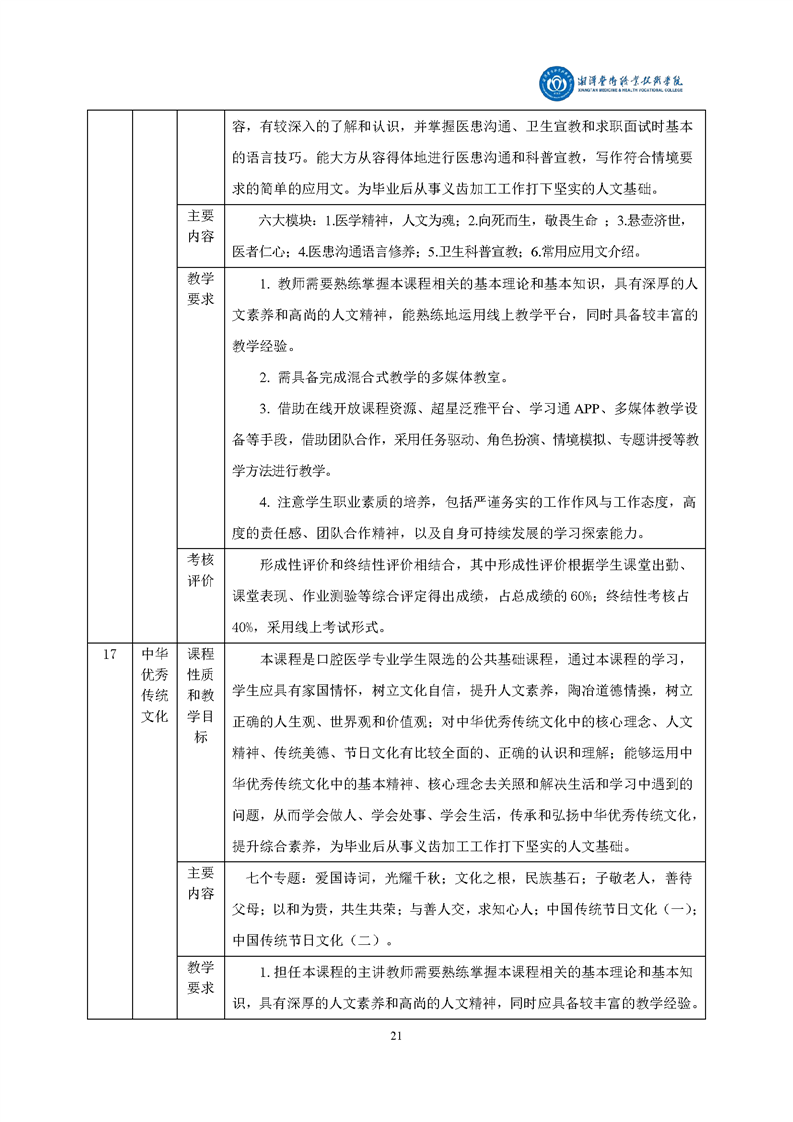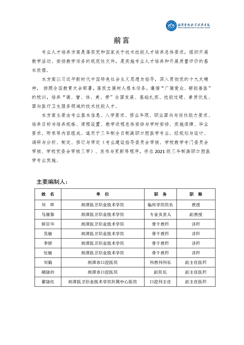 2021级口腔医学专业人才培养方案