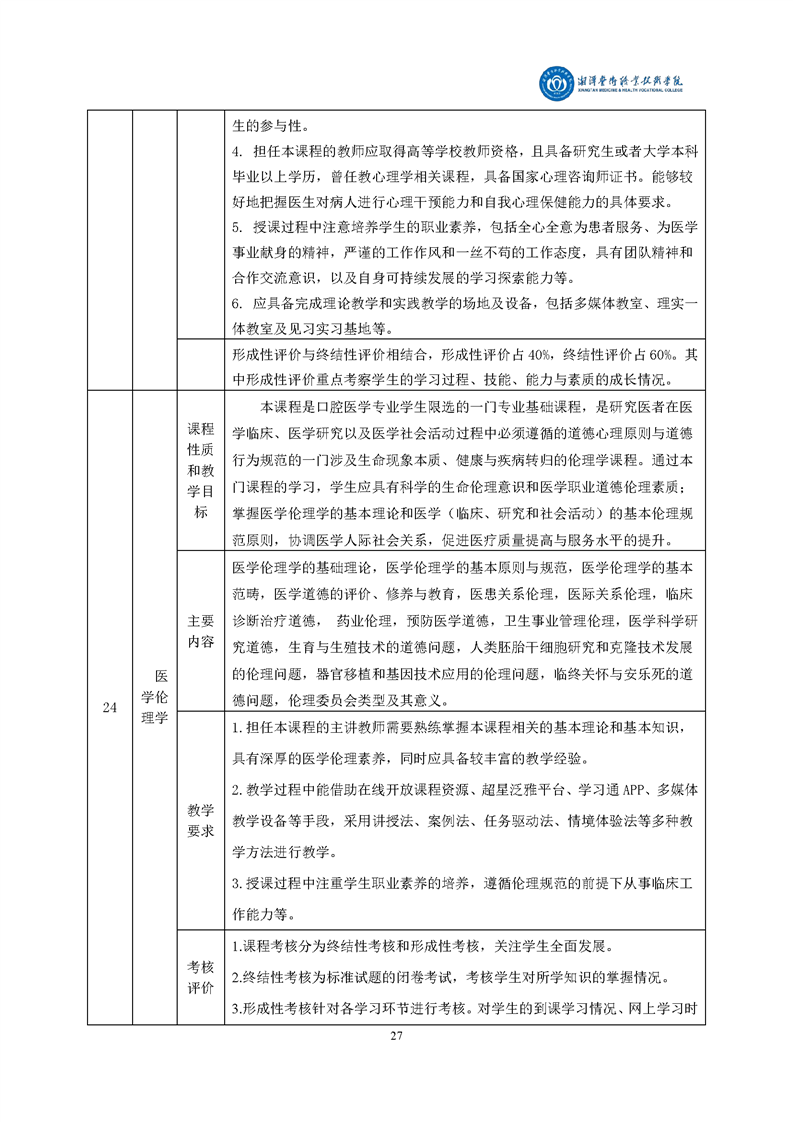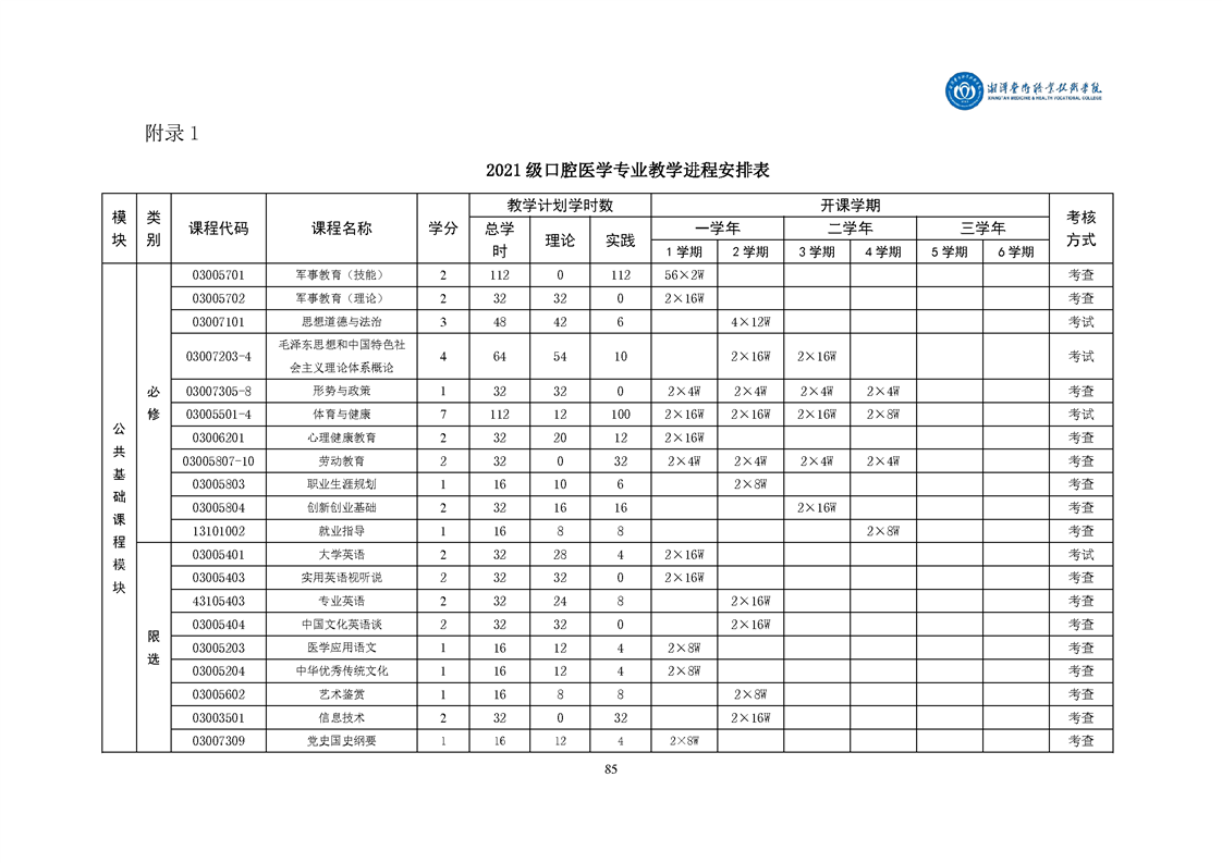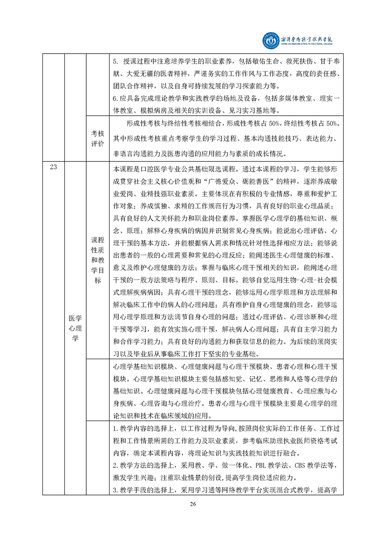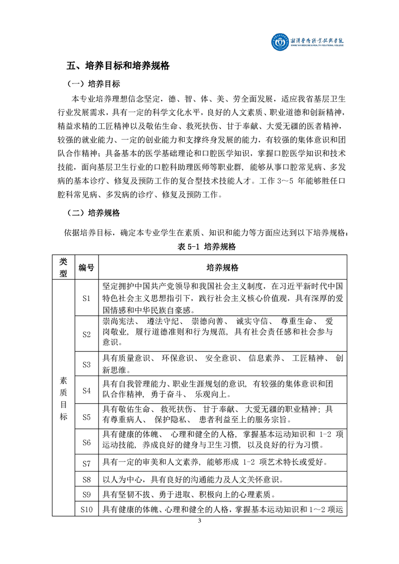 2021级口腔医学专业人才培养方案