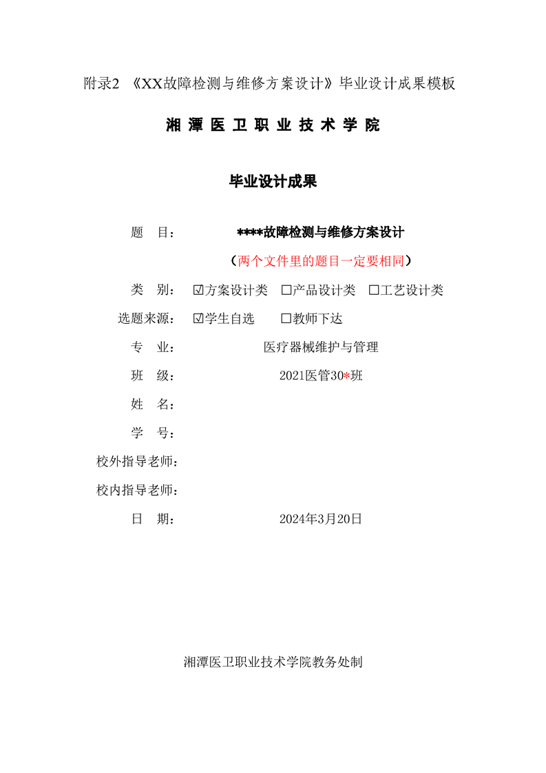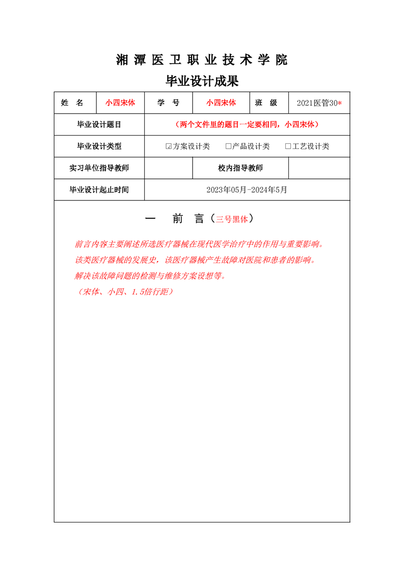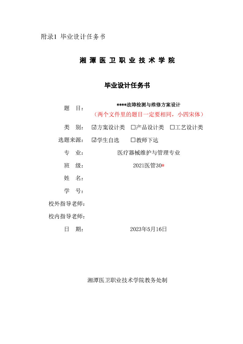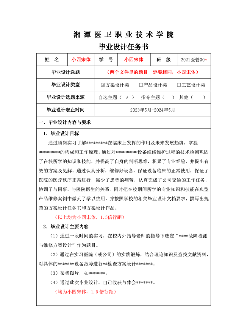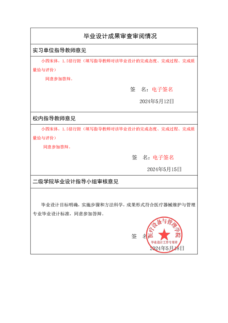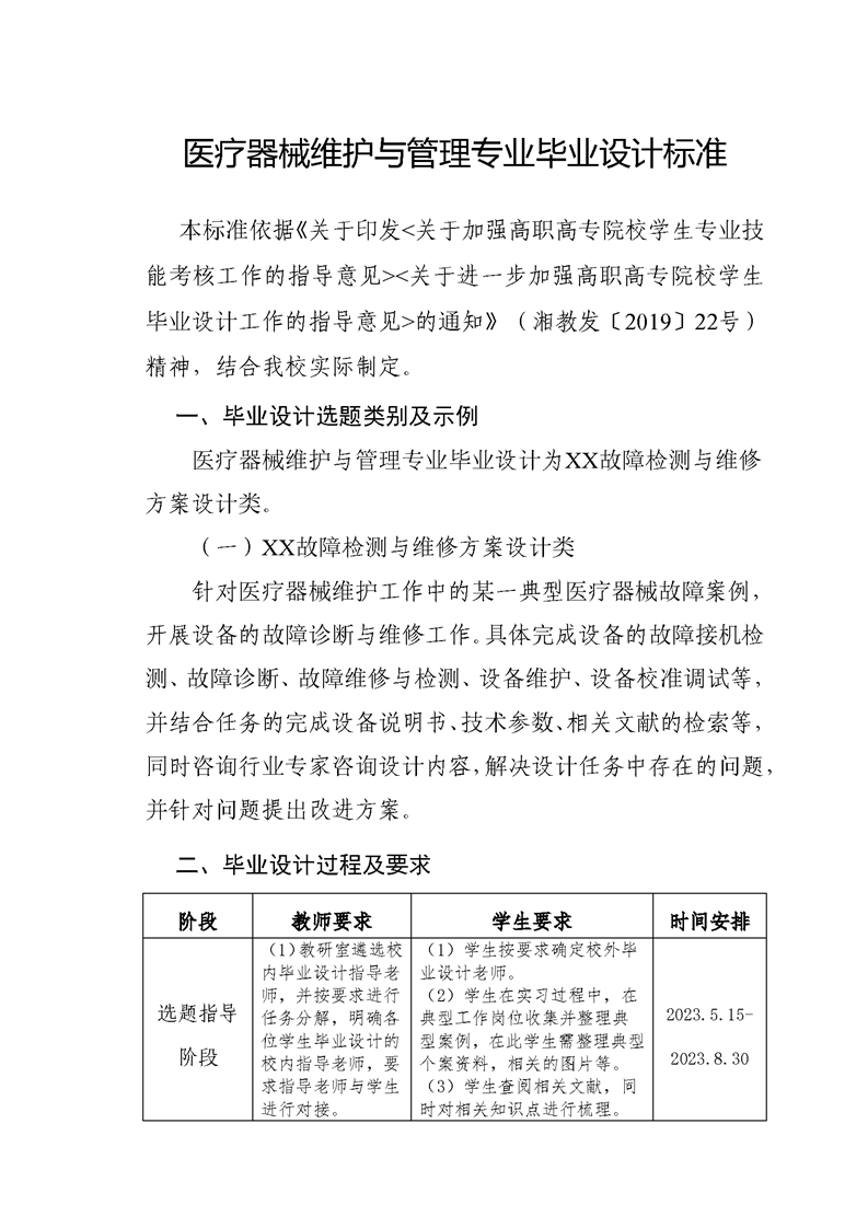 > 教务处 > (一)各专业毕业设计标准 > 4、医疗设备与管理学院