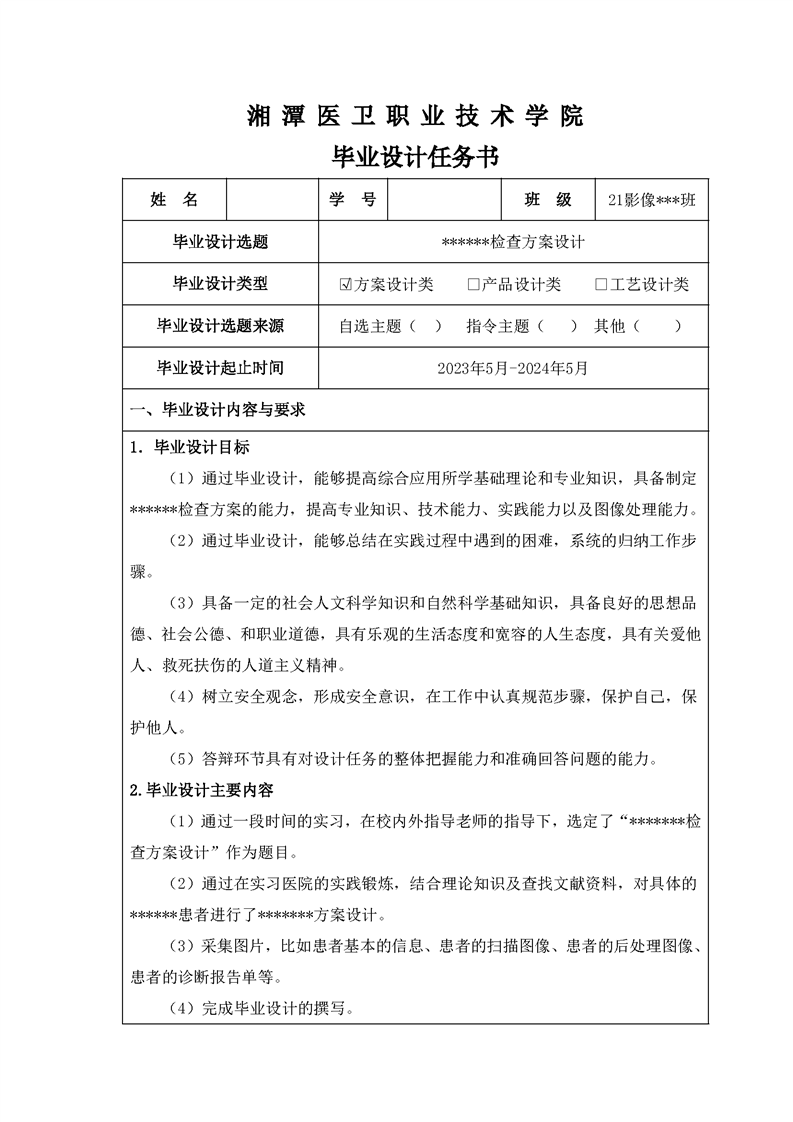 > 教务处 > (一)各专业毕业设计标准 > 4、医疗设备与管理学院