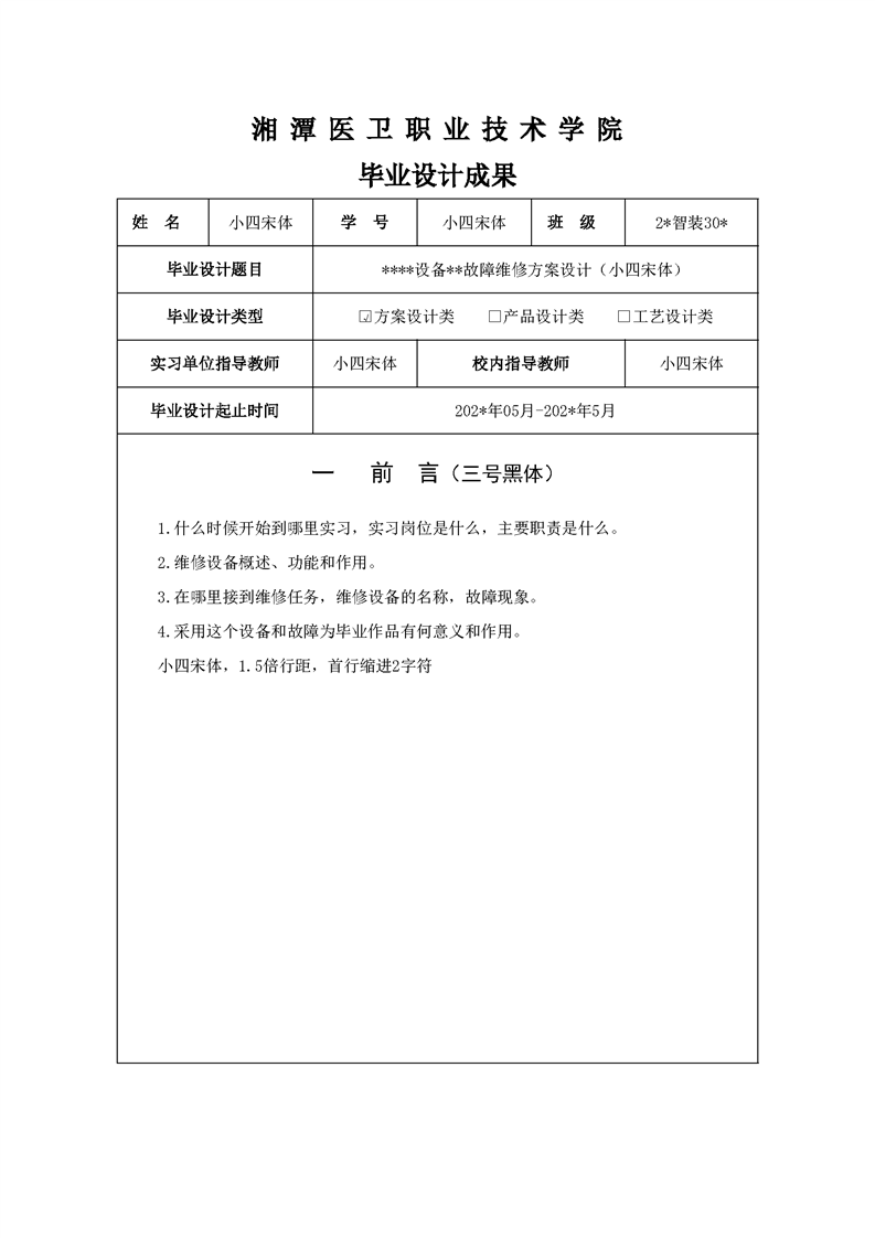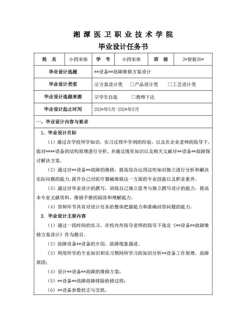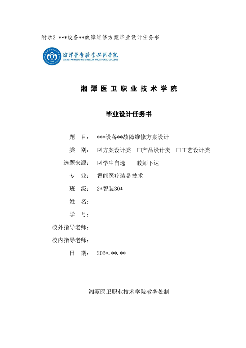 > 教务处 > (一)各专业毕业设计标准 > 4、医疗设备与管理学院