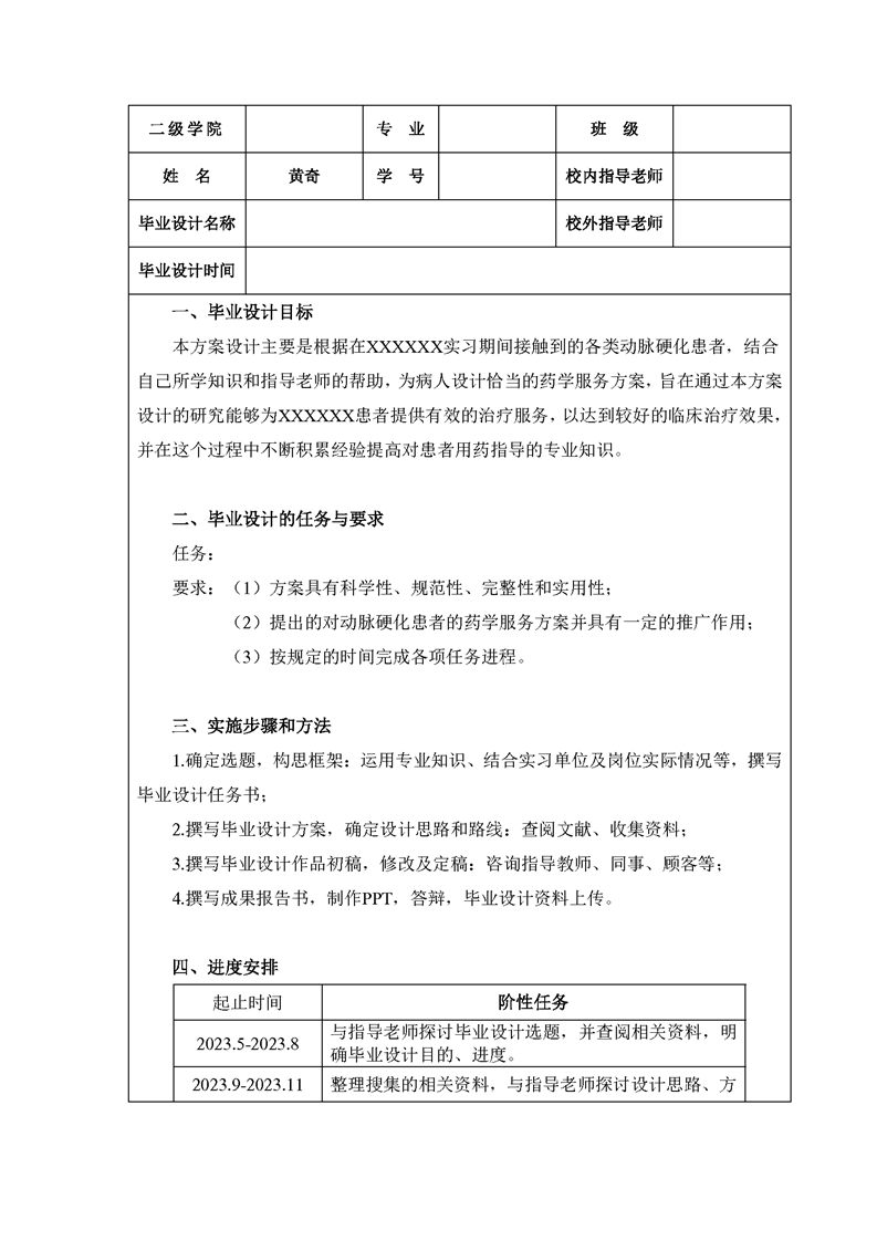 2021级药学专业毕业设计标准