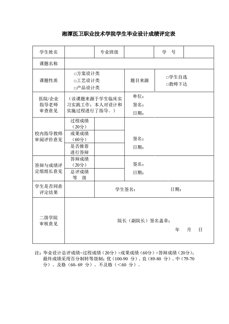 > 教务处 > (一)各专业毕业设计标准 > 3、医学技术学院