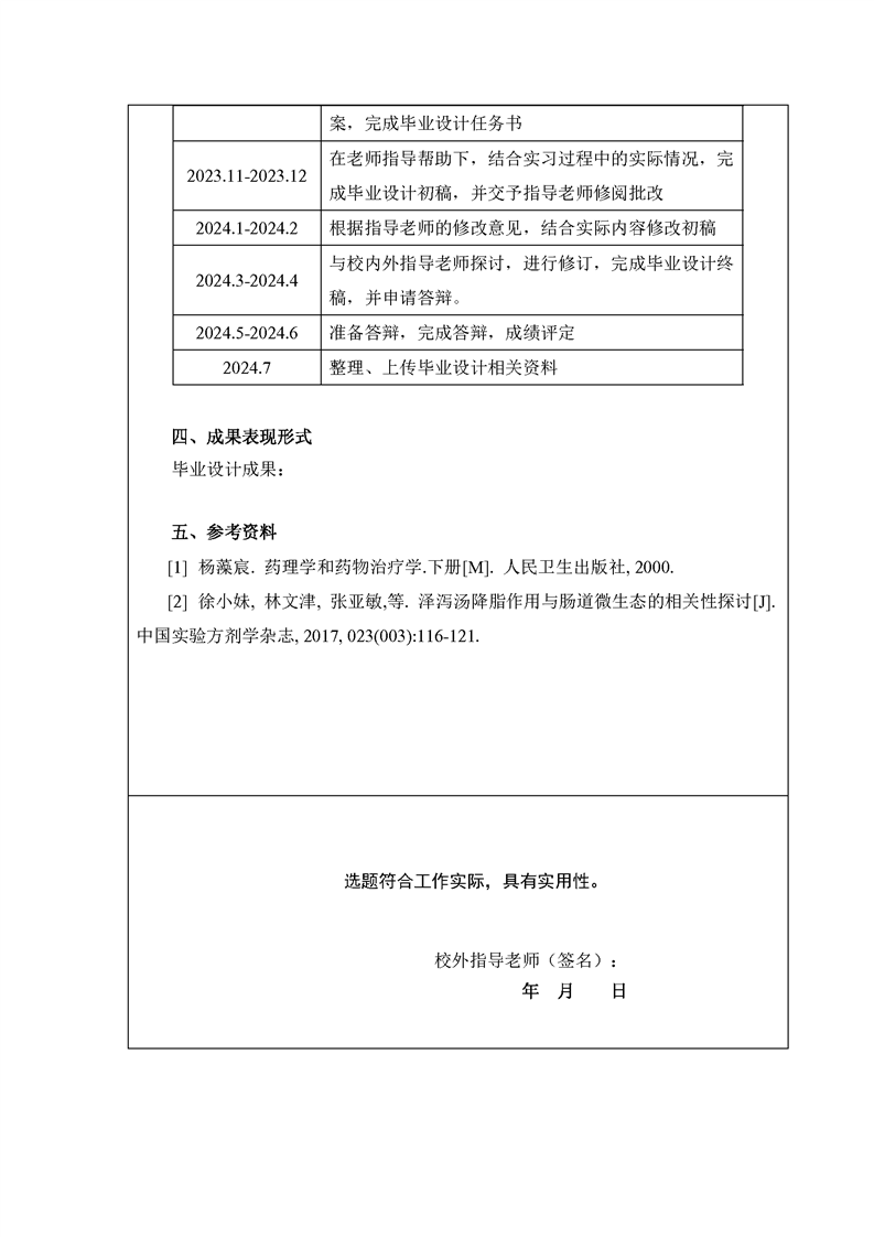 2021级中药学专业毕业设计标准